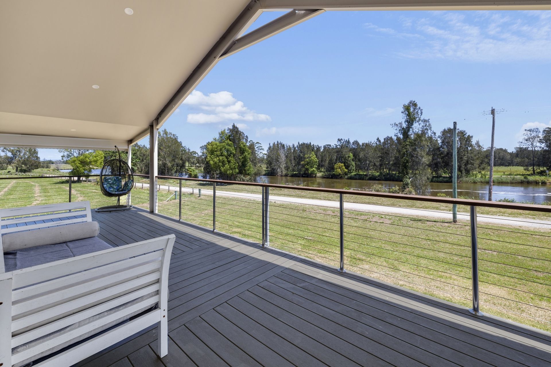 The 3-Bedroom elevated home offers uninterrupted views of Clybucca Creek and surrounding farmlands from the spacious verandah, accessed from the bedrooms and living area. The verandah surrounds the home on 3 sides and is large enough to host any private gathering.