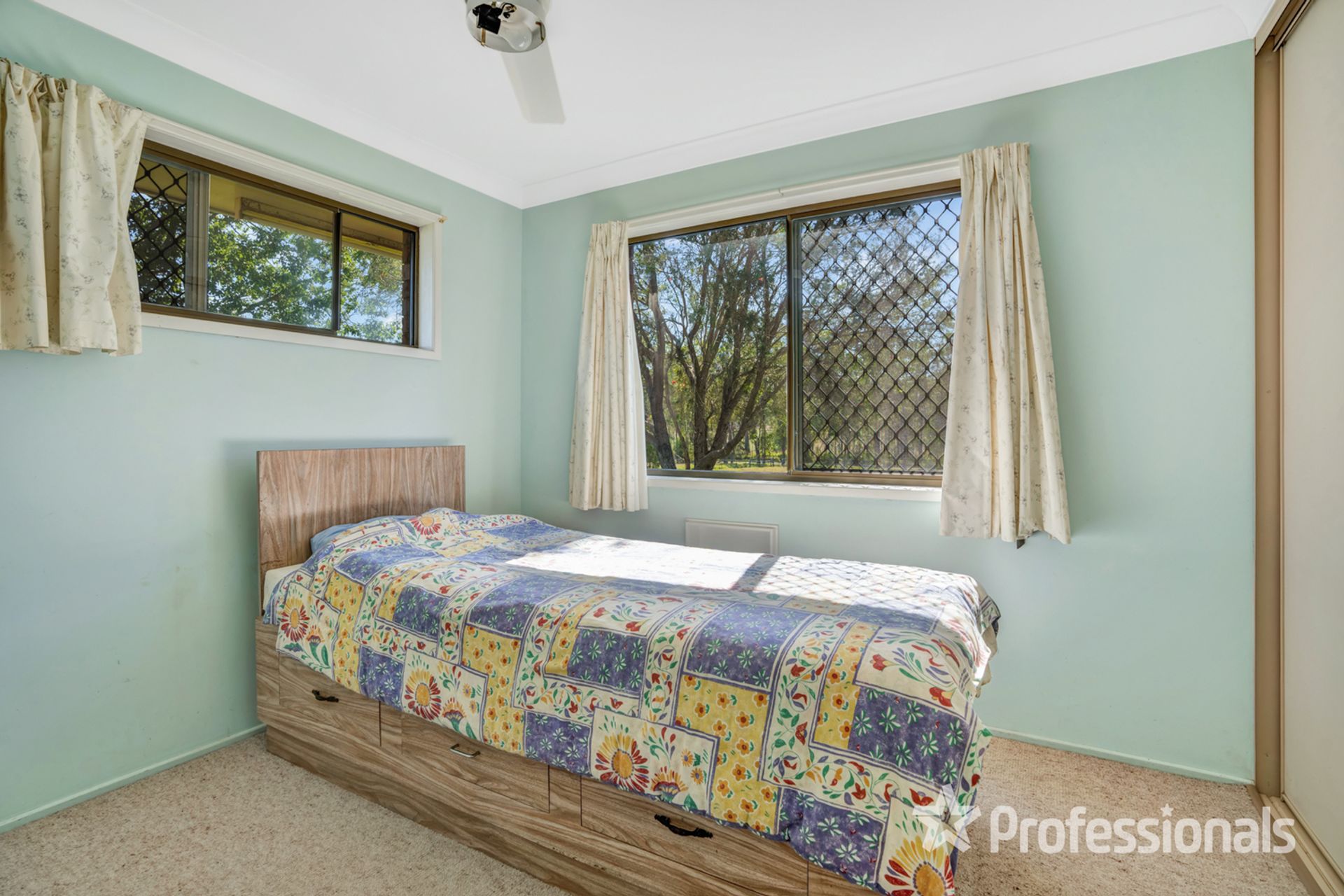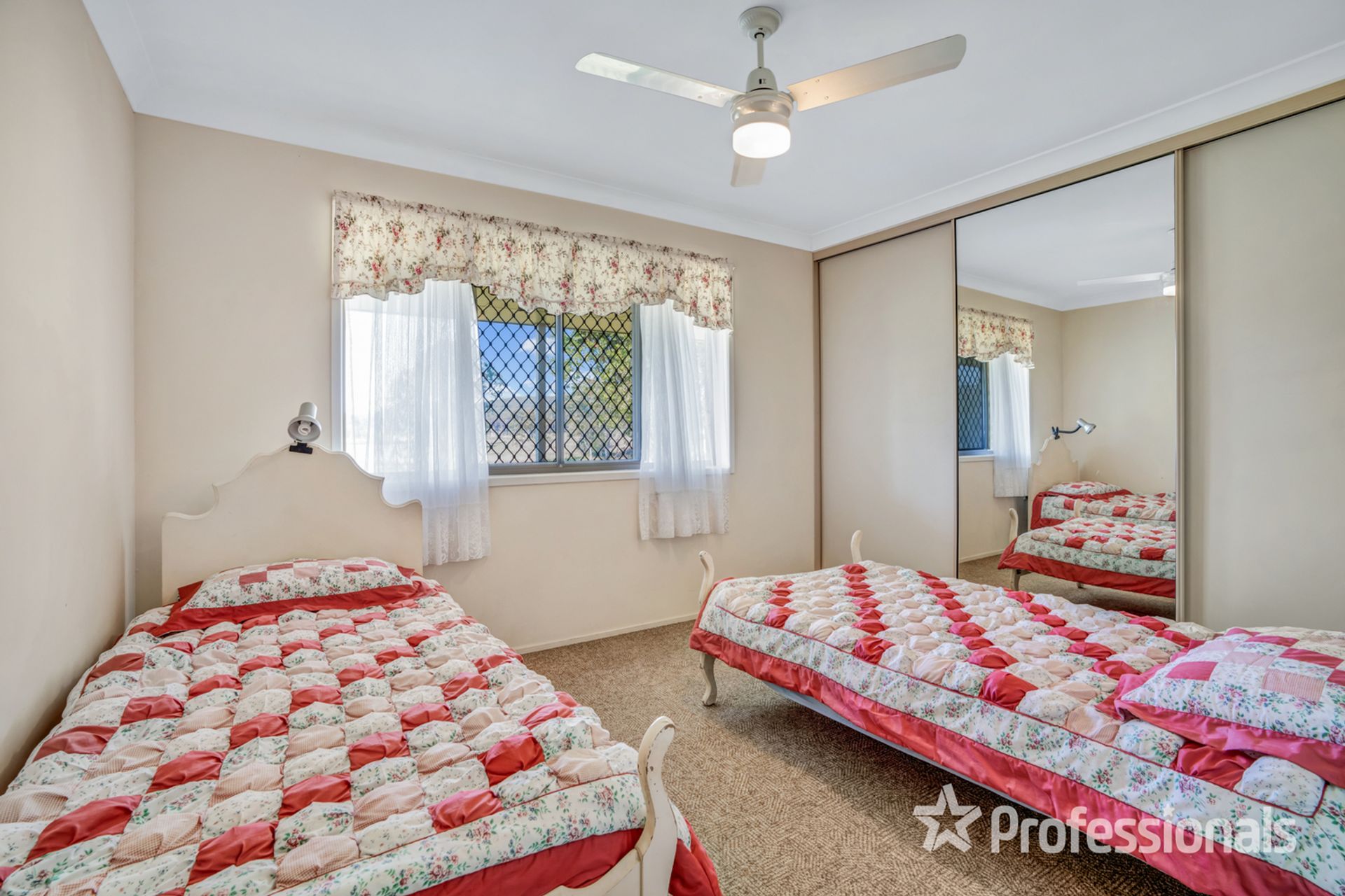 • 2nd bedroom with box air-conditioning, built-ins and ceiling fan, 3rd bedroom with built-ins and ceiling fan