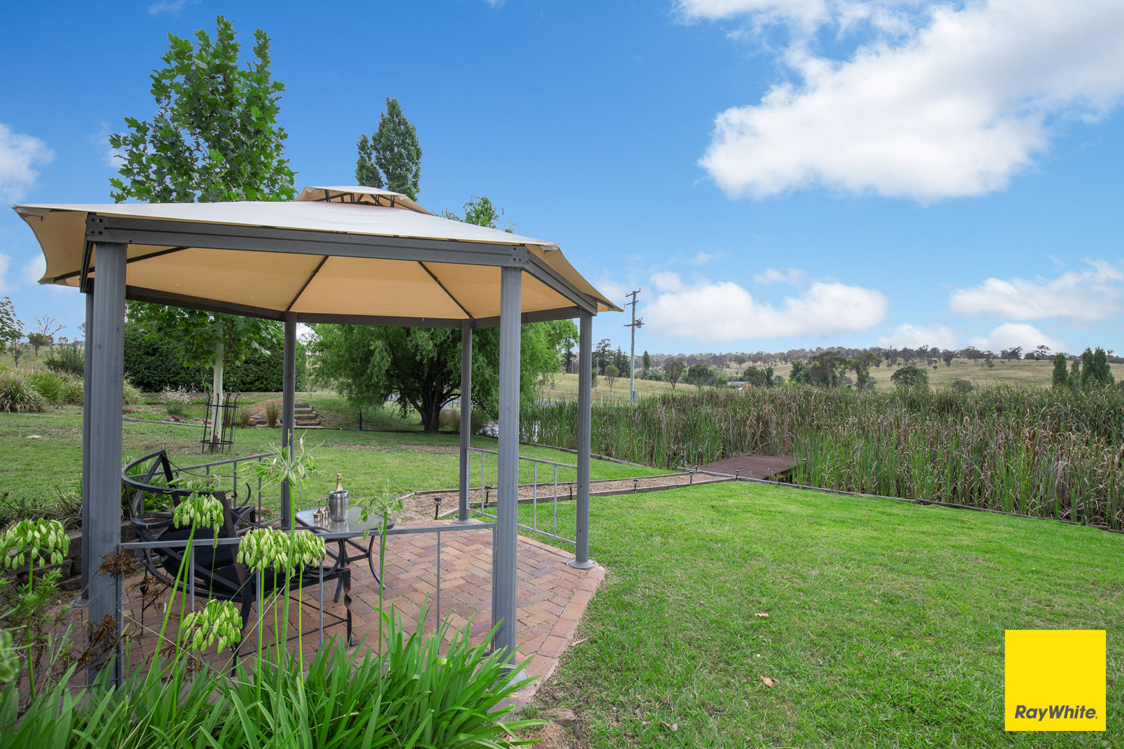 - Town water connection plus three rainwater tanks (10,000, 15,000, and 25,000 litres)