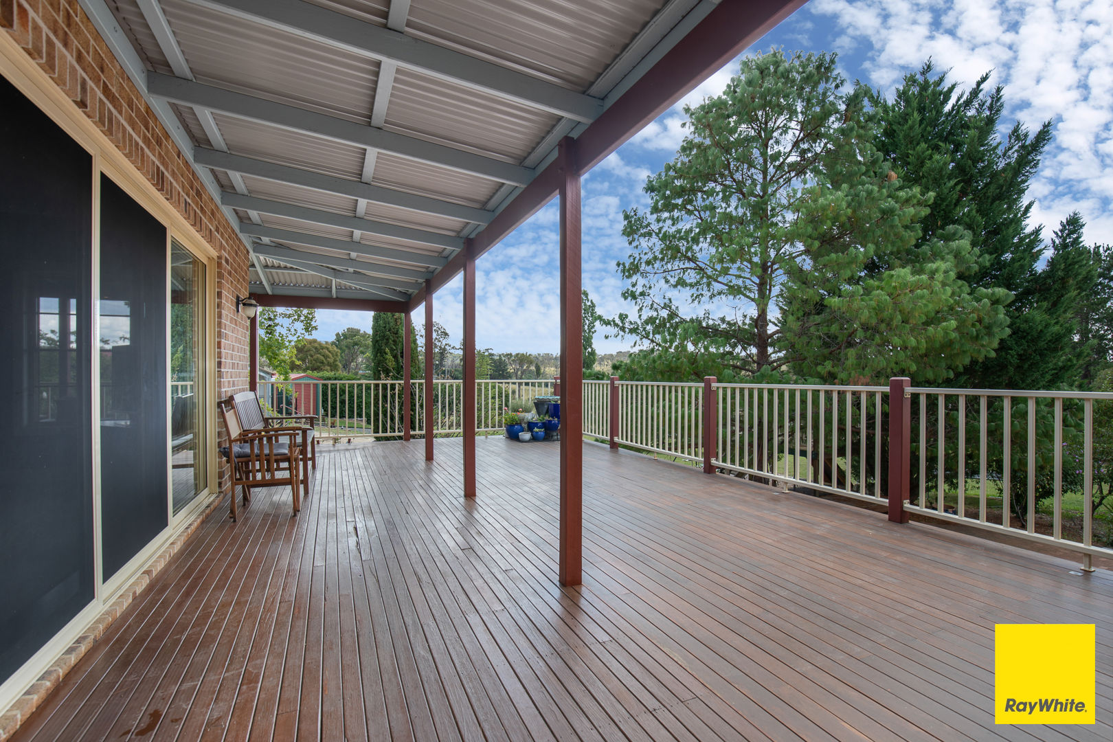 - Extensive wrap-around veranda extending to a large timber deck
