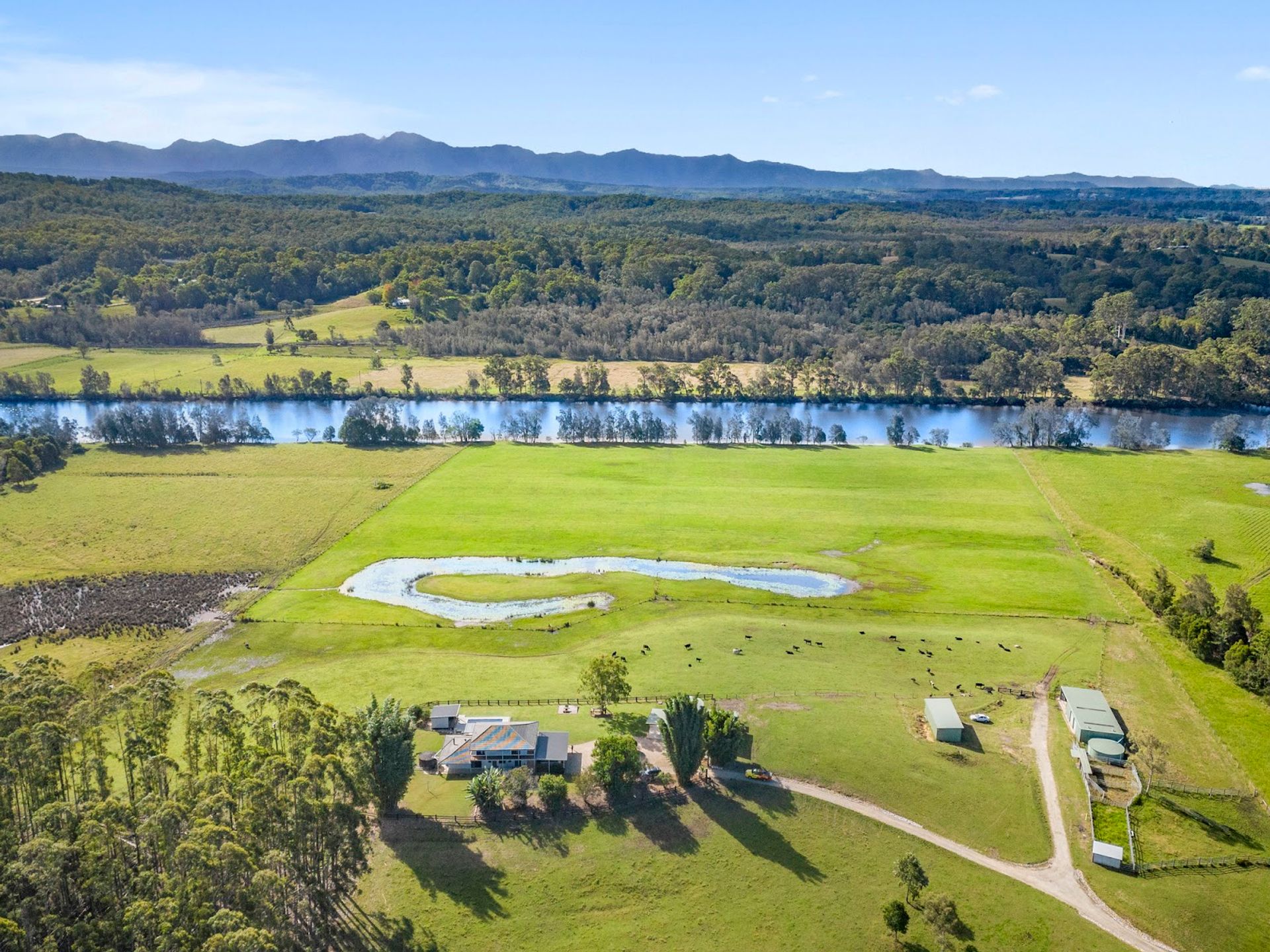 Discover this rare 39-hectare riverside estate with 300 meters of Kalang River frontage, offering stunning water and mountain views. Perfect for a riverside lifestyle, enjoy fishing, boating, and waterskiing from your private jetty and boat ramp.