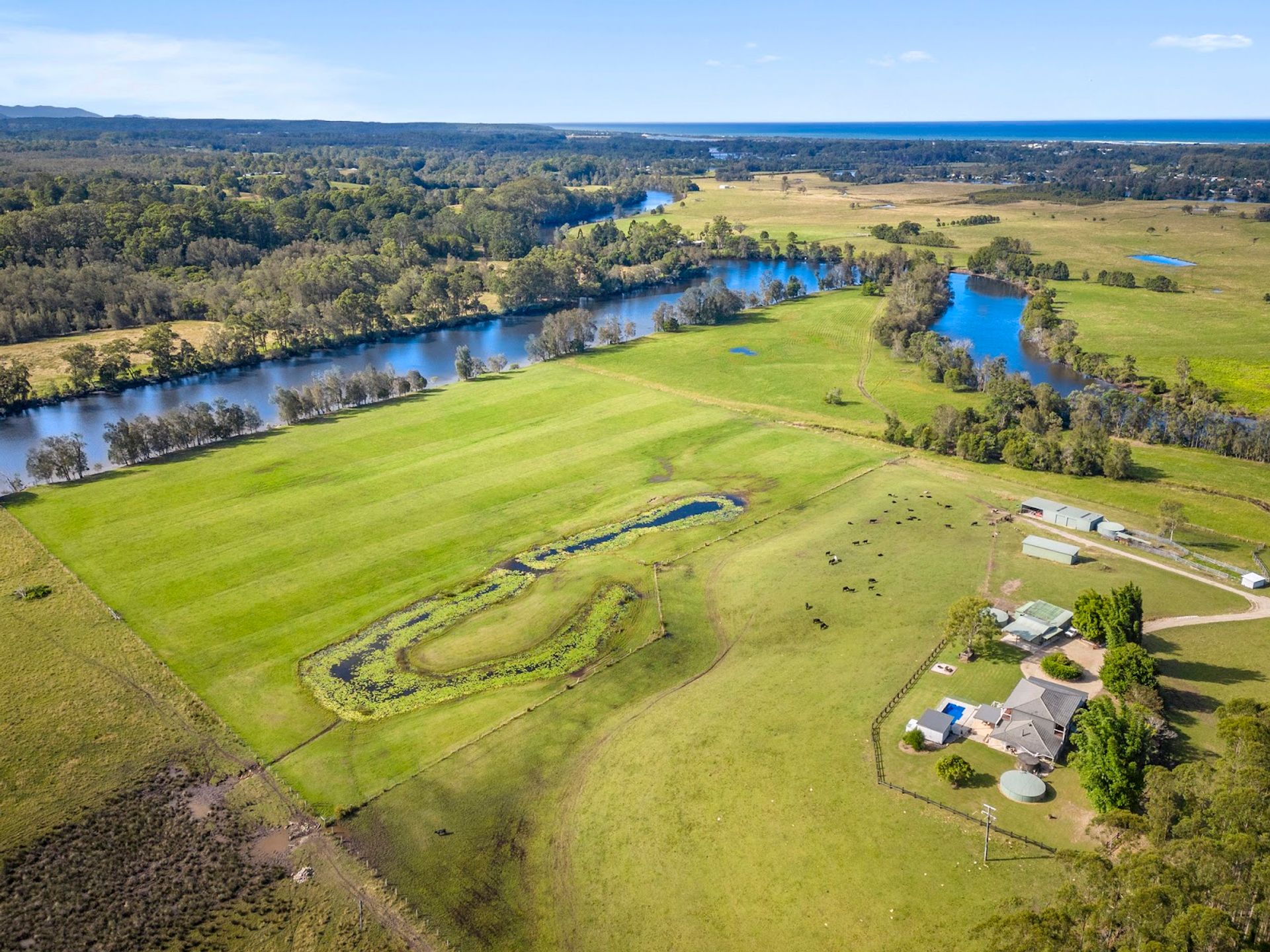 This property also includes a granny flat ($350 per week), extensive shedding, and Blackbutt plantation with logging permit. Located just 10 minutes from Urunga's beaches and 20 minutes from Bellingen and Coffs Harbour, this is the ultimate in waterfront living.