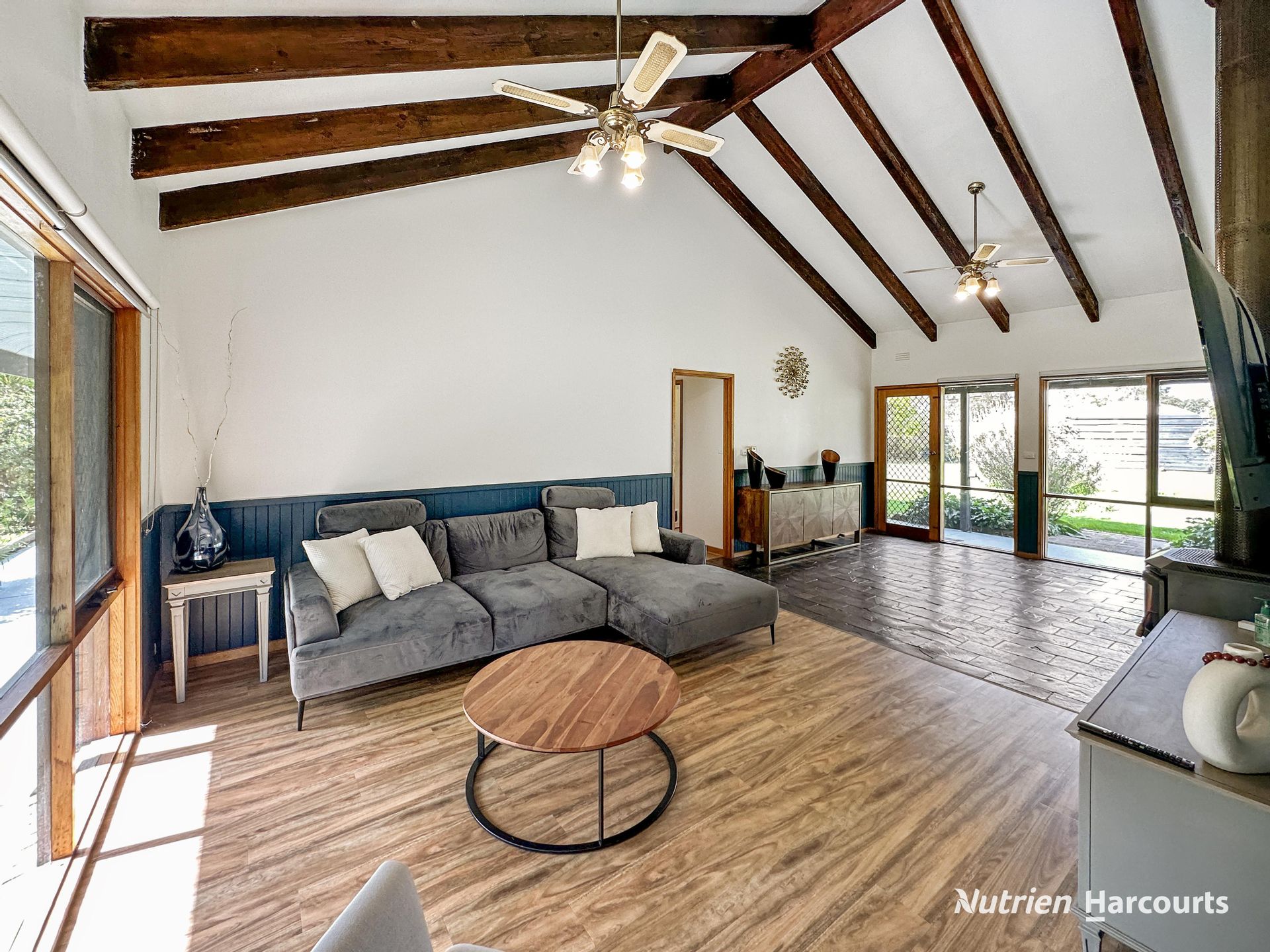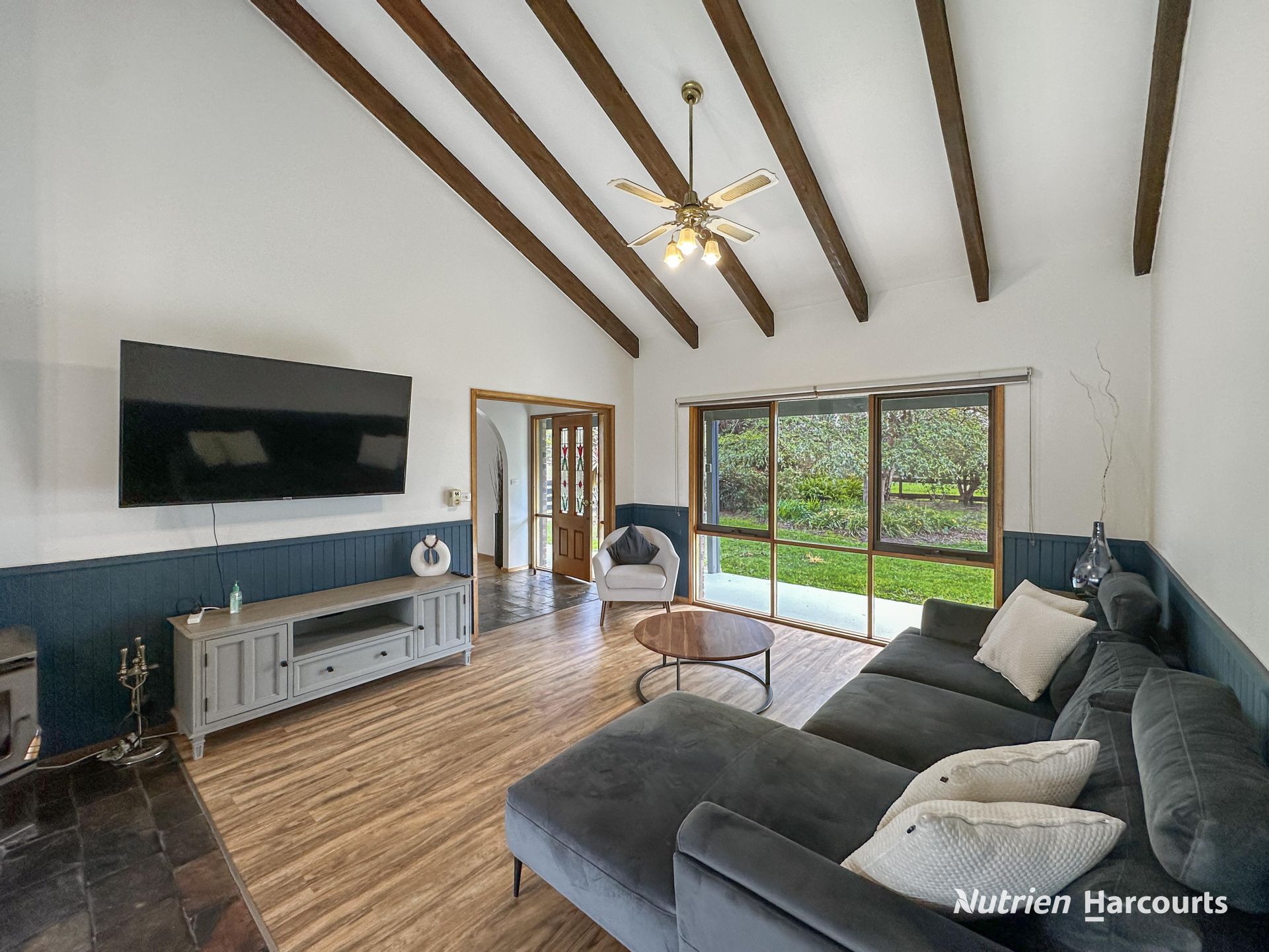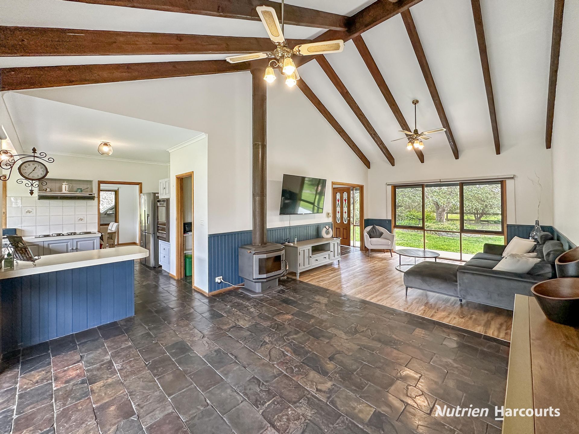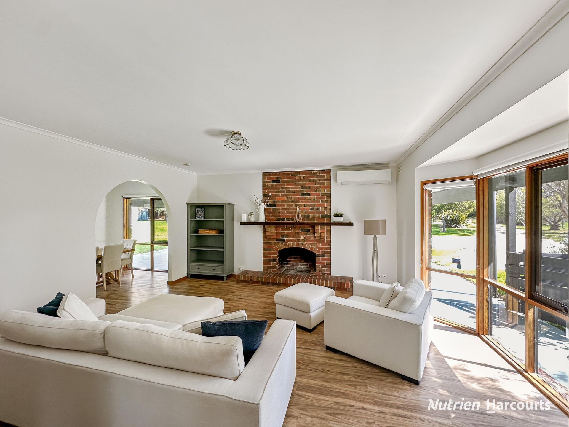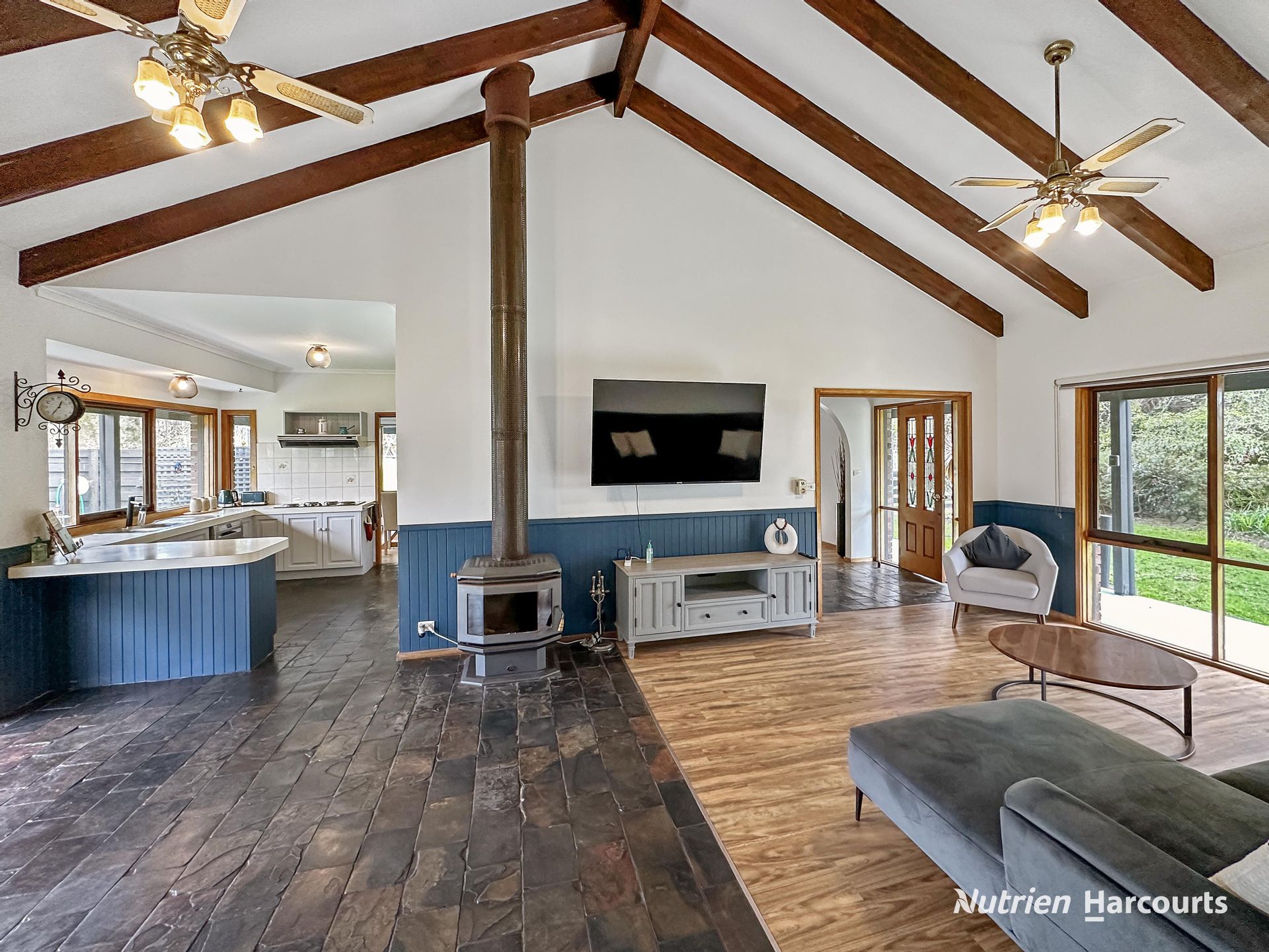 • Multiple Living Spaces: Two separate living areas, equipped with a wood heater, open fireplace, and split system air-conditioning.