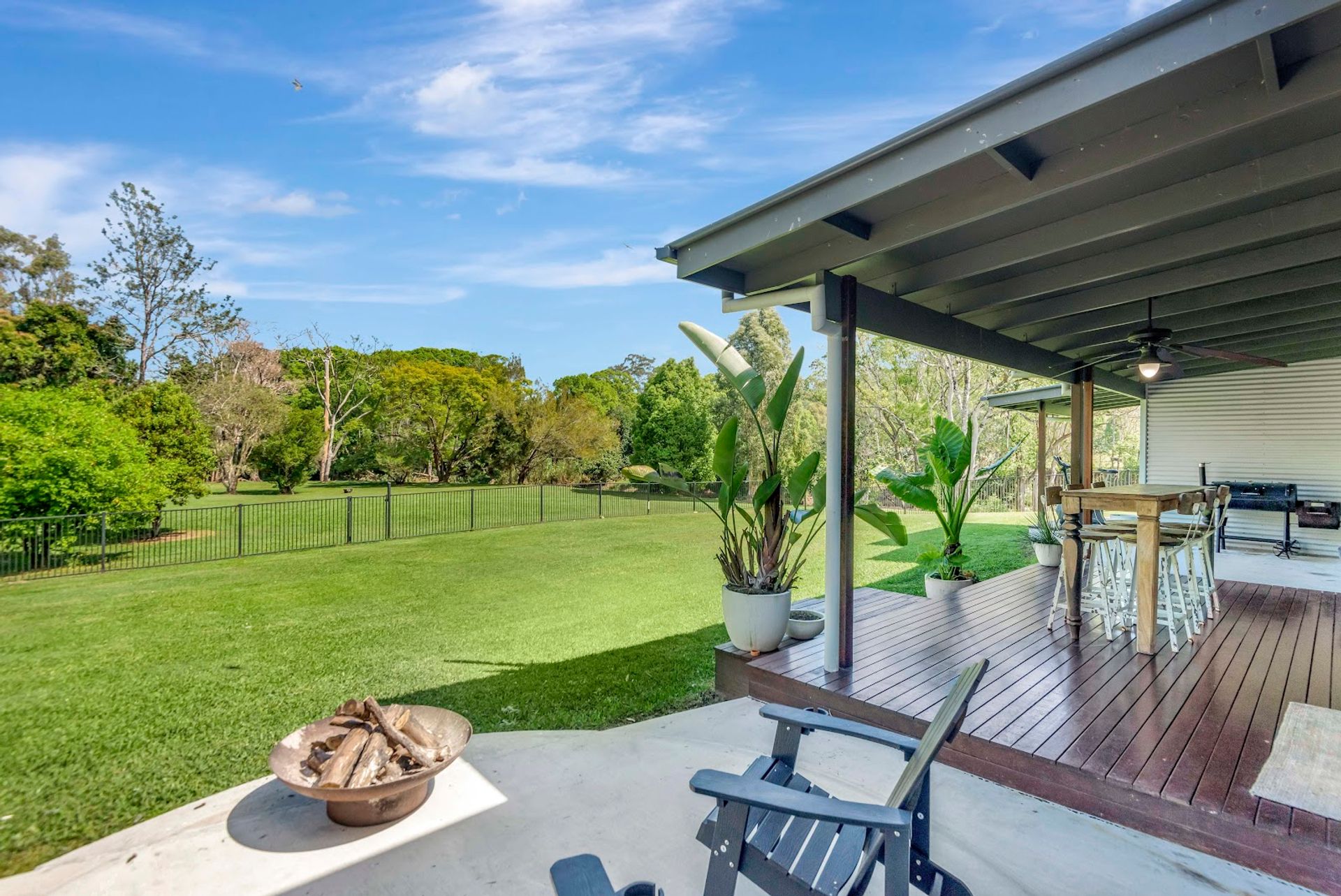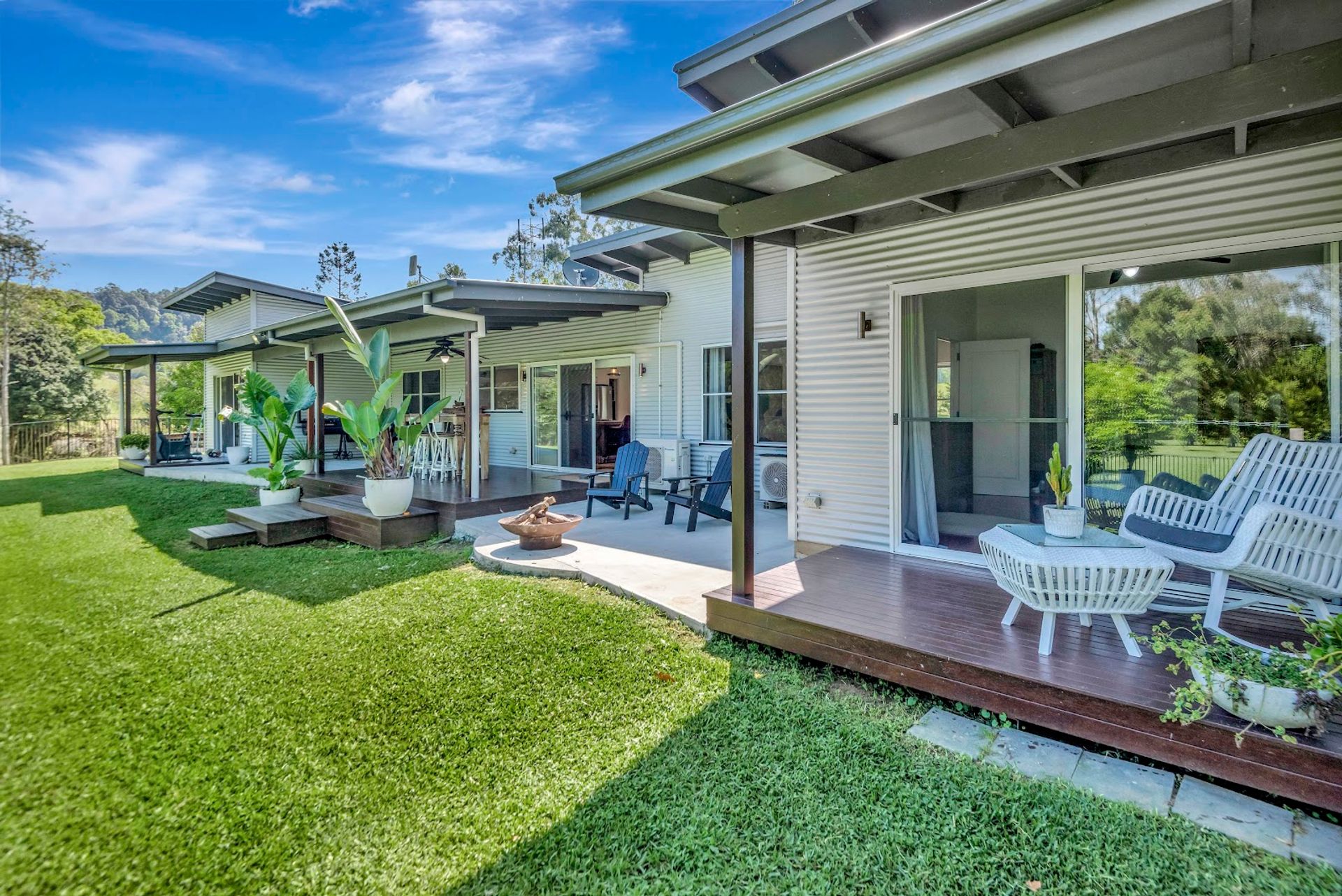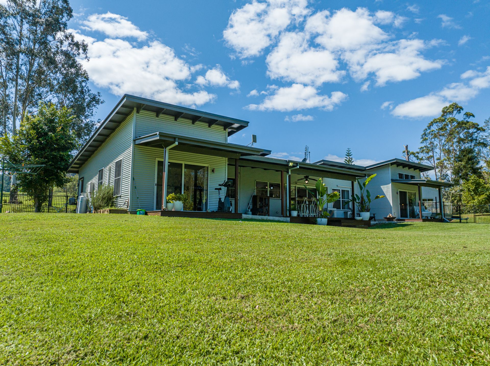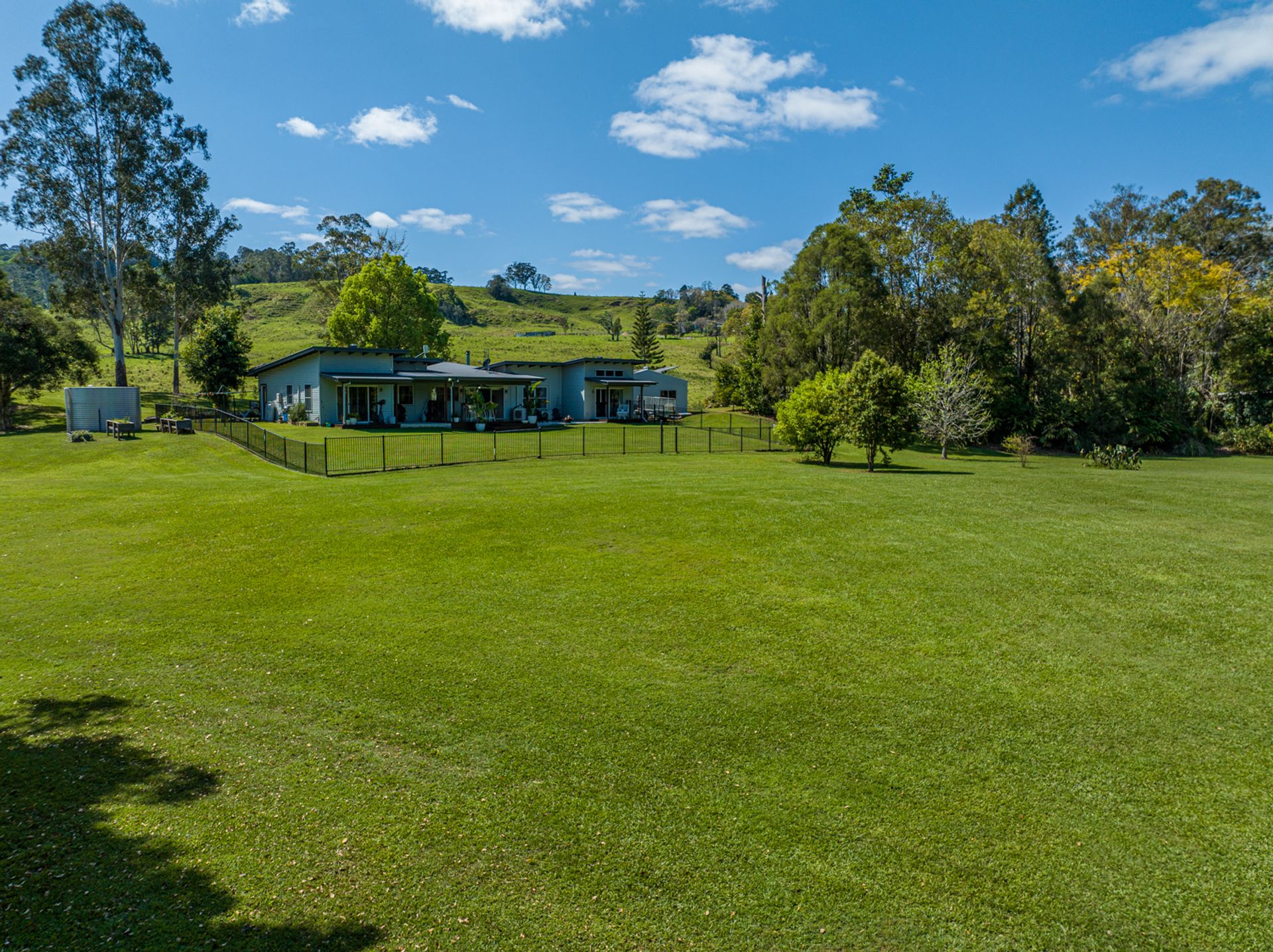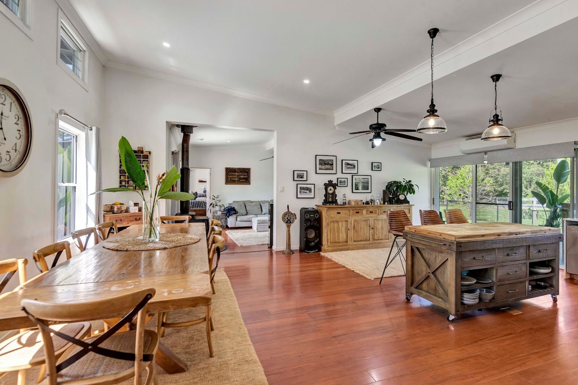 The house is a modern build with the owners installing a new stunning kitchen, butlers pantry & laundry. The kitchen has stone bench tops, deep sinks, and all brand new appliances. Gaze out over the resort style yard down to the creek from the kitchen. Enjoy the benefits of a 10kw solar system with a 14kw battery to assist powering the new air conditioning units or enjoy the warmth from the classic old wood heater. High ceilings create the atmosphere from the kitchen/dining area through to the lounge room.