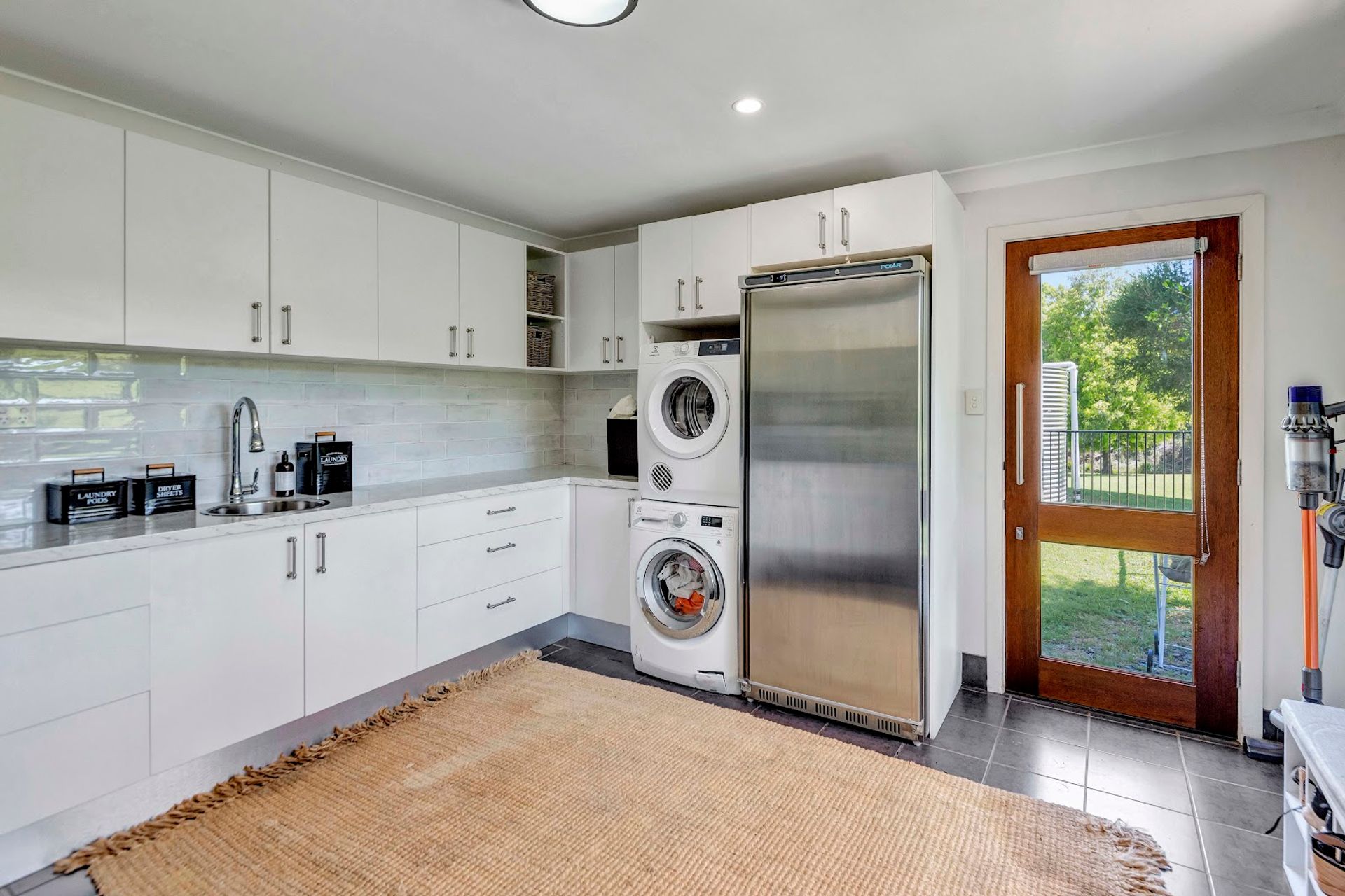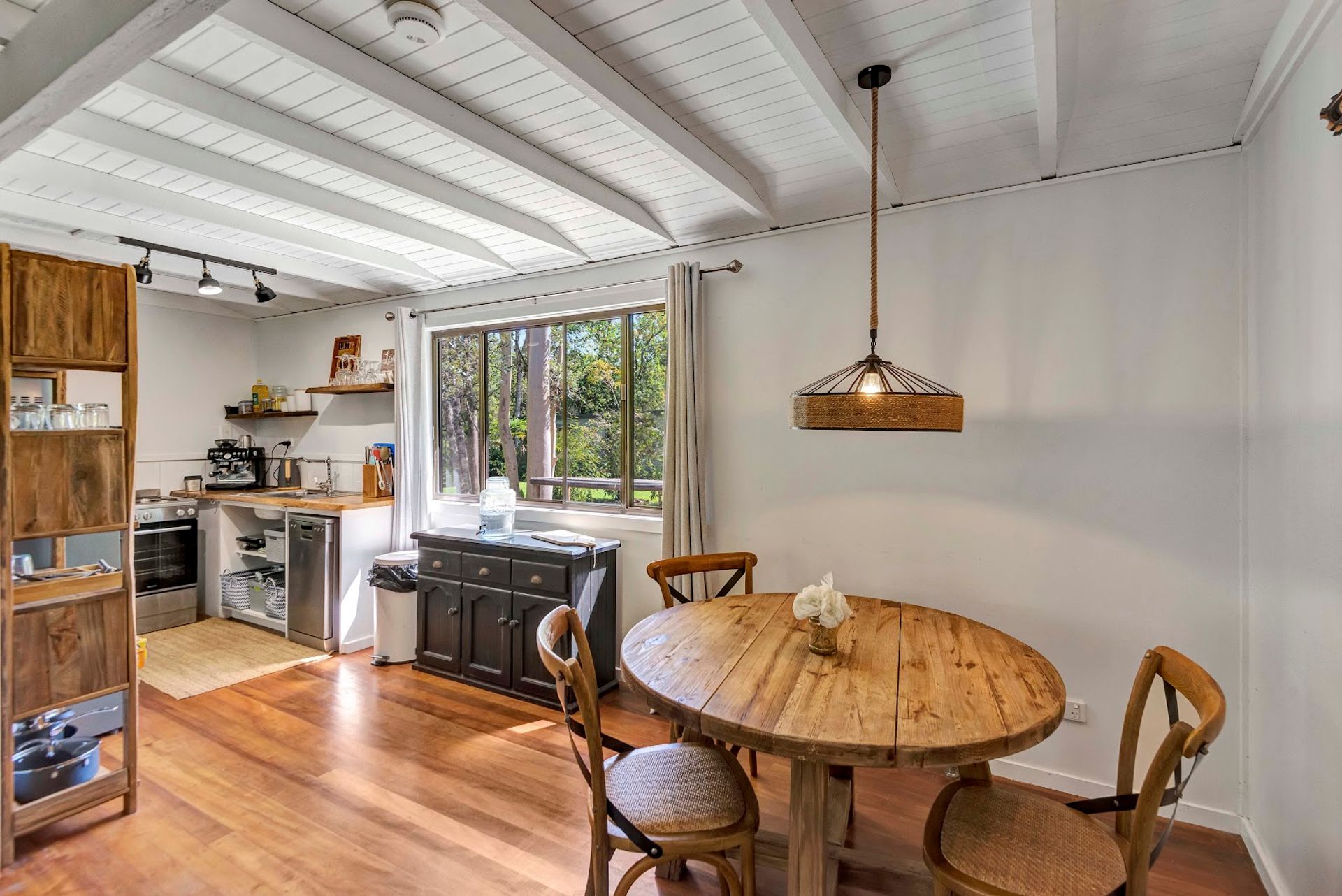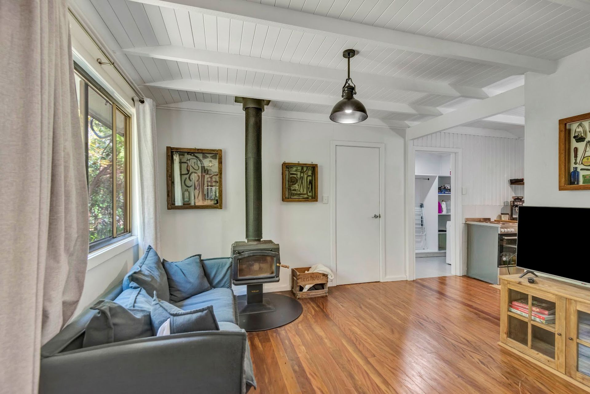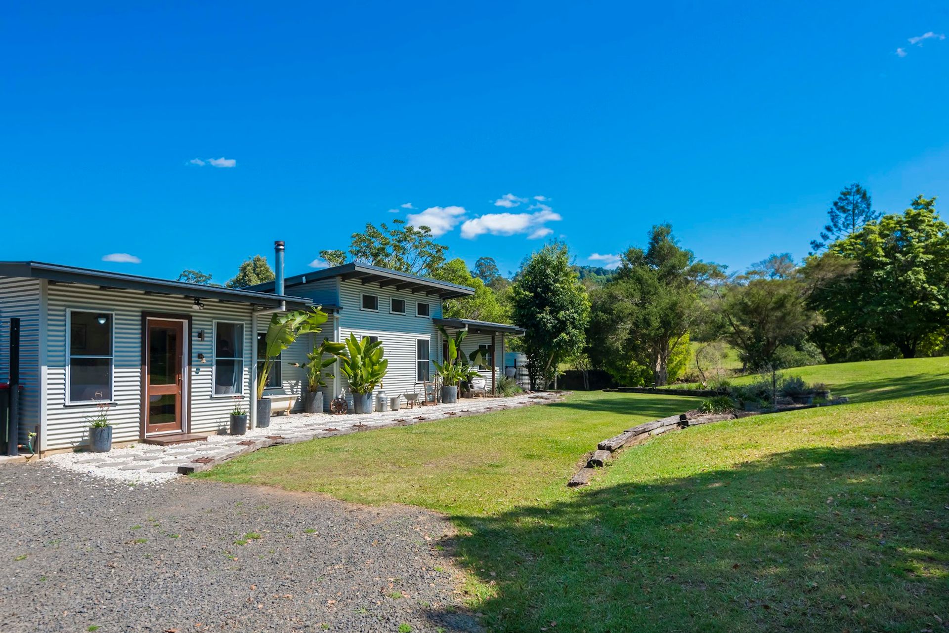 The house is a modern build with the owners installing a new stunning kitchen, butlers pantry & laundry. The kitchen has stone bench tops, deep sinks, and all brand new appliances. Gaze out over the resort style yard down to the creek from the kitchen. Enjoy the benefits of a 10kw solar system with a 14kw battery to assist powering the new air conditioning units or enjoy the warmth from the classic old wood heater. High ceilings create the atmosphere from the kitchen/dining area through to the lounge room.