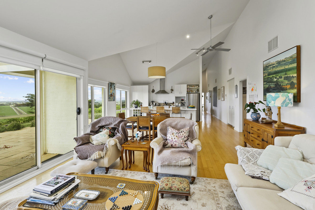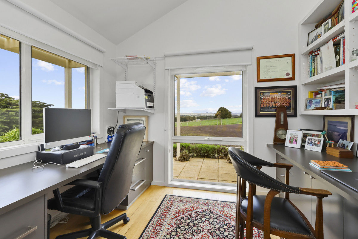 The beautifully appointed kitchen compliments the home, centrally positioned and comprising a 900mm electric oven, gas cooktop, stainless steel range hood and Asko dishwasher. An oversized island bench ensures ample culinary space whilst enjoying the fabulous views through the floor to ceiling windows. Further features include office, Victorian Ash timber flooring, open fire, ducted split system throughout the house and ducted vacuum with strategically placed outlet points. Domestic water via 75,000 litres tank supplies.