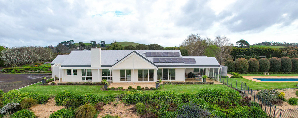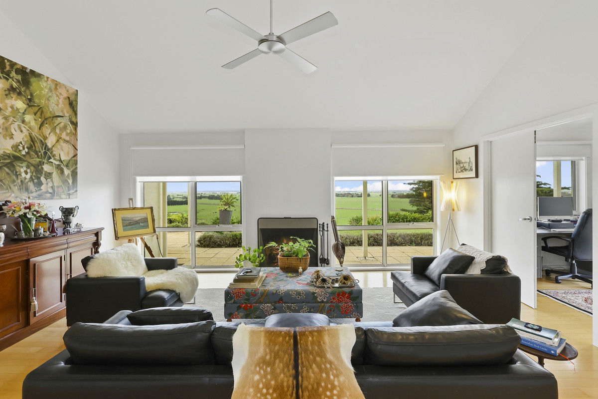 "Kanangra" is pleasantly introduced by its established tree-lined driveway opening to the superbly sited Architecturally designed Residence set within mature lawns and gardens, creating an atmosphere of tranquillity. The thoughtfully planned Residence comprises both formal and informal zones, taking in the peerless panorama through double-glazed windows toward Mt.Elephant and Lake Corangamite, with four generously proportioned bedrooms (main ensuite and walk-in robe) and the soaring roofline merging at a single point delivering an atmosphere of space and warmth which is an absolute feature of the home.