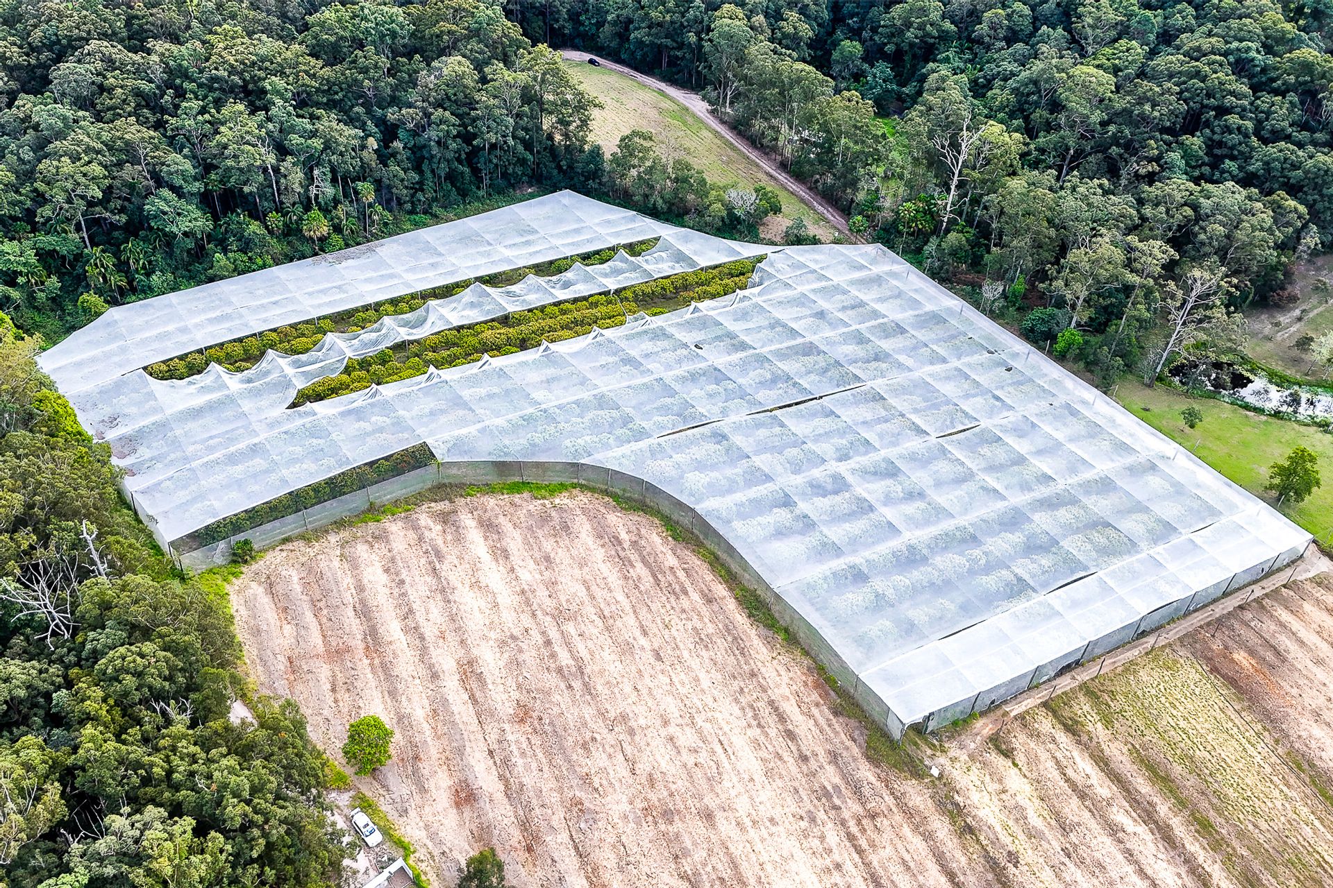 Previously a citrus and lychee farm, the citrus trees have been removed, but the lychee trees remain in two high-clearance exclusion netting structures and are still producing income. This property is well-suited to various agricultural enterprises, supported by a large dam that provides ample water for the lychees and potential crops such as ginger, macadamias, nursery production, or other small-scale crops. It could also be an excellent grazing property with the introduction of improved pastures.