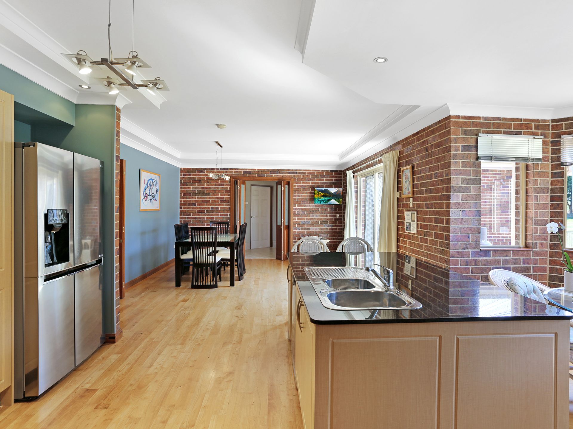 The island kitchen is built for entertaining (or just feeding a small army), with ample bench space and storage. Comfort is covered all year round with 4 reverse cycle air conditioners, 2 wood fireplaces, and a gas heater - so you'll be cosy whether it's summer, winter, or one of Goulburn's famous four seasons in a day.