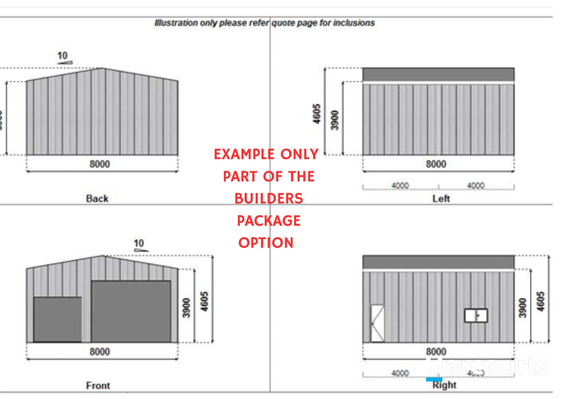 * Shed - 8m x 8m - 4.6 high clearance shed - 1 high clearance & 1 standard door (shed plan example in photos)
