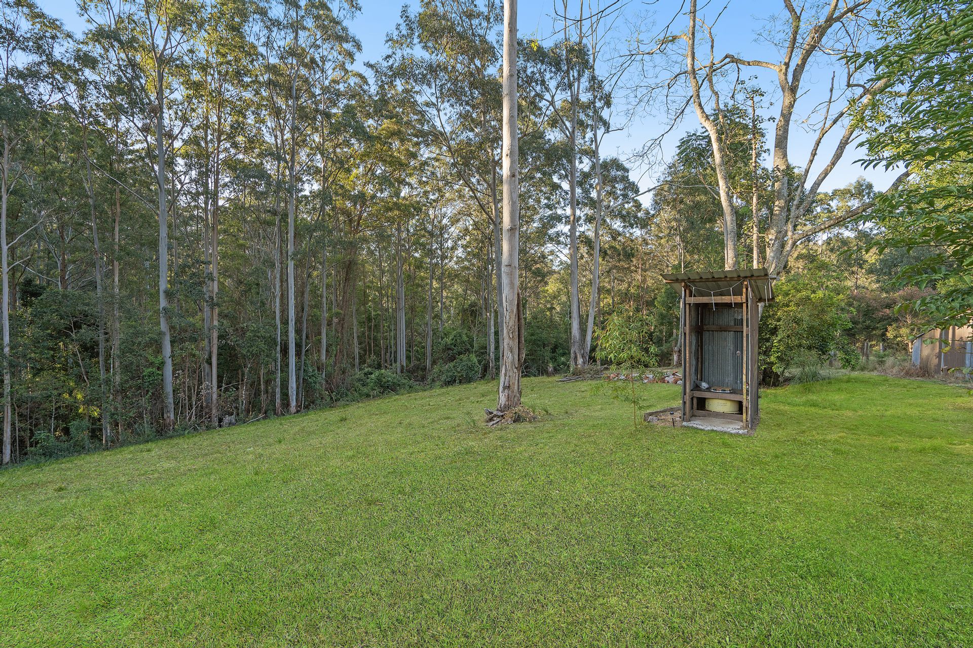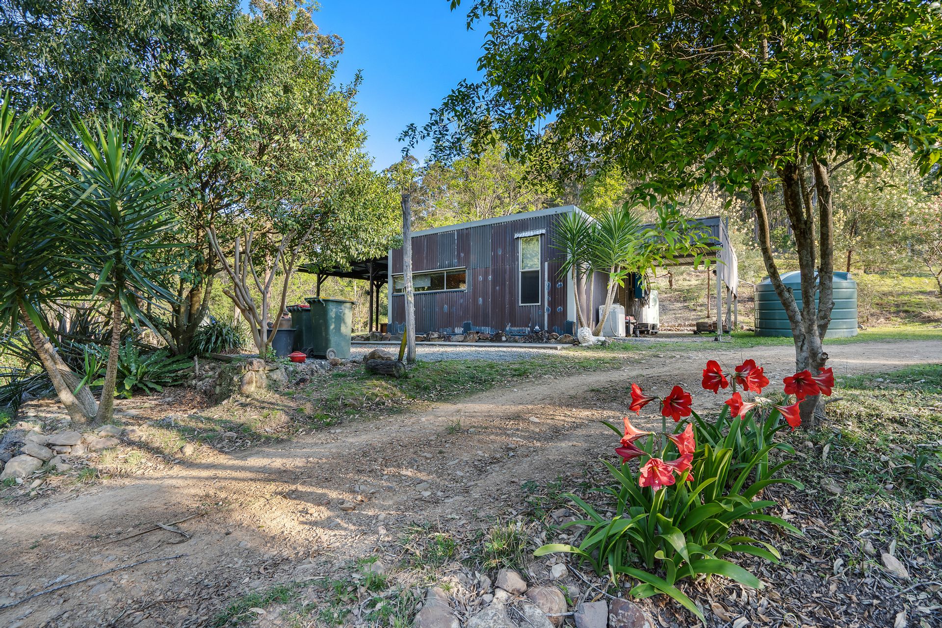 Sustainable Living: A compost toilet and established vegetable and garden beds support a self-sufficient lifestyle. The property also includes a chook shed with fencing, perfect for raising chickens.