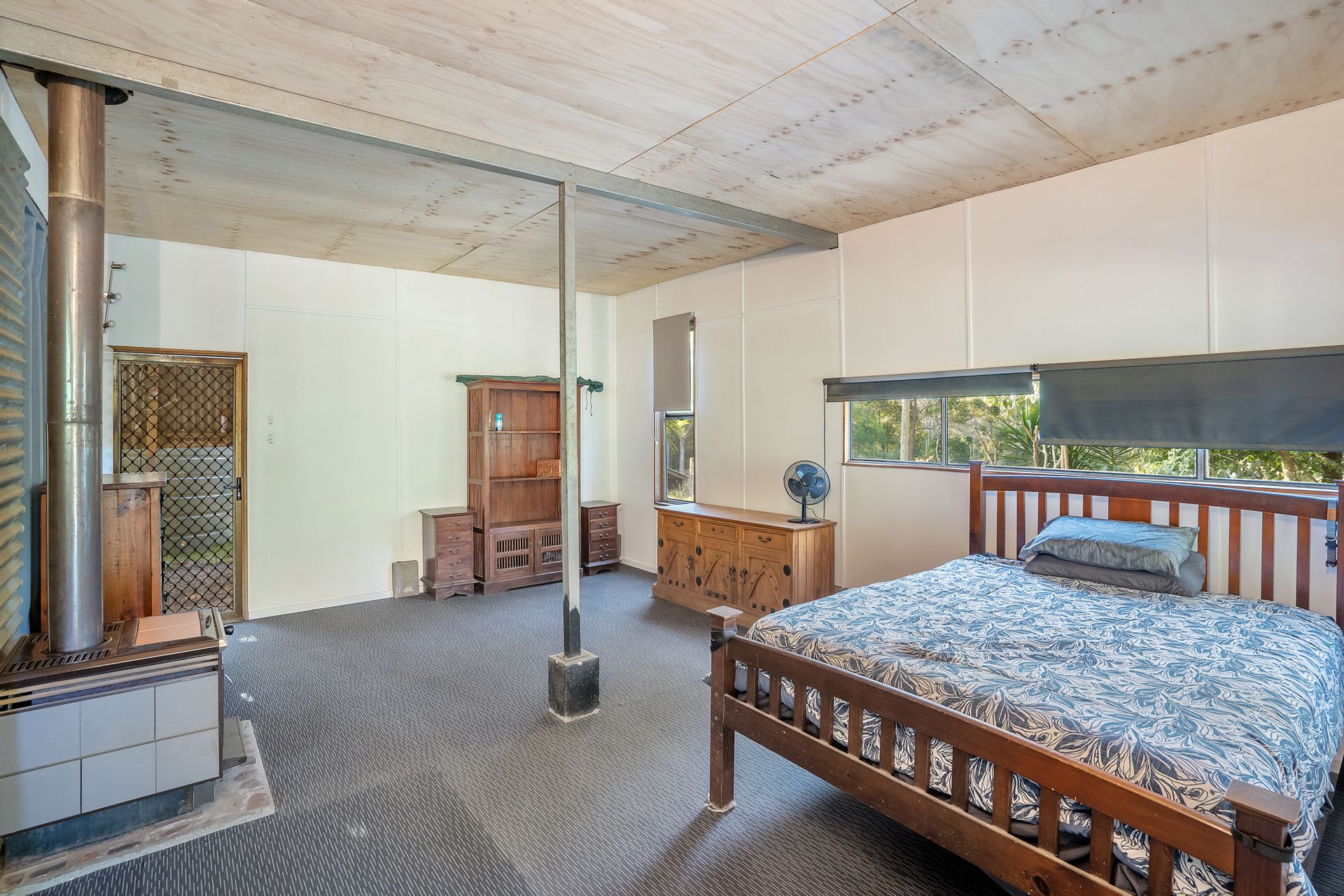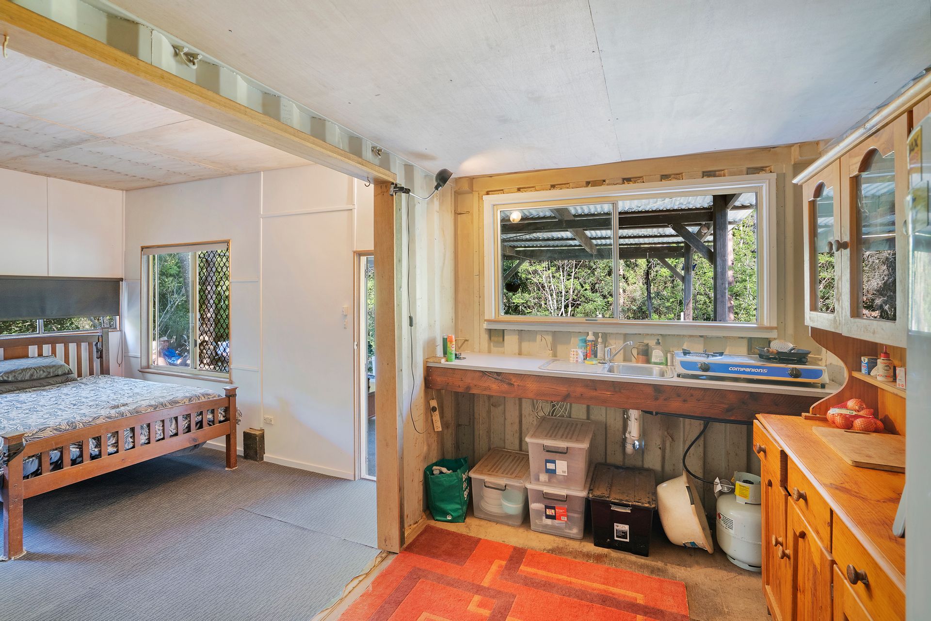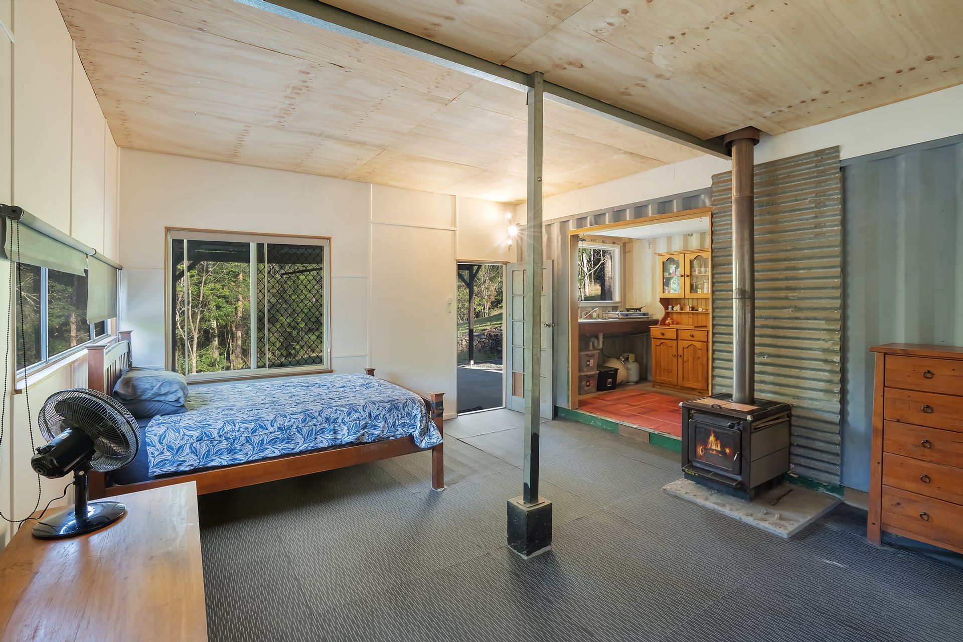 Charming Shed: A cozy one-bedroom shed equipped with solar power and a 1000 amp lithium battery ensures comfort and sustainability. Enjoy the warmth of the slow combustion fireplace, perfect for cozy evenings.