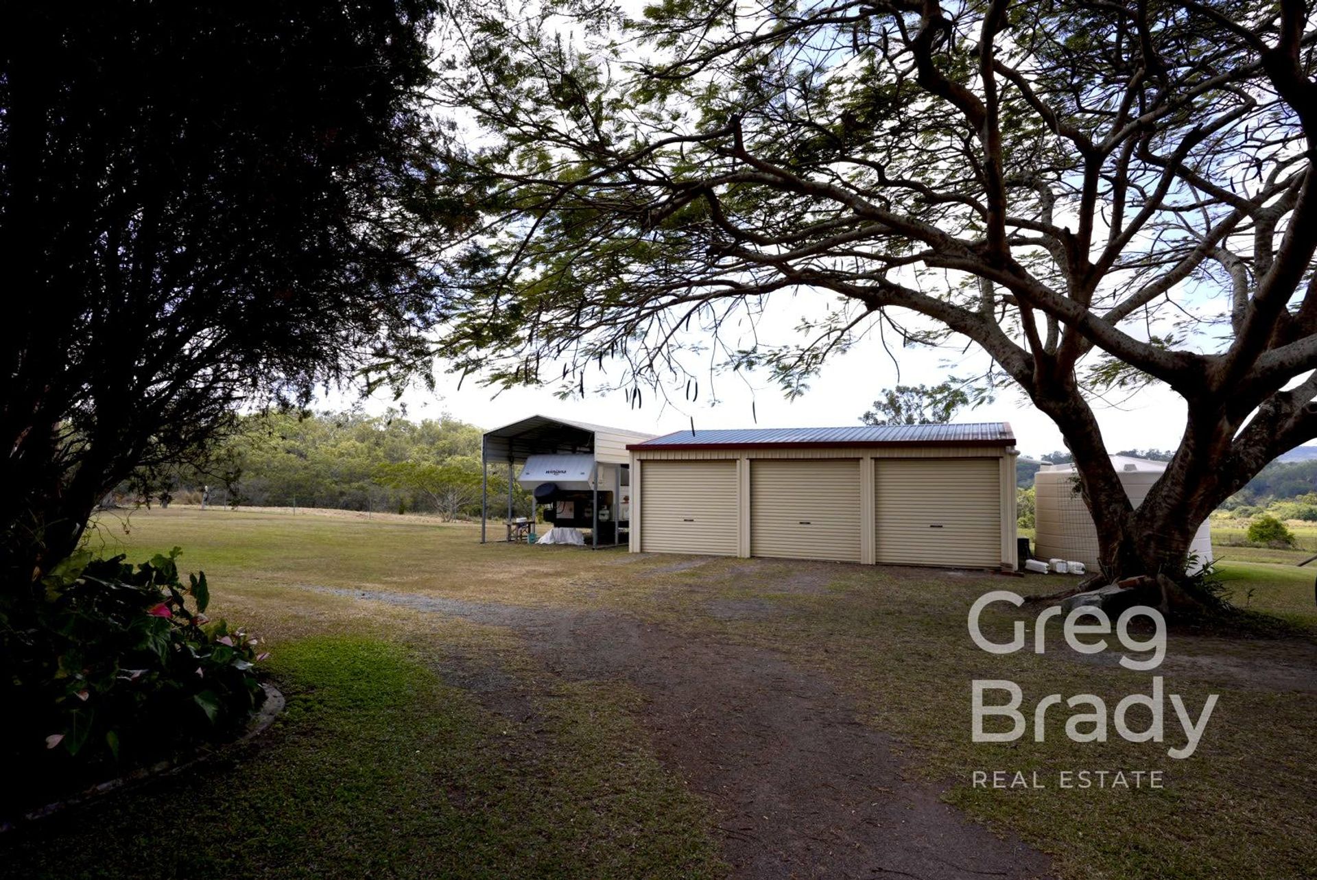 Outside you have another large, covered BBQ area, or a good place for the kids to play out of the sun, 3 bay powered shed and a caravan / boat shelter.