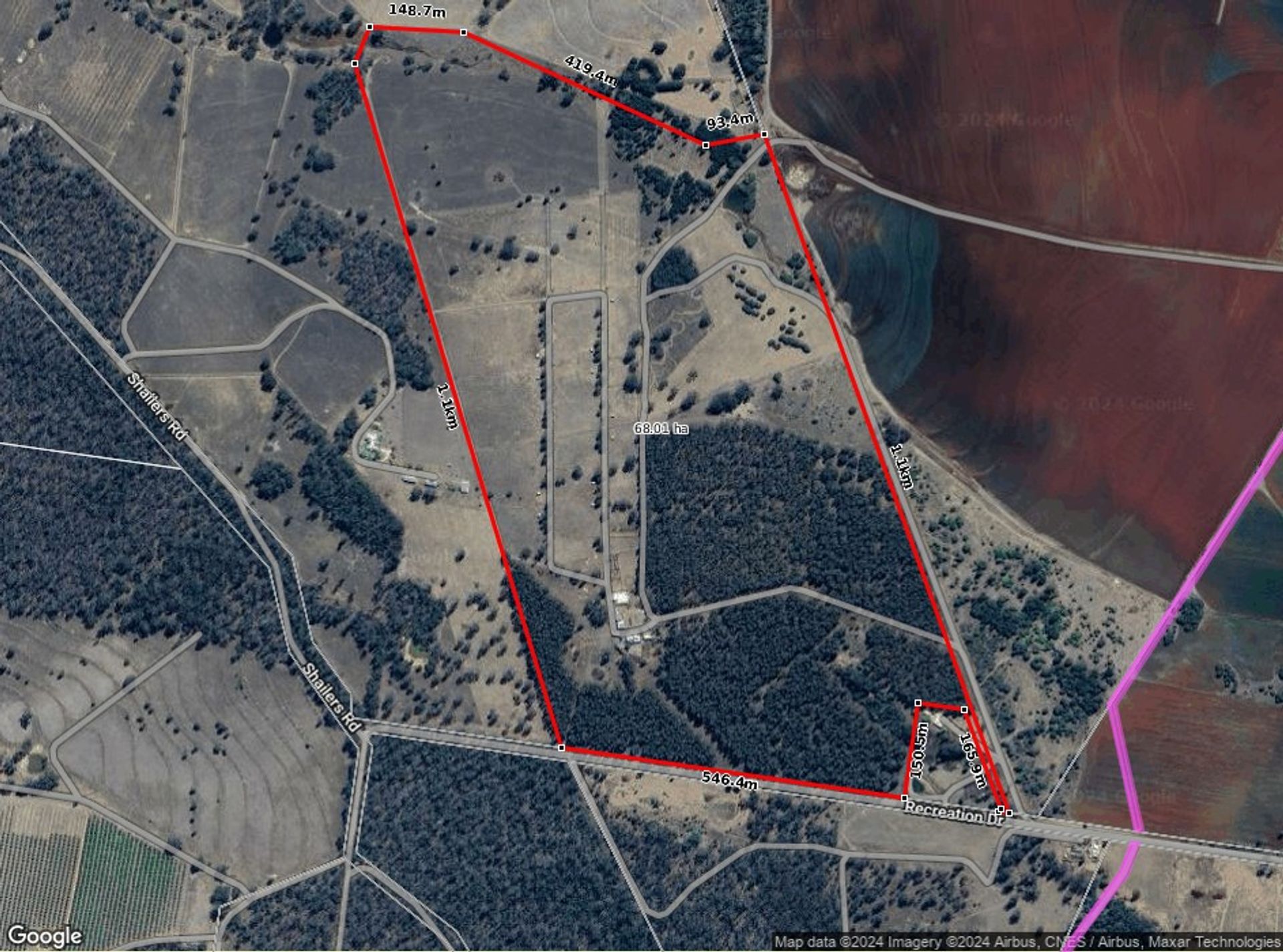 The property comprises of 68.01 Hectares (168.05 acres) and is located in a prime farming area in the South Burnett. Entry is via a long driveway bordered on both sides by spotted gum forest plantation. The land is elevated with rural views on every side, and slopes gently from the houses and outbuildings to a seasonal creek on the back boundary. There is easy access to all areas of the property.