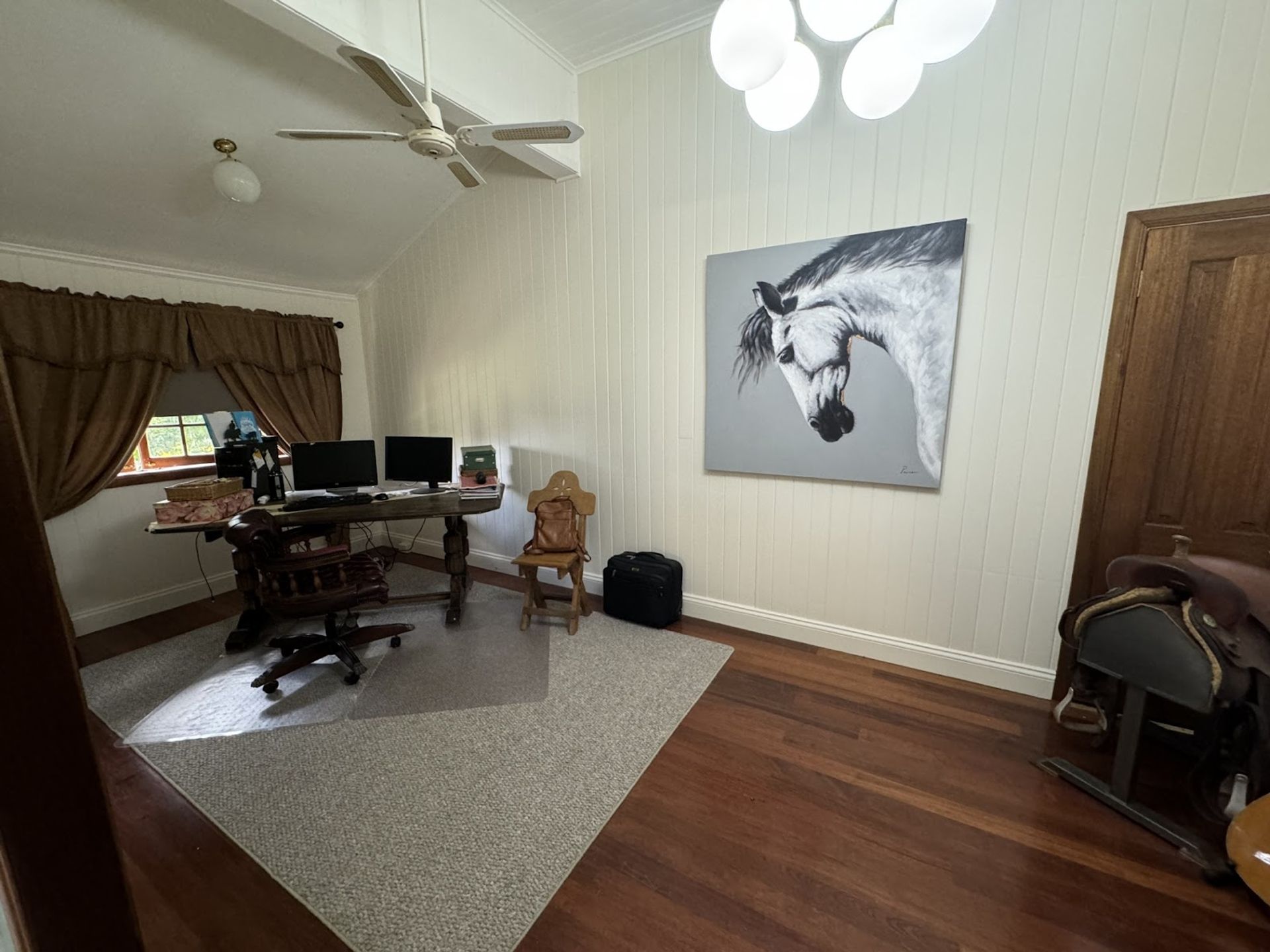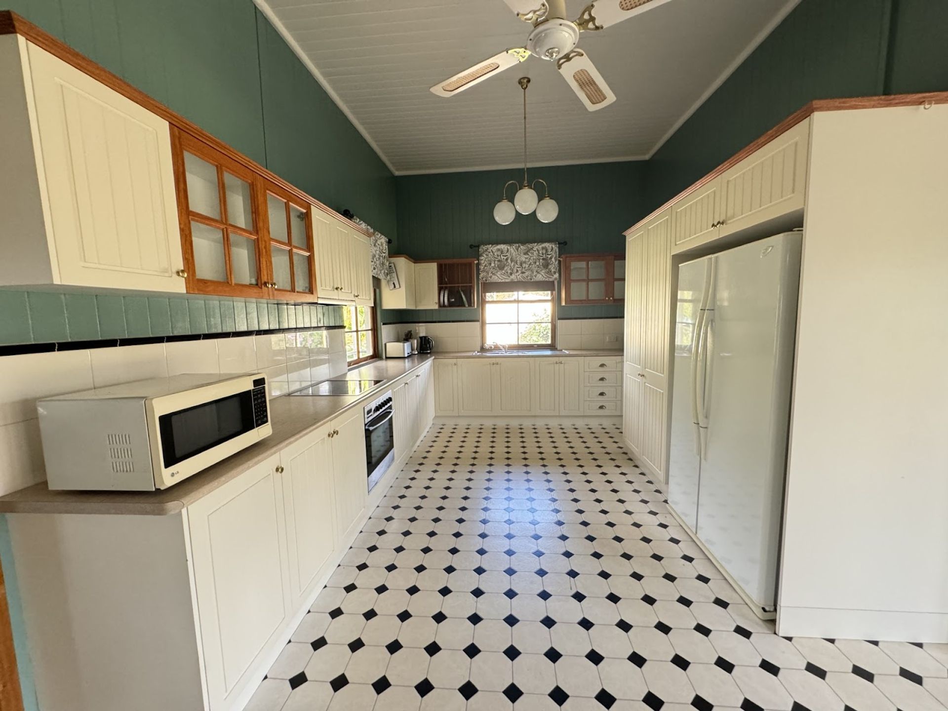 An older Queenslander, that was originally part of the Wondai Hospital built around 1915, and moved to it’s present location in the 1980’s. Recently renovated, the home features high ceilings, and large spacious rooms, an enormous living area, plus 3 bedrooms, 2 bathrooms, office/4th bedroom and verandas on all sides.