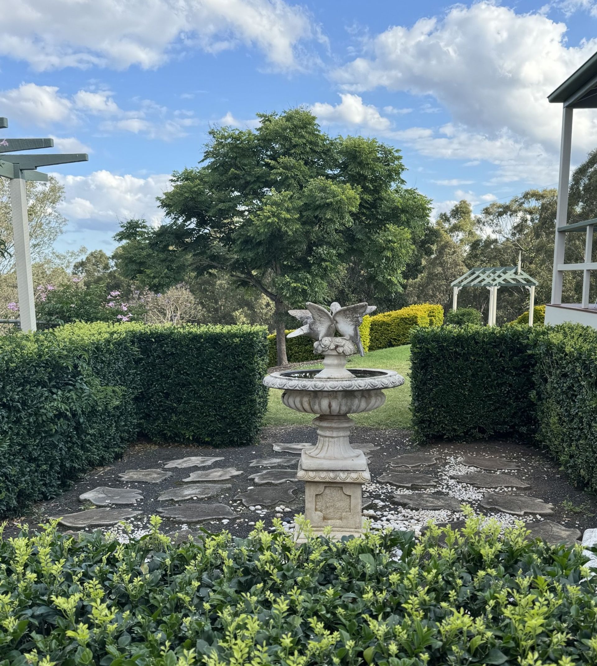 The homes and outbuildings are arranged in a well designed village layout, to assure privacy and easy access, with just a short stroll from work areas to home and office. They are surrounded by well established lawns, mature trees, native plants and manicured hedges.