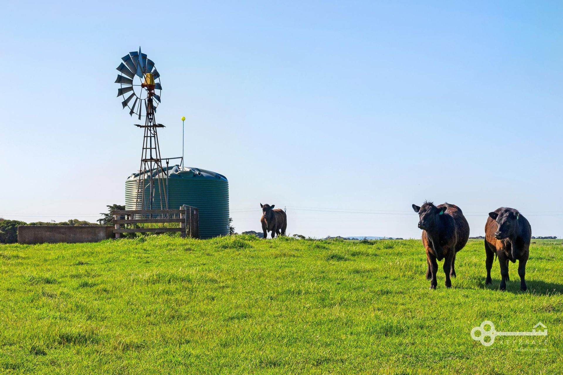 Water is supplied by windmill and bore with a 5000 gallon poly tank delivering water to all paddocks plus solar powered electric fencing to the perimiter and all paddocks.