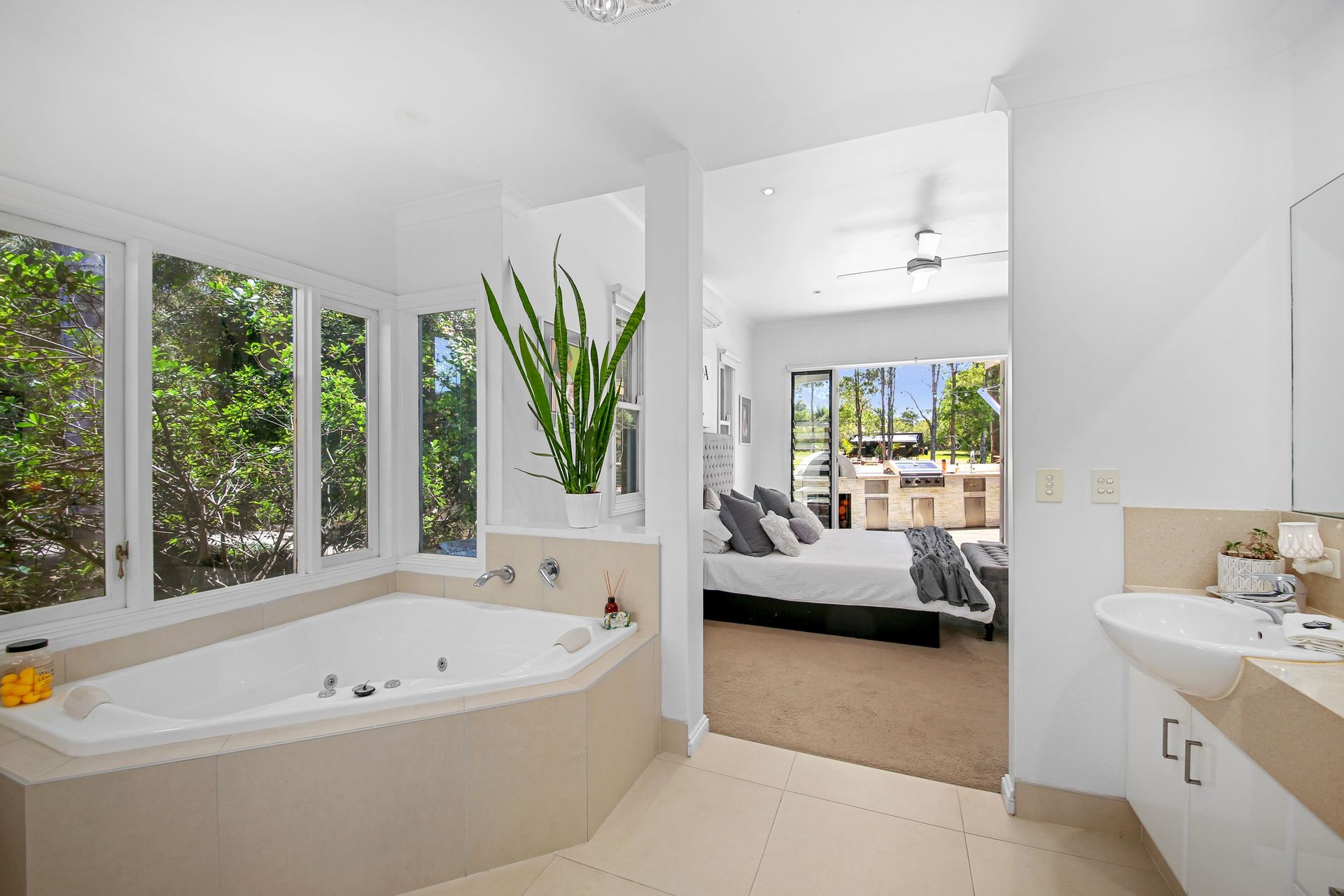 The heart of the home is the stylish kitchen, equipped with stainless steel gas and electric cooking appliances, stone benchtops, and a dishwasher - perfect for whipping up gourmet meals. The master suite is a retreat in itself, featuring a walk-in robe, a luxurious ensuite with double vanities, a spa bath, and direct access to the verandah, offering private views of the lake.