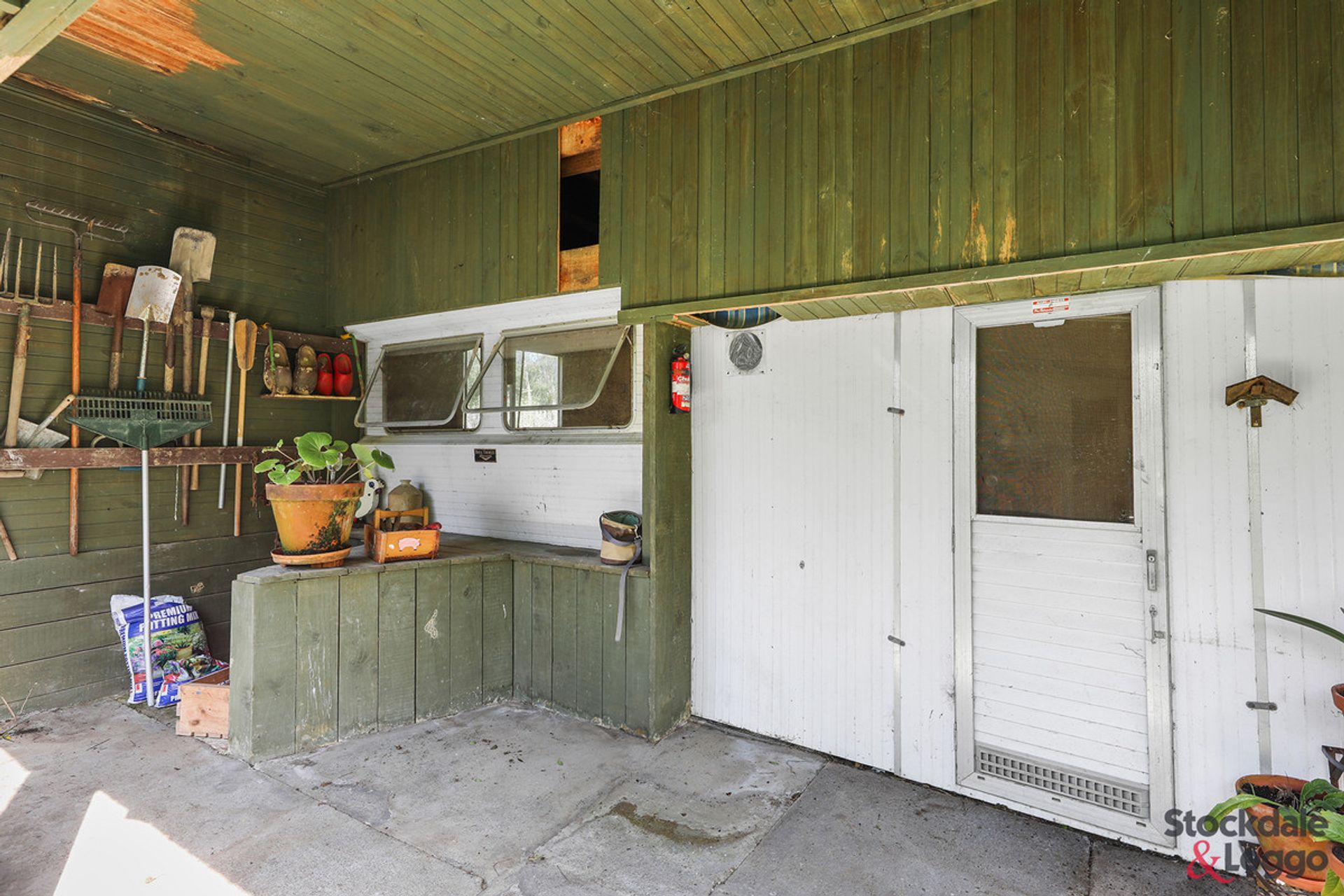 A double garage with a concrete floor and power, wood storage, a large workshop, hot house, and garden shed are conveniently located near the home, ensuring all your hobby and storage needs are met.