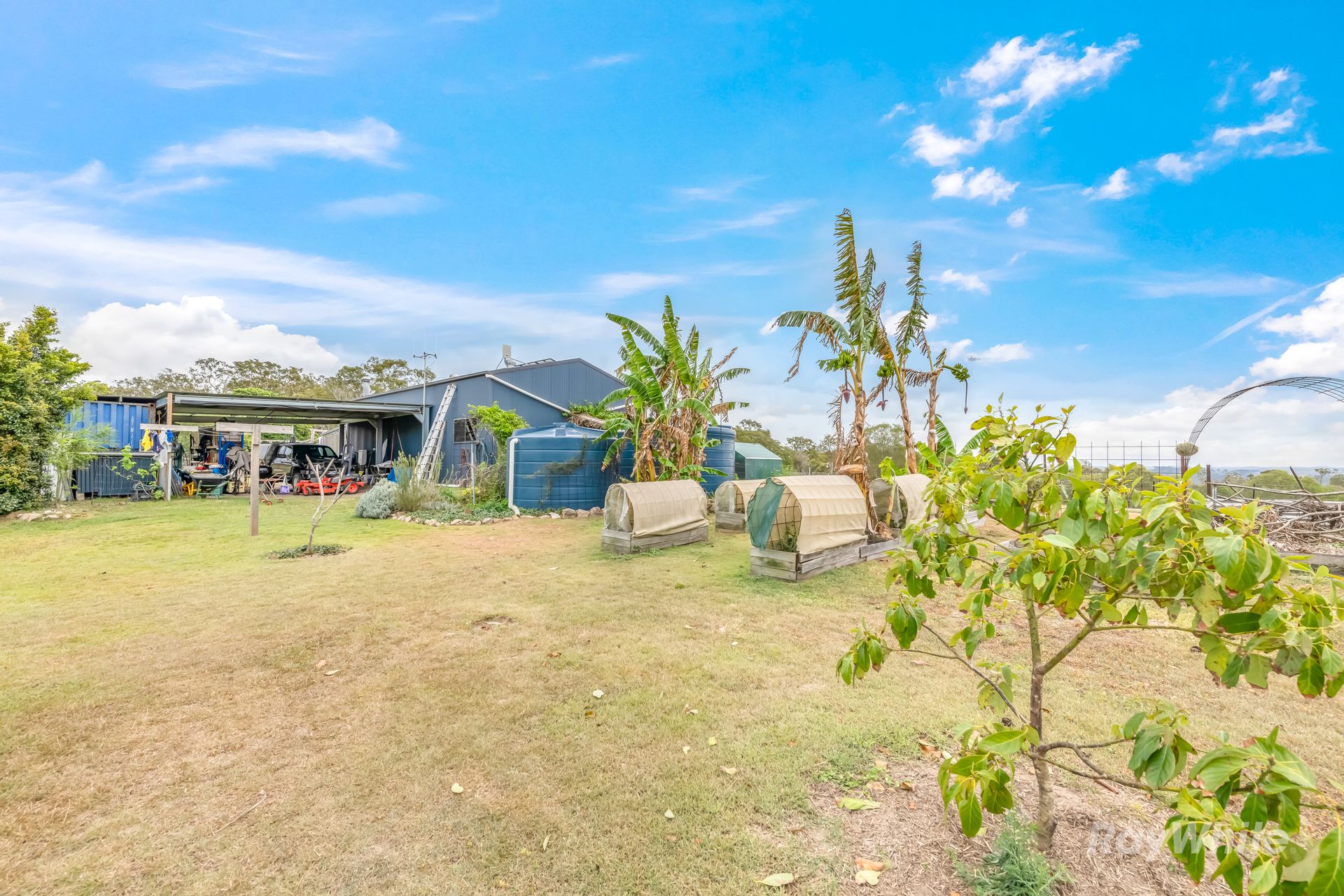 A second council-approved dwelling, built to lock-up stage, provides potential for expansion. It features a steel frame, insulated walls and ceiling, security screens, and two spacious verandas to soak in the panoramic mountain views. Three large rainwater tanks ensure water supply is never an issue.
