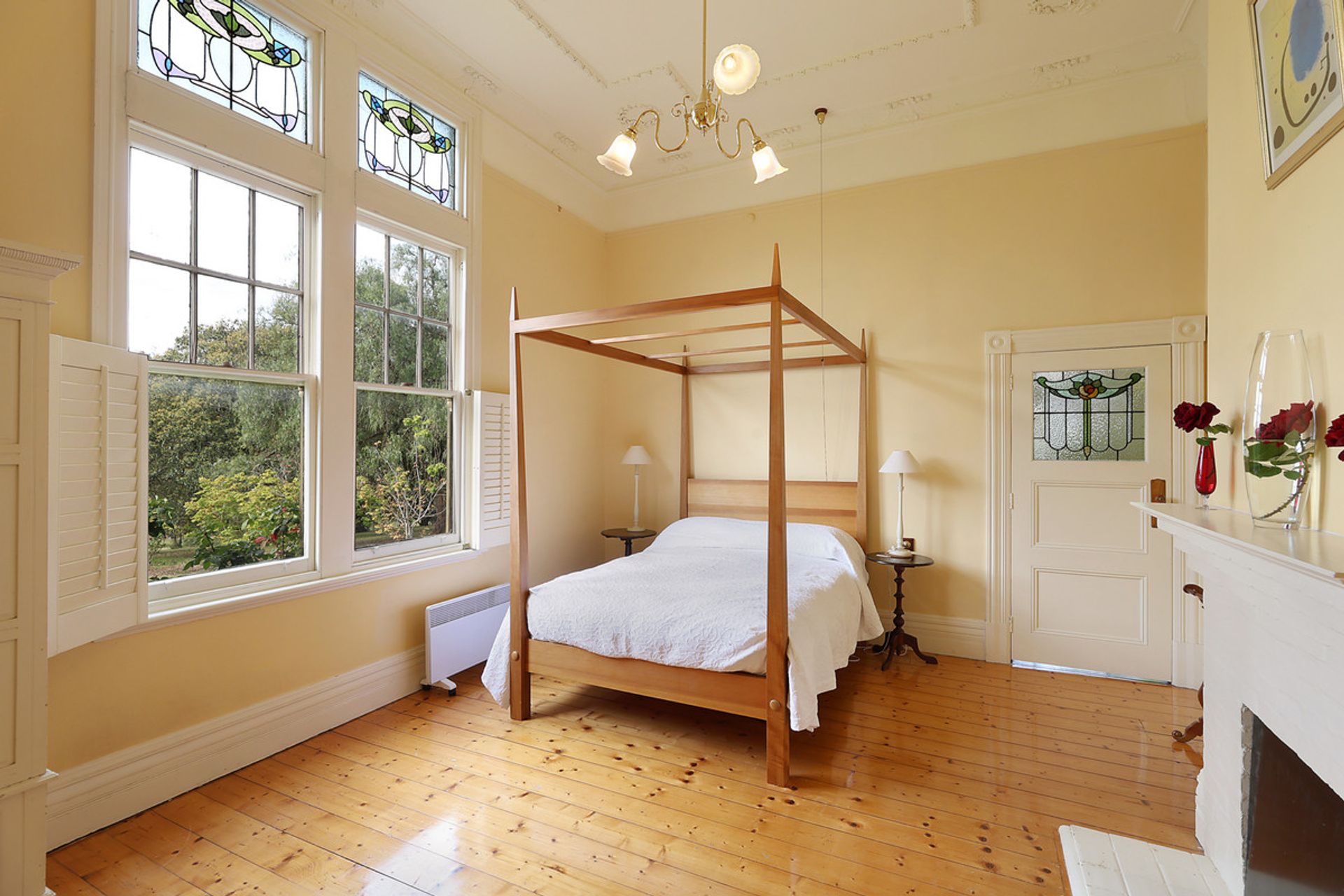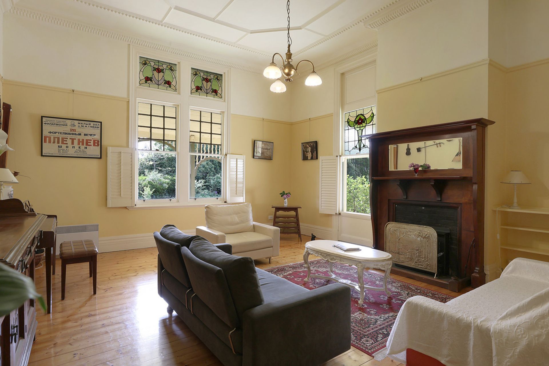 Highton Homestead is a remarkable historic estate accessible via a picturesque, tree-lined private driveway that leads into a private beautifully landscaped garden. Built by Mr Screen a well know architect, this luxurious residence (40 squares approx.) seamlessly blends formal and informal living spaces, showcasing exquisite period features such as original Baltic pine floors and stunning Art Nouveau ceilings. The homestead boasts four spacious bedrooms, a delightful drawing room, a study or 5th bedroom, and a sunroom that invites natural light. The country style kitchen and dining area are a testament to the originality of “Highton”, complete with a Rayburn SCH and a walk-in pantry that retains many original characteristics. The centrally located family bathroom features an original cast iron bath and basin. Enclosed original verandah (incorporating a second bathroom, separate toilet and mudroom) leads to an extensive outdoor entertaining area.