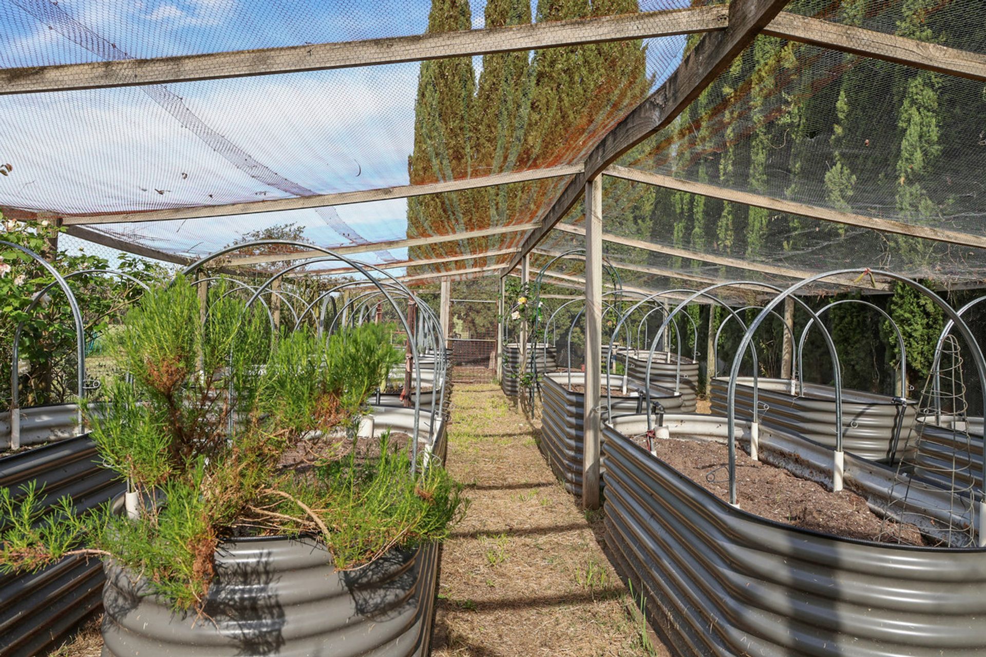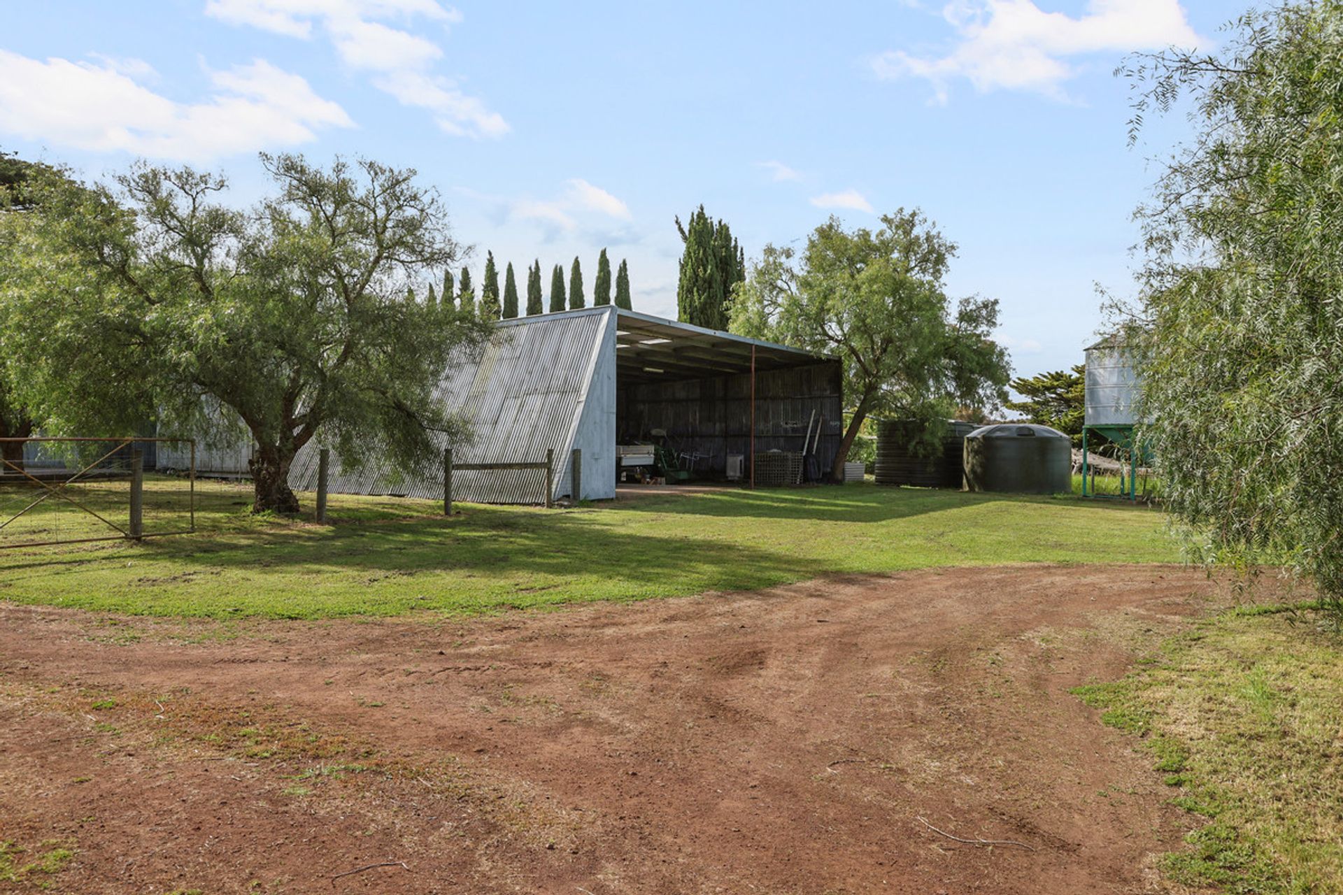 Set on 90.96 acres (36.81 ha) of productive, well-fenced farmland, the gently undulating landscape is perfect for various agricultural pursuits. Water security is ensured through a dam and header tank system that supplies troughs in all paddocks, along with a reliable town water backup. The property also includes a charming Gazebo overlooking a grove of 90 olive trees that yield over 100 kg of olives annually, a 30-acre timber plantation primarily of sugar gum, a well-established fruit orchard, and a netted vegetable garden with raised beds. With over a 1 km of frontage to Browns Waterhole Creek, the setting is truly enchanting. Substantial outbuildings enhance the estate's functionality, including a large machinery shed (16 m x 21 m concrete, power connected) , a lock-up workshop, a historic three-stand shearing shed (power connected), an old grain shed, and original shearers' quarters that could benefit from some attention. The well-constructed cattle yards, complete with race and crush, add to the property's appeal.