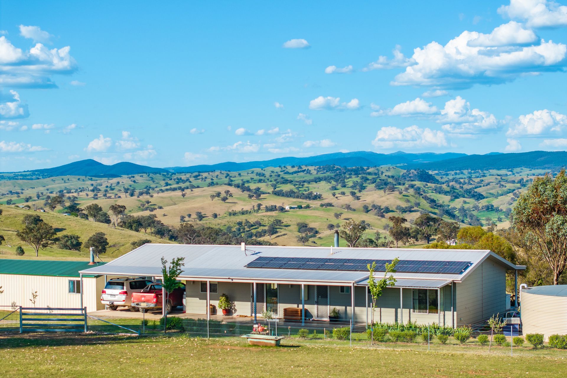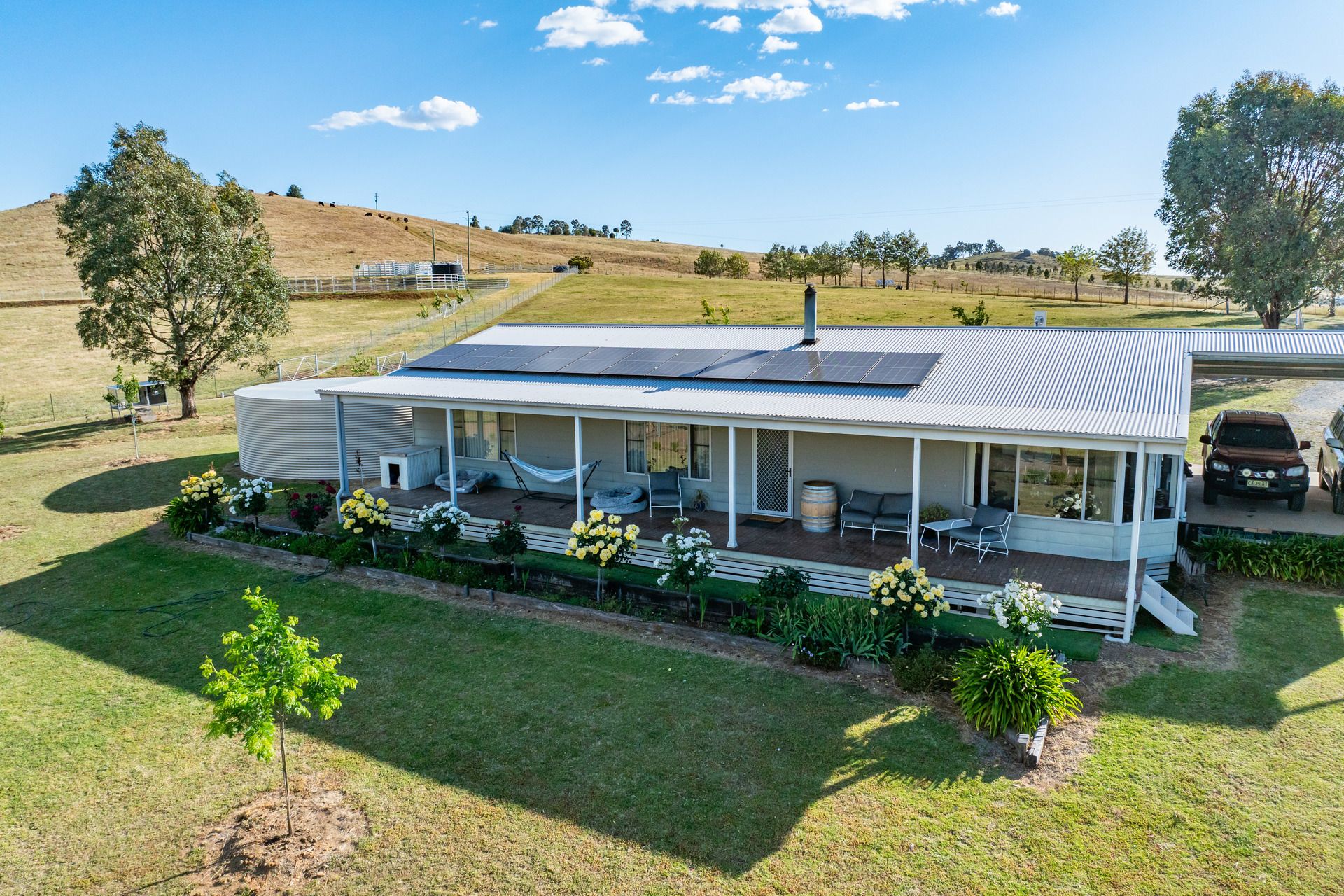 - 2" water line connects to a 6,500Gal header tank, reticulated to the house gardens and livestock water troughs