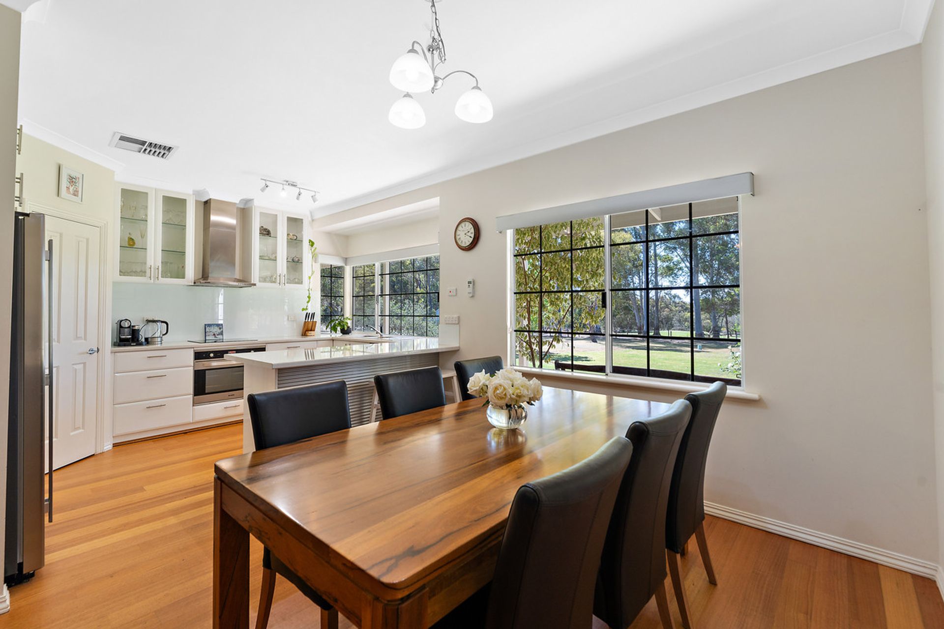 At the heart of the home, the sprawling open-plan kitchen, family, and meals area seamlessly blend style and functionality, making it an inviting space for daily living and special occasions. The adjacent alfresco area, equipped with café blinds, offers a stunning setting for year-round outdoor entertaining. The minor bedrooms are all queen-sized ensure ample space and comfort. The homes comes finished off with ducted air conditioning throughout as well as solid timber floorboards all the way through.