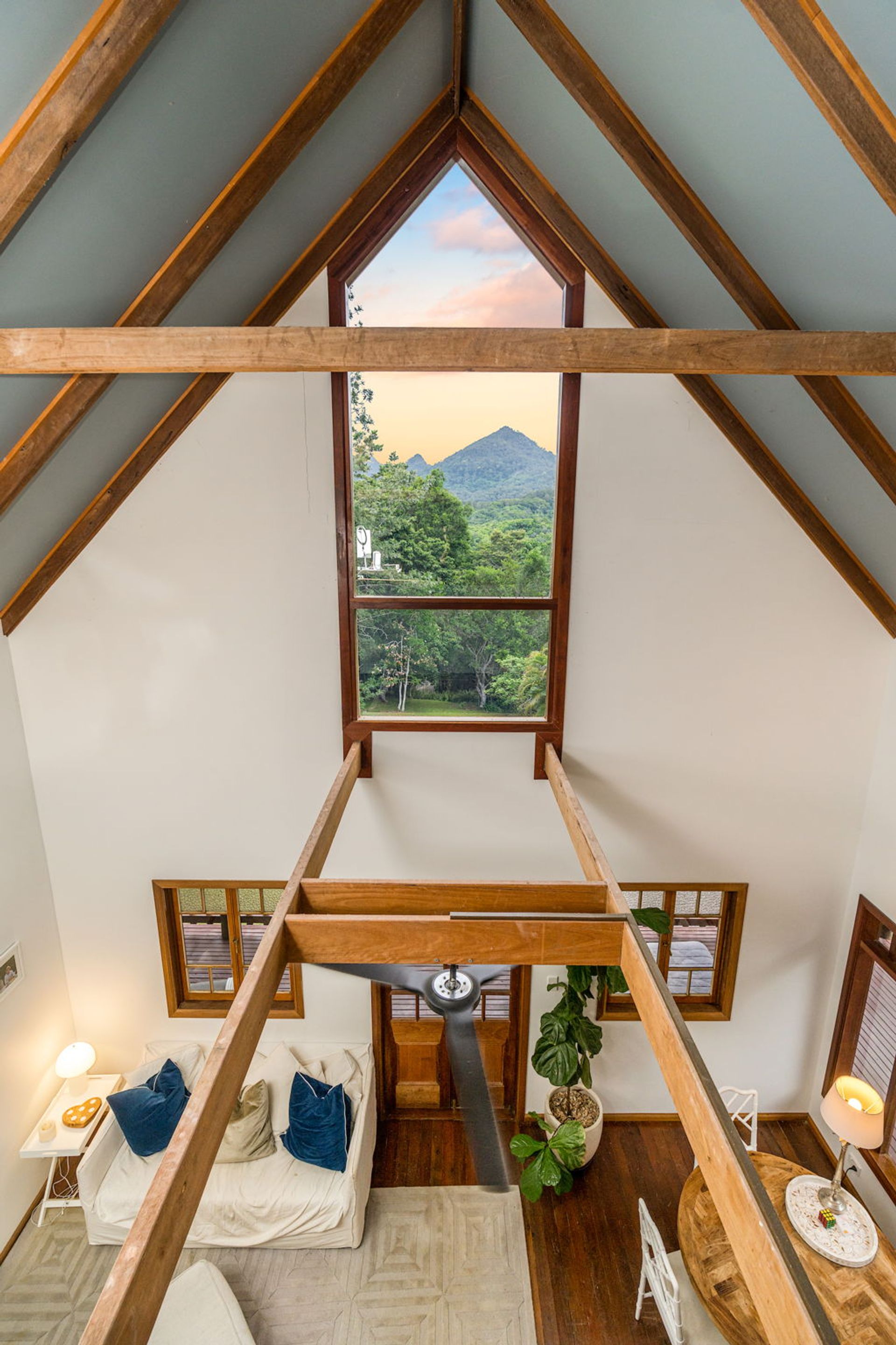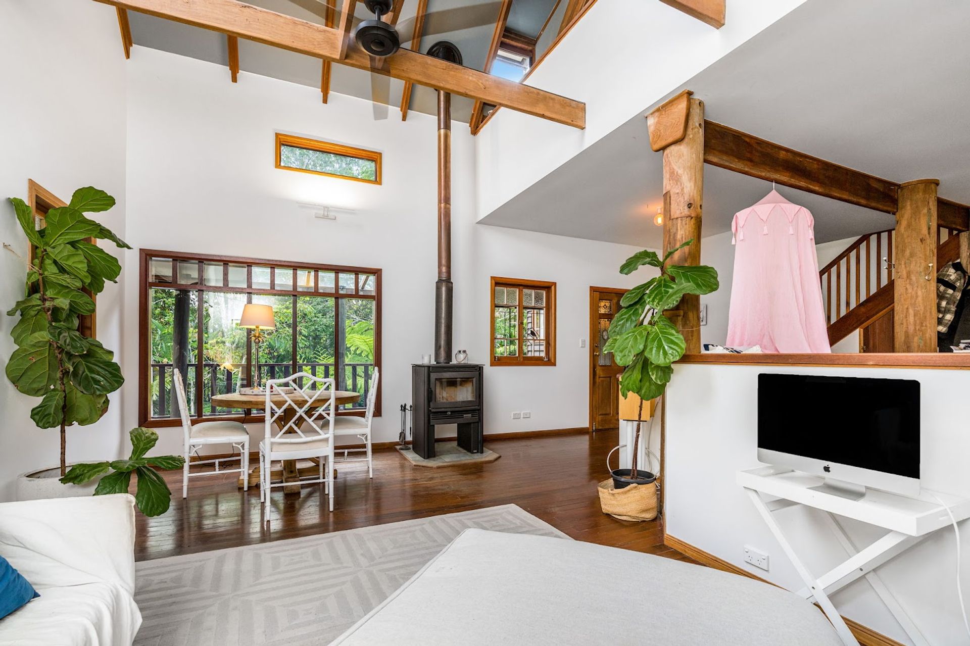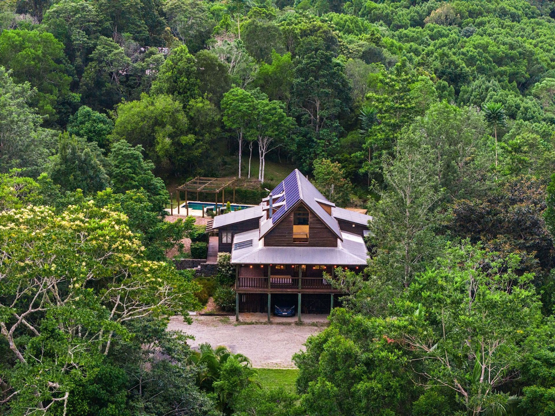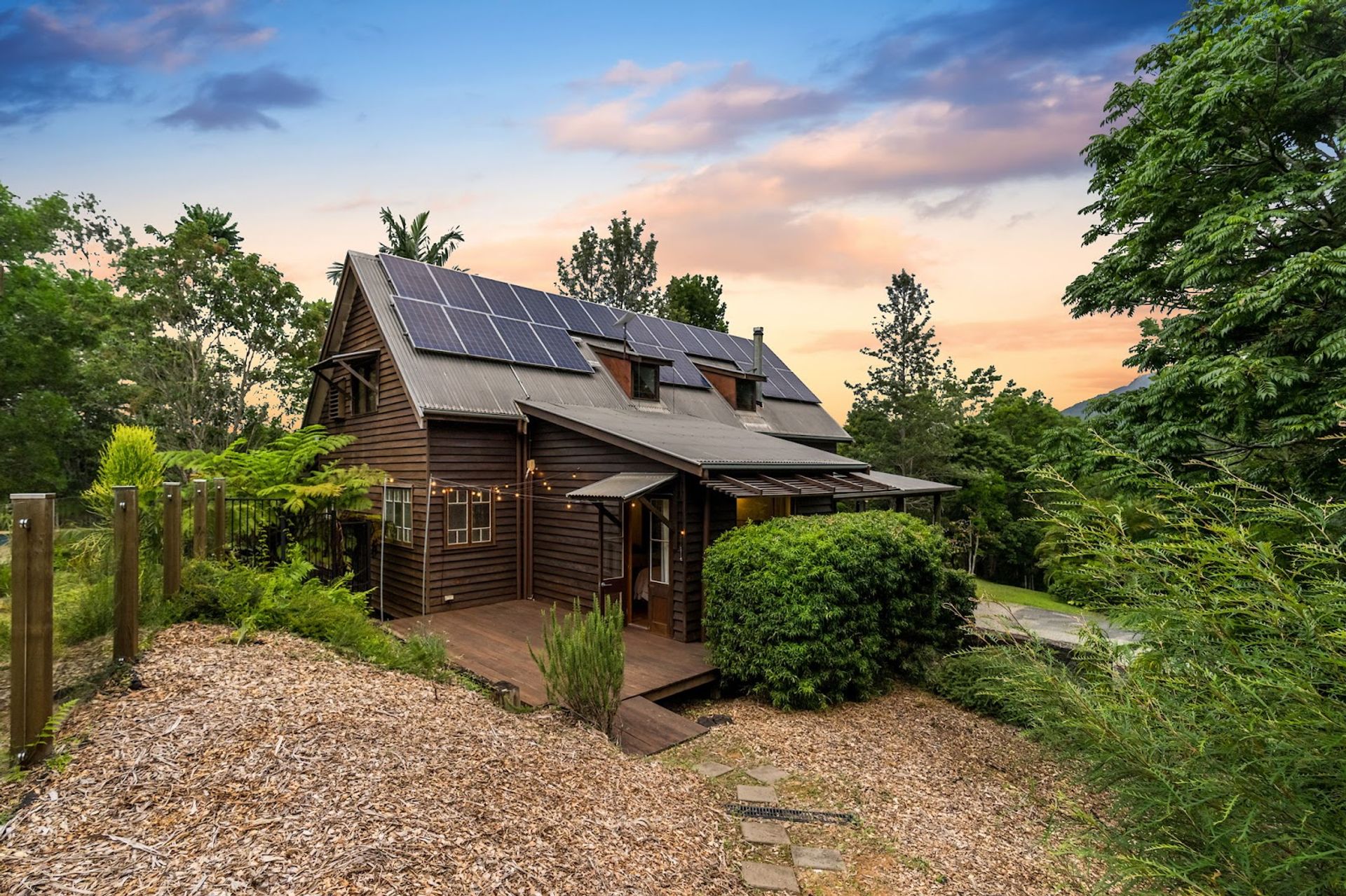 You will love coming home to this high set quality built timber home, situated tucked away on its very own 7+ acre sanctuary in nature at the top of a ridge just minutes to Uki village. There is a feeling of peace and serenity in this home with its wrap around deck affording a stunning vantage point to view magical Wollumbin (Mount Warning) in all its glory and its ever changing moods. Upon awakening after a restful sleep you will hear the sounds of birdsong as the morning mists rise to give way to a new day and a sun drenched vista in every direction. If a morning swim is your thing then the 18mtr lap pool is beckoning...what a way to start your day! Your rainforest gardens are an allure to the abundance of wildlife here including the resident black wallaby ("Wally") and a plethora of birds, including kookaburras, black and white cockatiels and rosellas. Take an afternoon walk on the rainforest path near the creek and enjoy some of your orchard harvest as you head back up the path to perhaps have an afternoon or early evening swim under the stars. This is a call to nature lovers who will feel a million miles away from the madding crowd yet still be handy to local amenity including the bustling Northern Rivers arts and food scene of Murwillumbah and the Gold Coast international airport.
