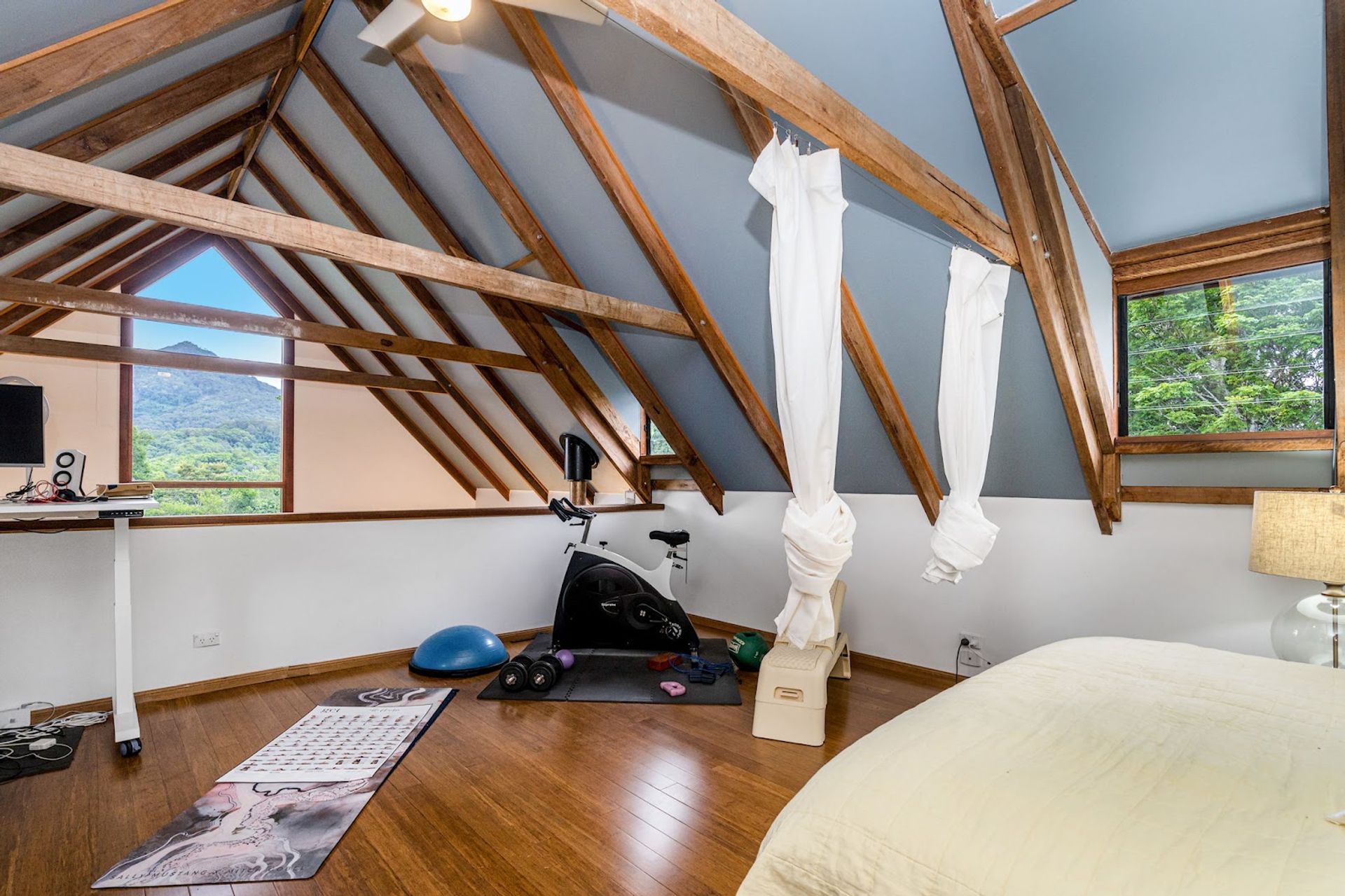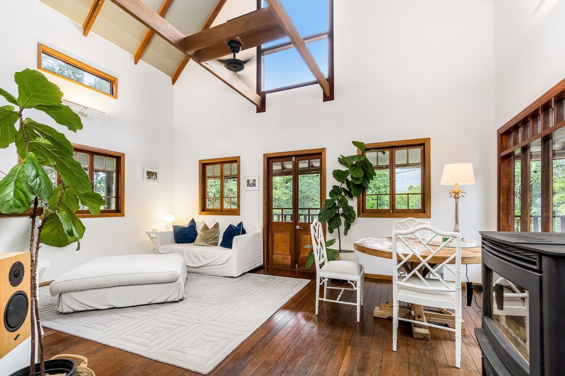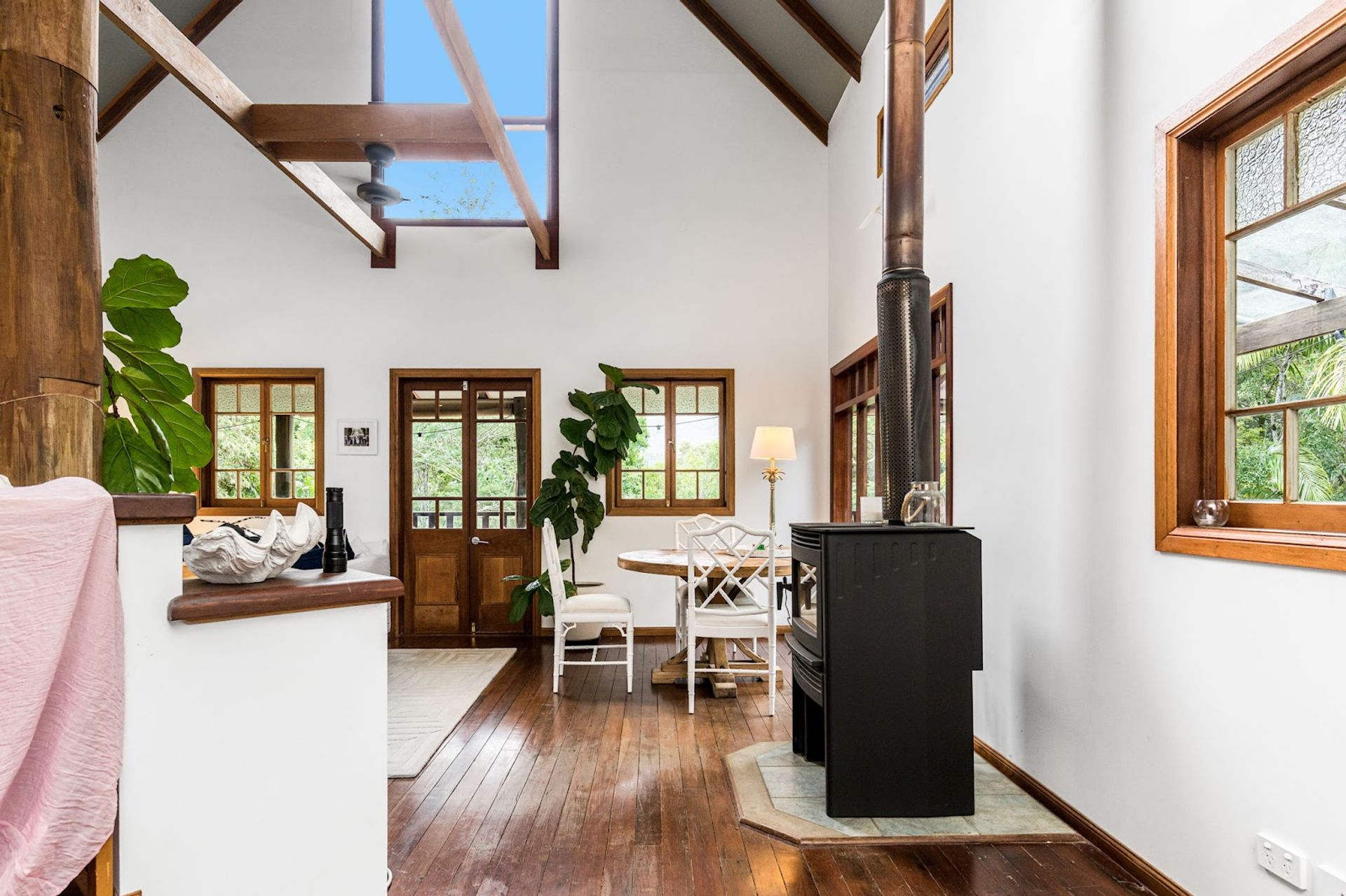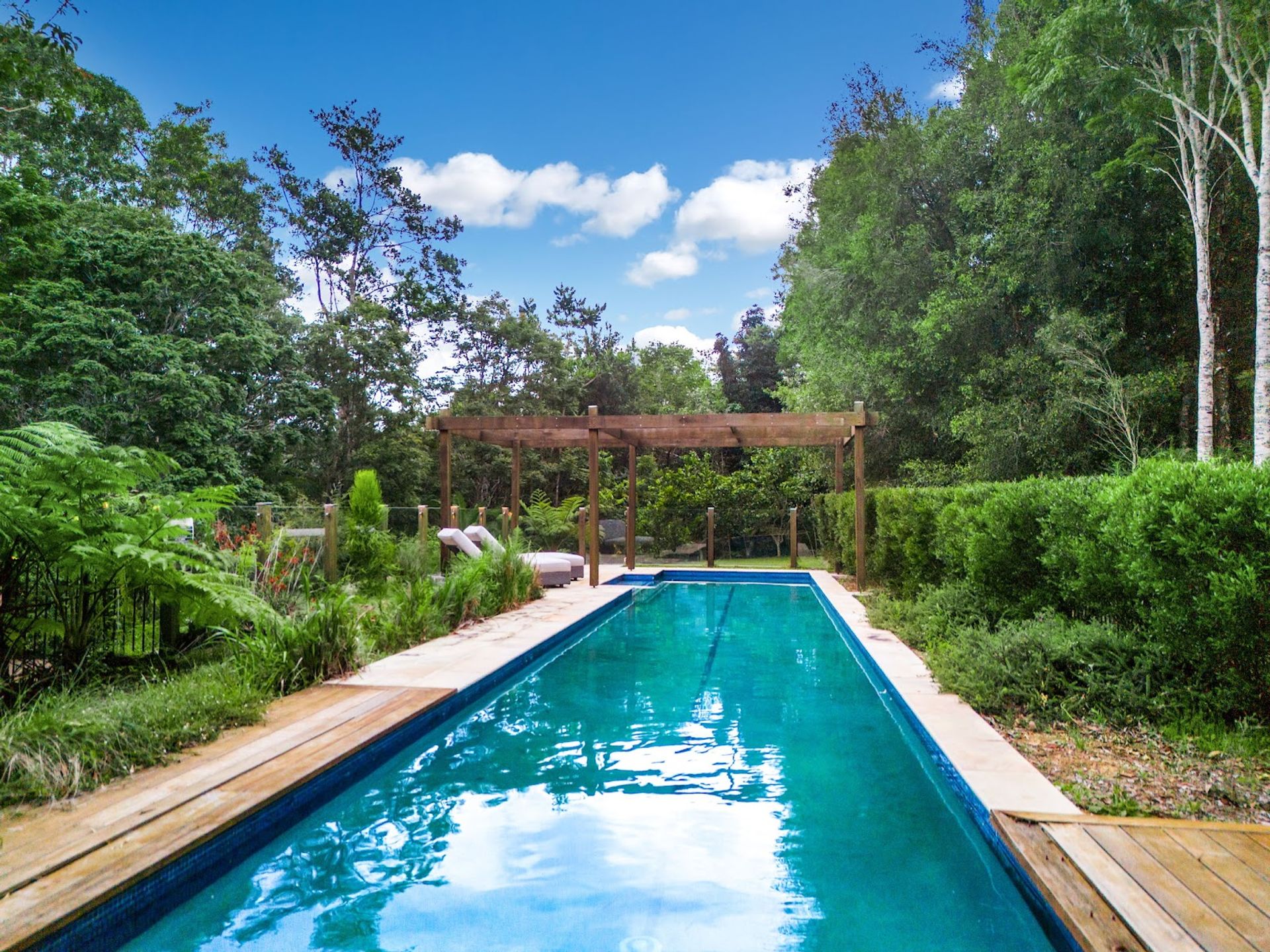 You will love coming home to this high set quality built timber home, situated tucked away on its very own 7+ acre sanctuary in nature at the top of a ridge just minutes to Uki village. There is a feeling of peace and serenity in this home with its wrap around deck affording a stunning vantage point to view magical Wollumbin (Mount Warning) in all its glory and its ever changing moods. Upon awakening after a restful sleep you will hear the sounds of birdsong as the morning mists rise to give way to a new day and a sun drenched vista in every direction. If a morning swim is your thing then the 18mtr lap pool is beckoning...what a way to start your day! Your rainforest gardens are an allure to the abundance of wildlife here including the resident black wallaby ("Wally") and a plethora of birds, including kookaburras, black and white cockatiels and rosellas. Take an afternoon walk on the rainforest path near the creek and enjoy some of your orchard harvest as you head back up the path to perhaps have an afternoon or early evening swim under the stars. This is a call to nature lovers who will feel a million miles away from the madding crowd yet still be handy to local amenity including the bustling Northern Rivers arts and food scene of Murwillumbah and the Gold Coast international airport.
