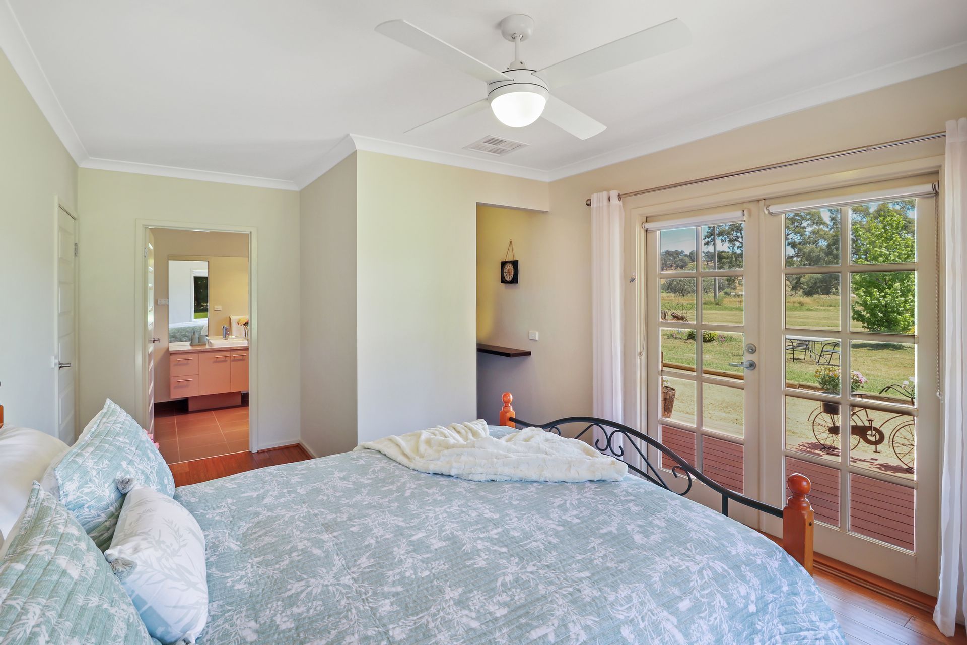 Versatile floorplan with 4 bedrooms, 3.5 bathrooms. A hallway door separates one end of the house if needed and provides an ideal space for teenagers, extended family, overflow visitors or the running of a small bed and breakfast. Each room has exterior access via French doors/sliding doors.