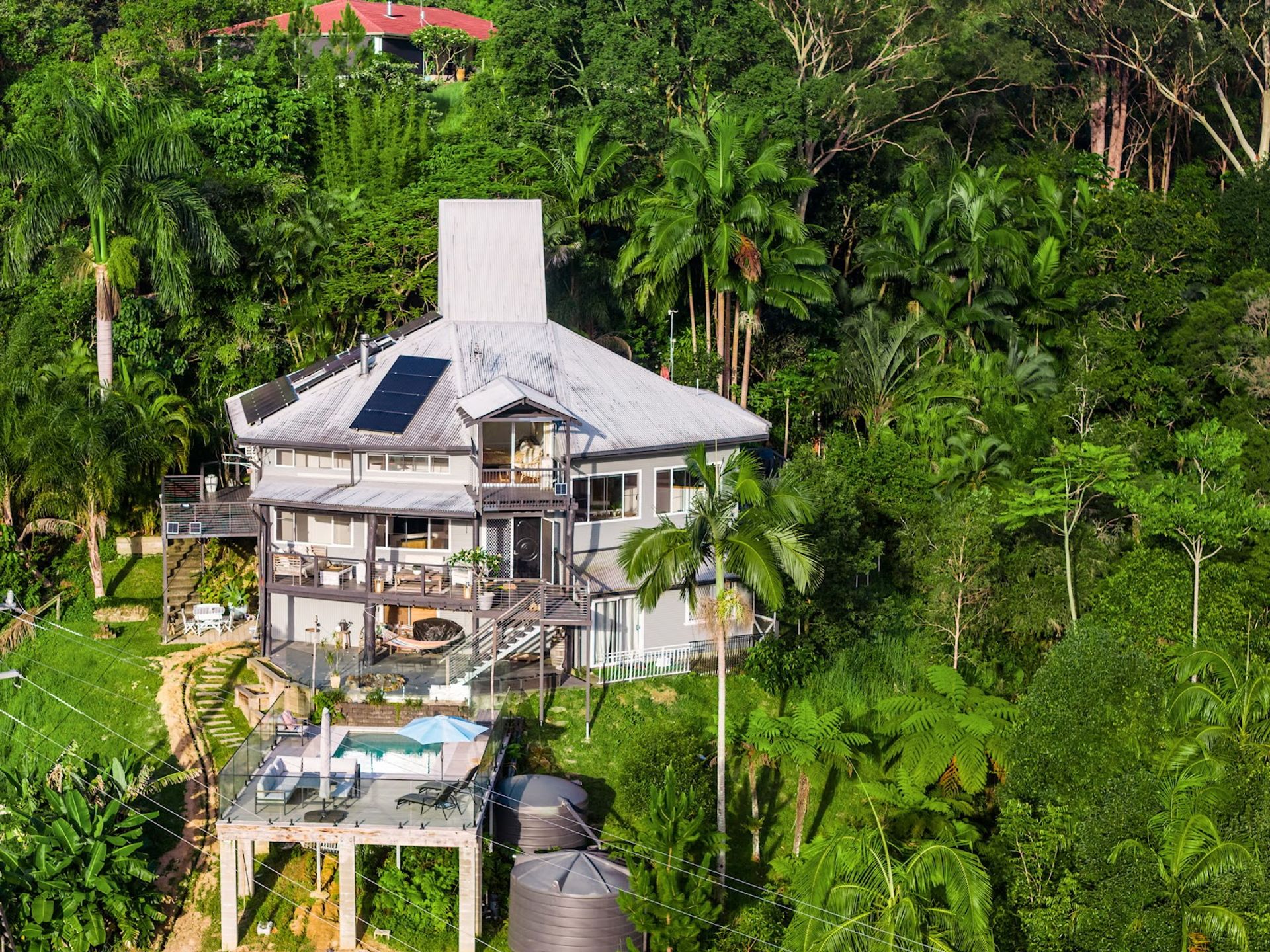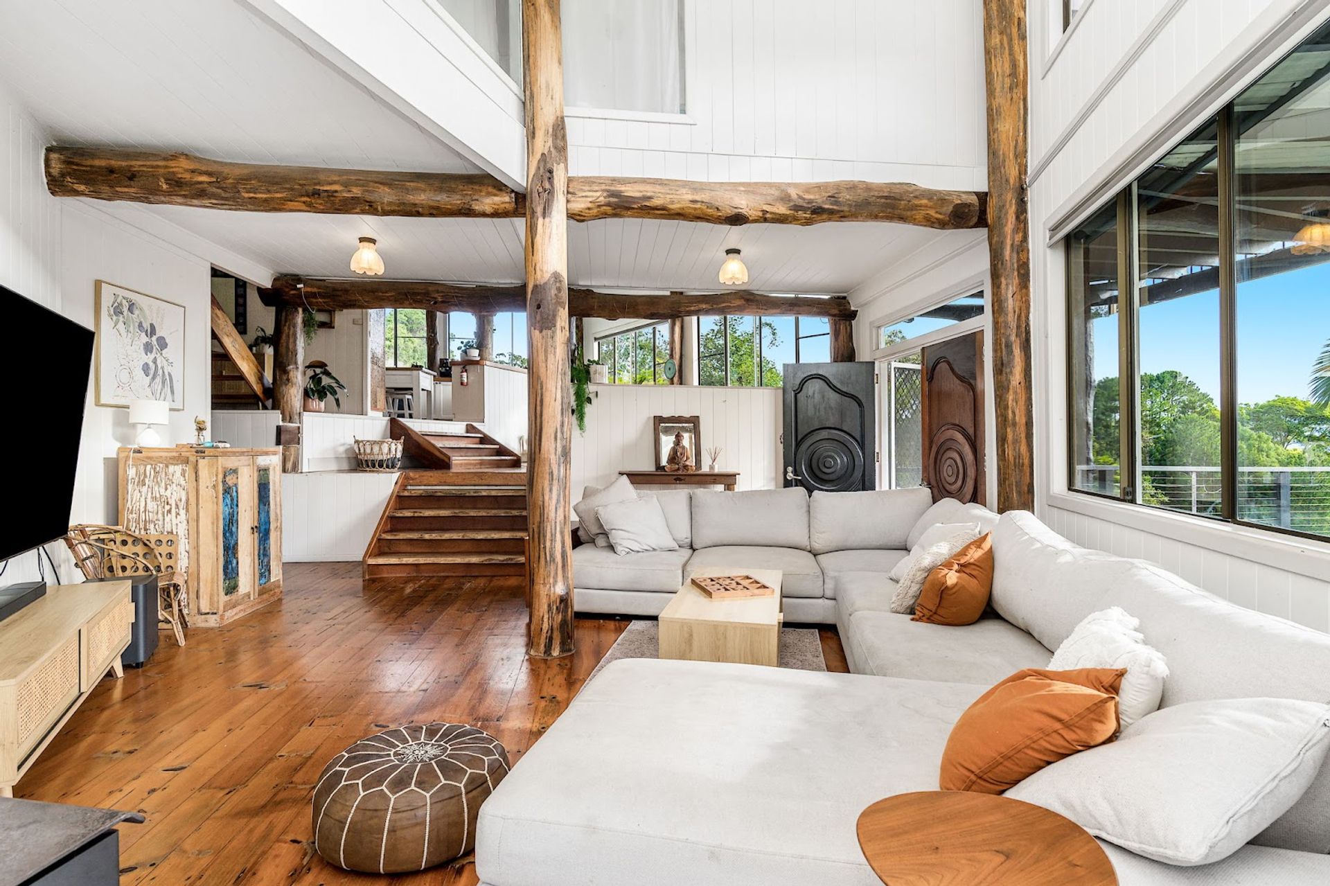 Huge architect designed multi-level home with fantastic timber features! You are high and dry here just 5 minutes drive to the bustling foodie and arts hub of Murwillumbah. With glorious views over the valley to Mount Warning and beyond.