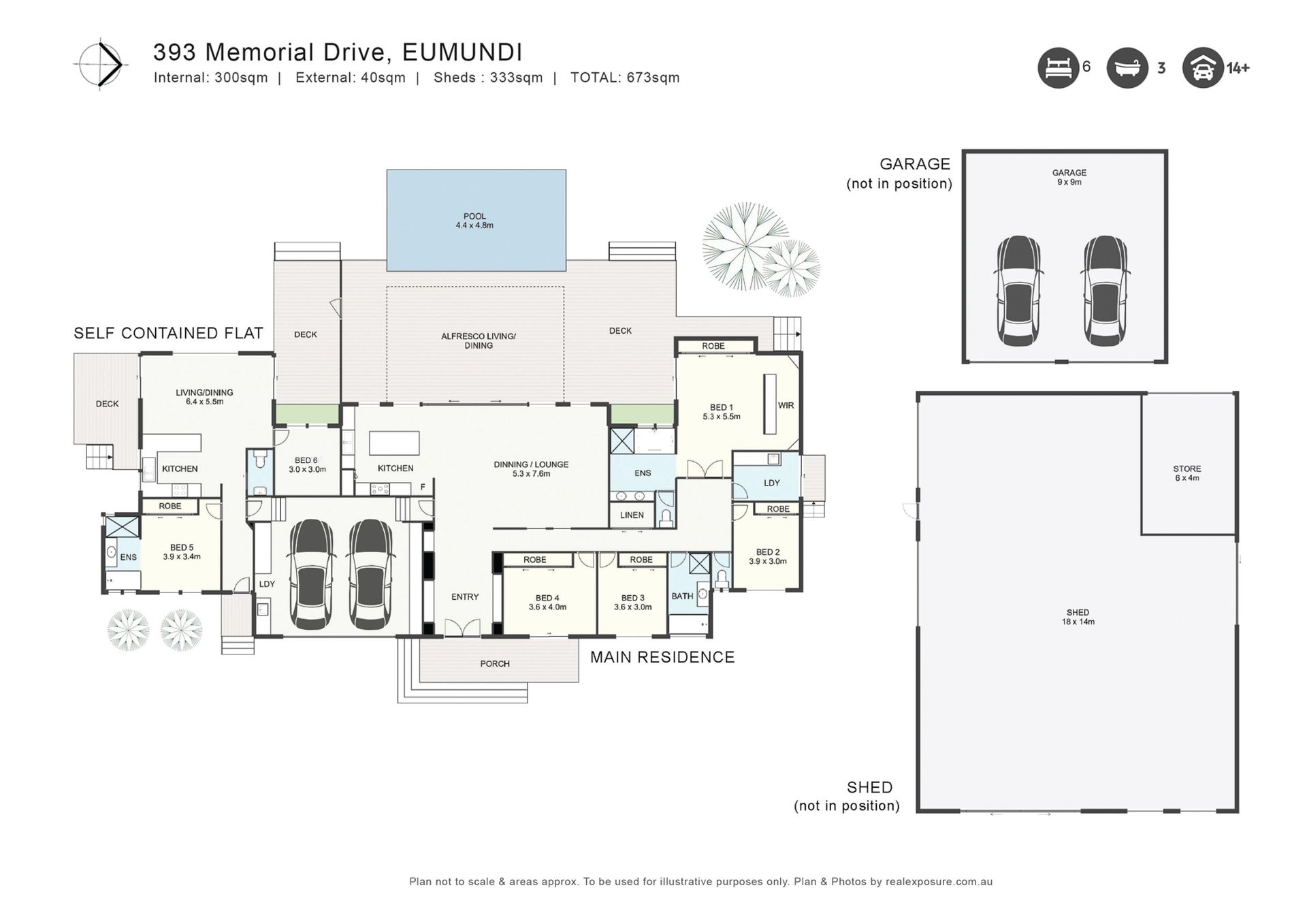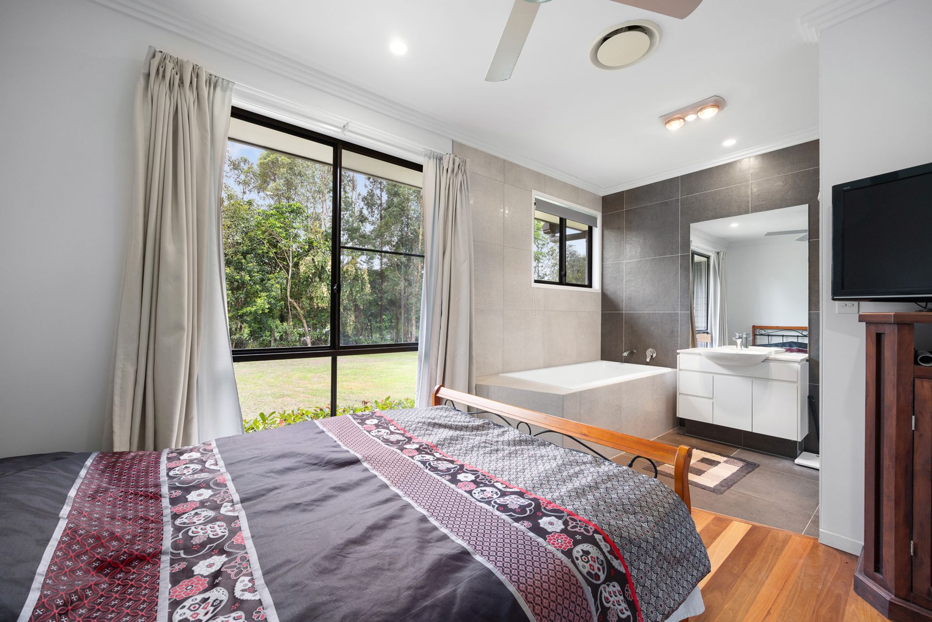 - Main bed with WIR, ensuite, spa bath, sep. toilet, pool access