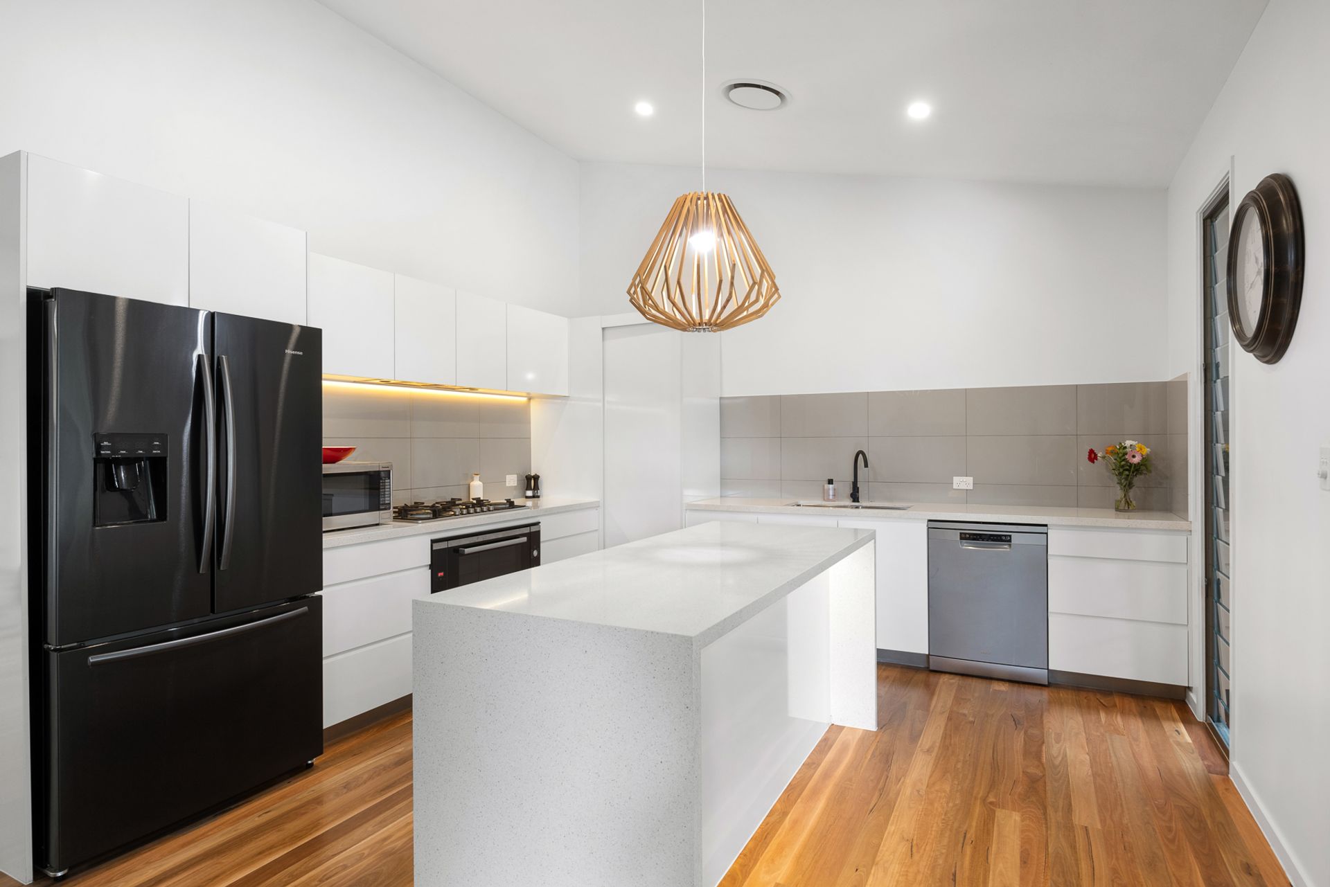 - Australian hardwood floors, open plan living, DLUG, 20kw solar