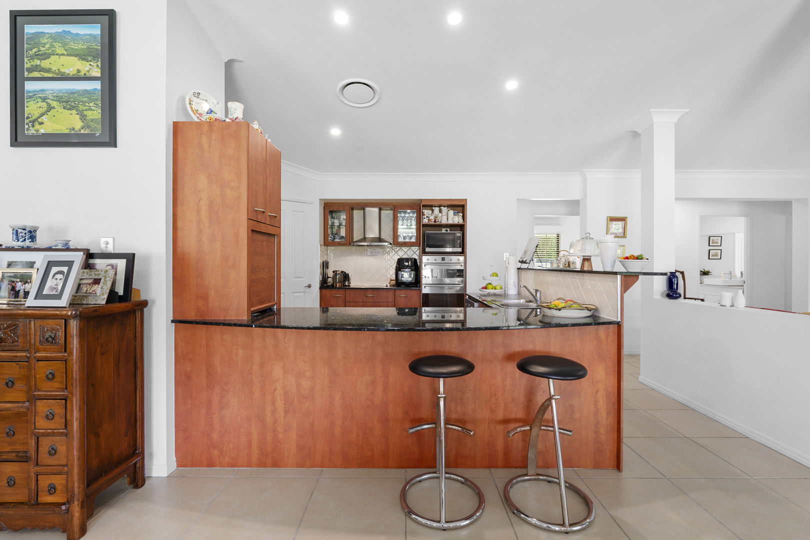 • Modern kitchen with granite benchtops, Smeg appliances, and easy access to the