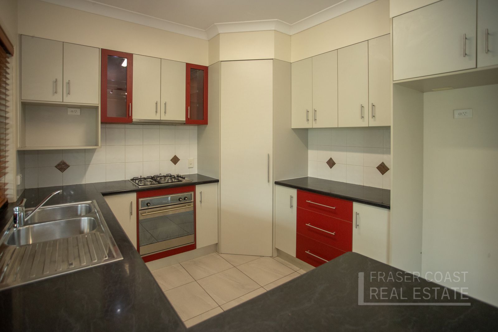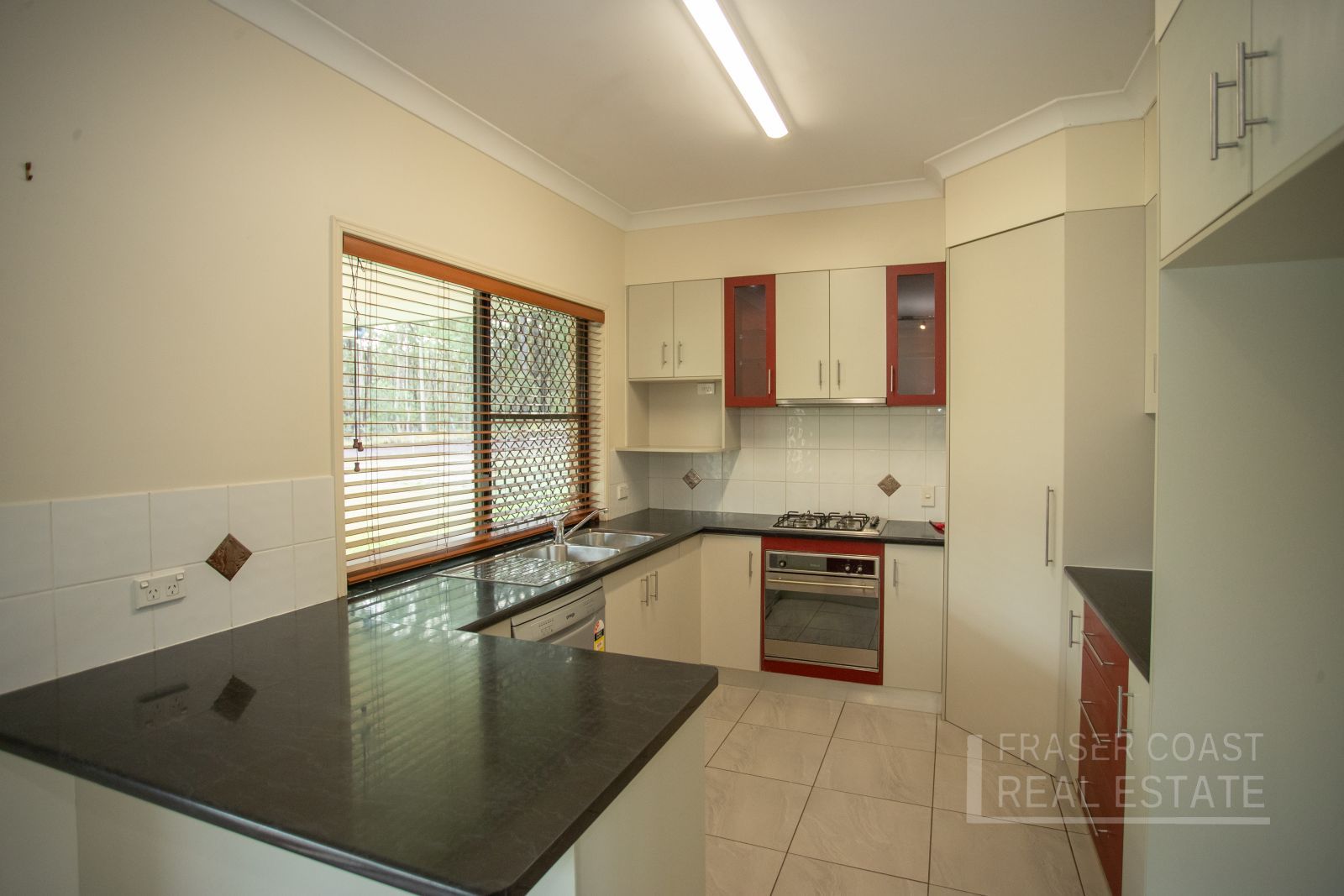 The kitchen has an extremely practical layout (* plenty of bench top space & breakfast bar area, gas cooktop, large electric oven, new dishwasher and the spot where the fridge goes is plumbed to suit a waterchiller/ ice maker). The kitchen and internal dining area is adjacent to the large back of house undercover entertainment zone. The kitchen has a service window/pass, making home entertaining a breeze.