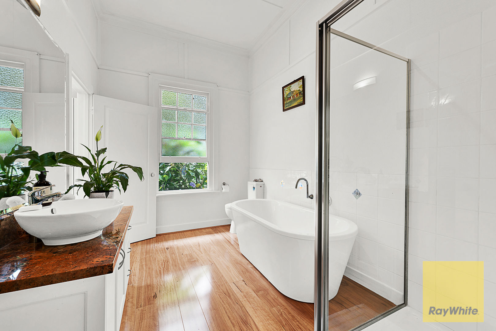 • Central family bathroom with feature granite benchtops, shower and sumptuous bath overlooking the garden