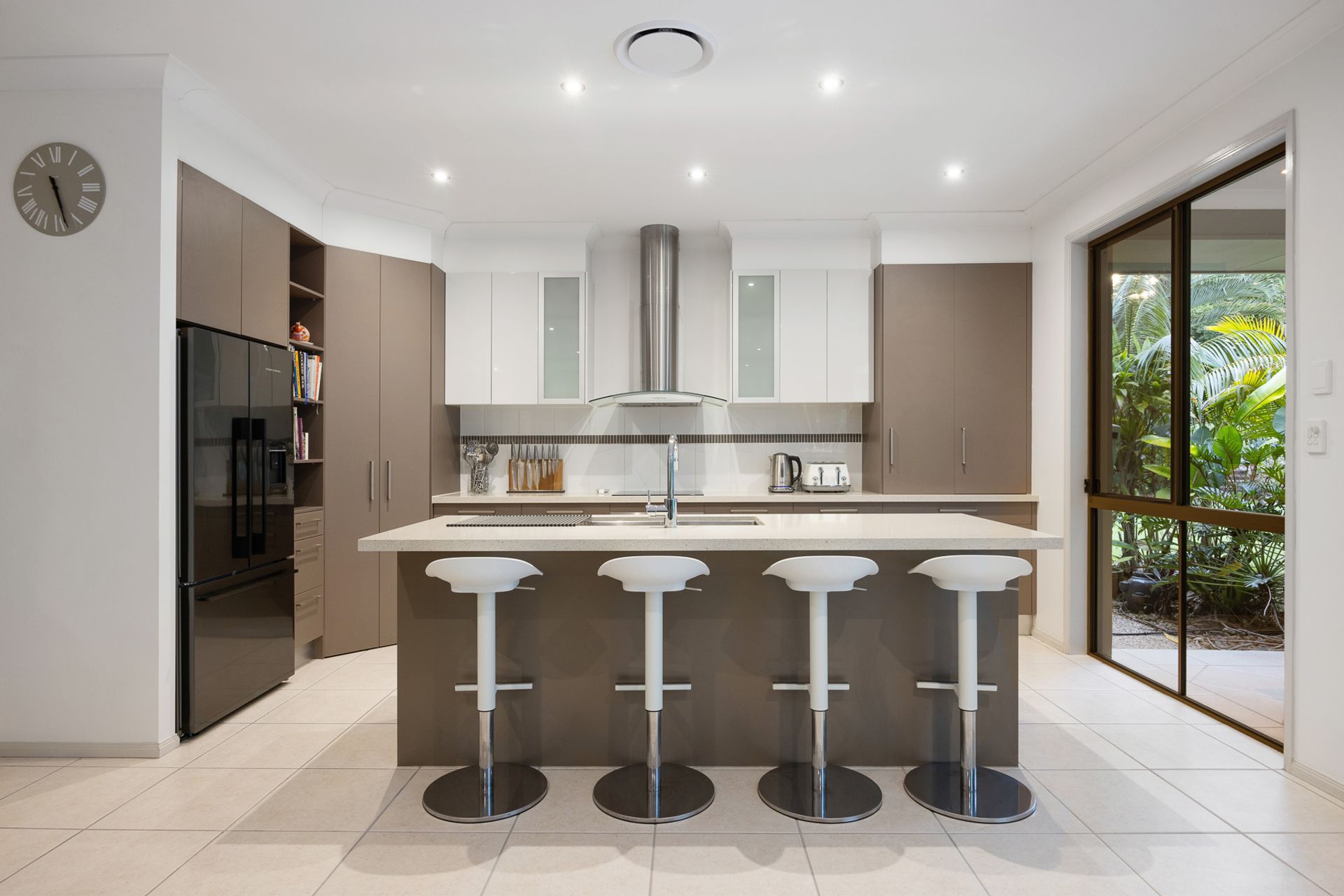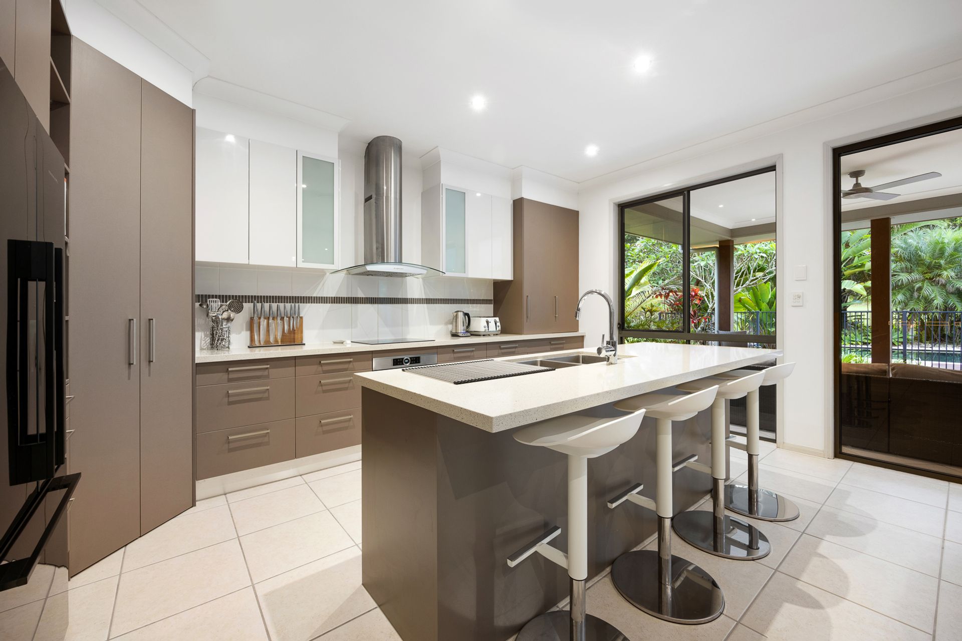 • Modern kitchen, induction cooking, pyrolytic oven, stone benches