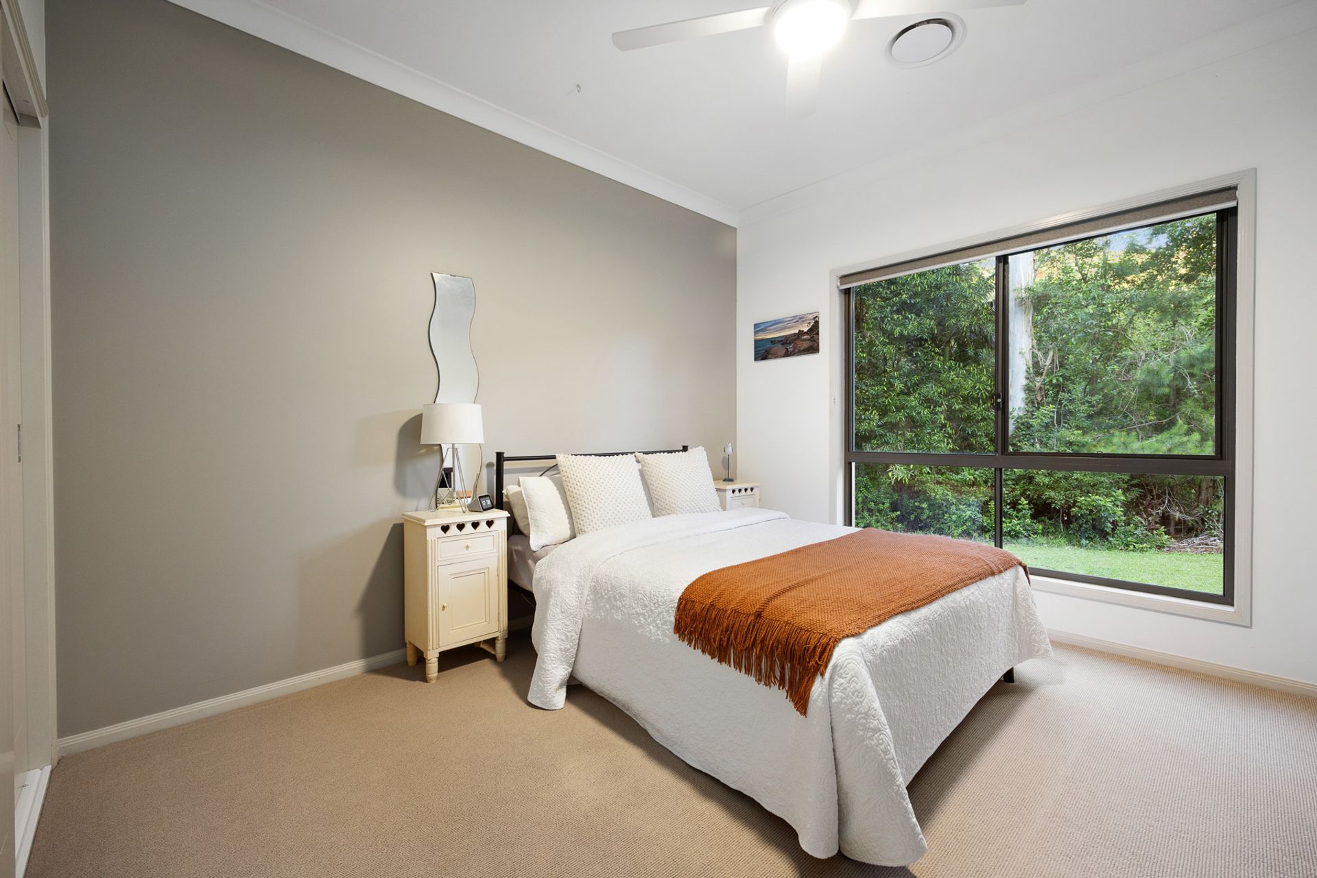 The spacious rendered block home has been meticulously maintained and updated, with a relaxed, modern feel thanks to high ceilings and a neutral colour scheme. Comfort and quality are key influences, evident in the ducted air-conditioning, ceiling fans, tiled floors in the living zones and wool carpets in the bedrooms. Modern technology is also a feature, with voice activated blinds, a back-to-base alarm and 6kw of solar panels.