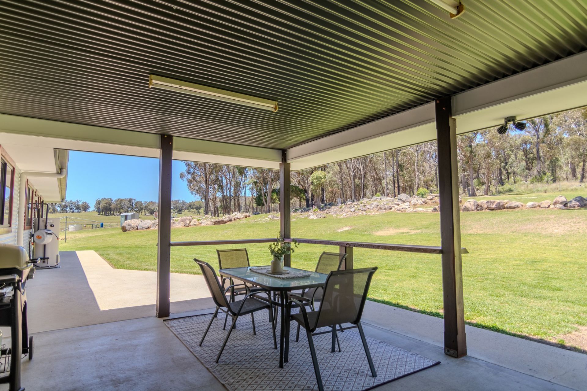 -An expansive outdoor patio and portico (30 sqm), ideal for entertaining or enjoying peaceful rural views.