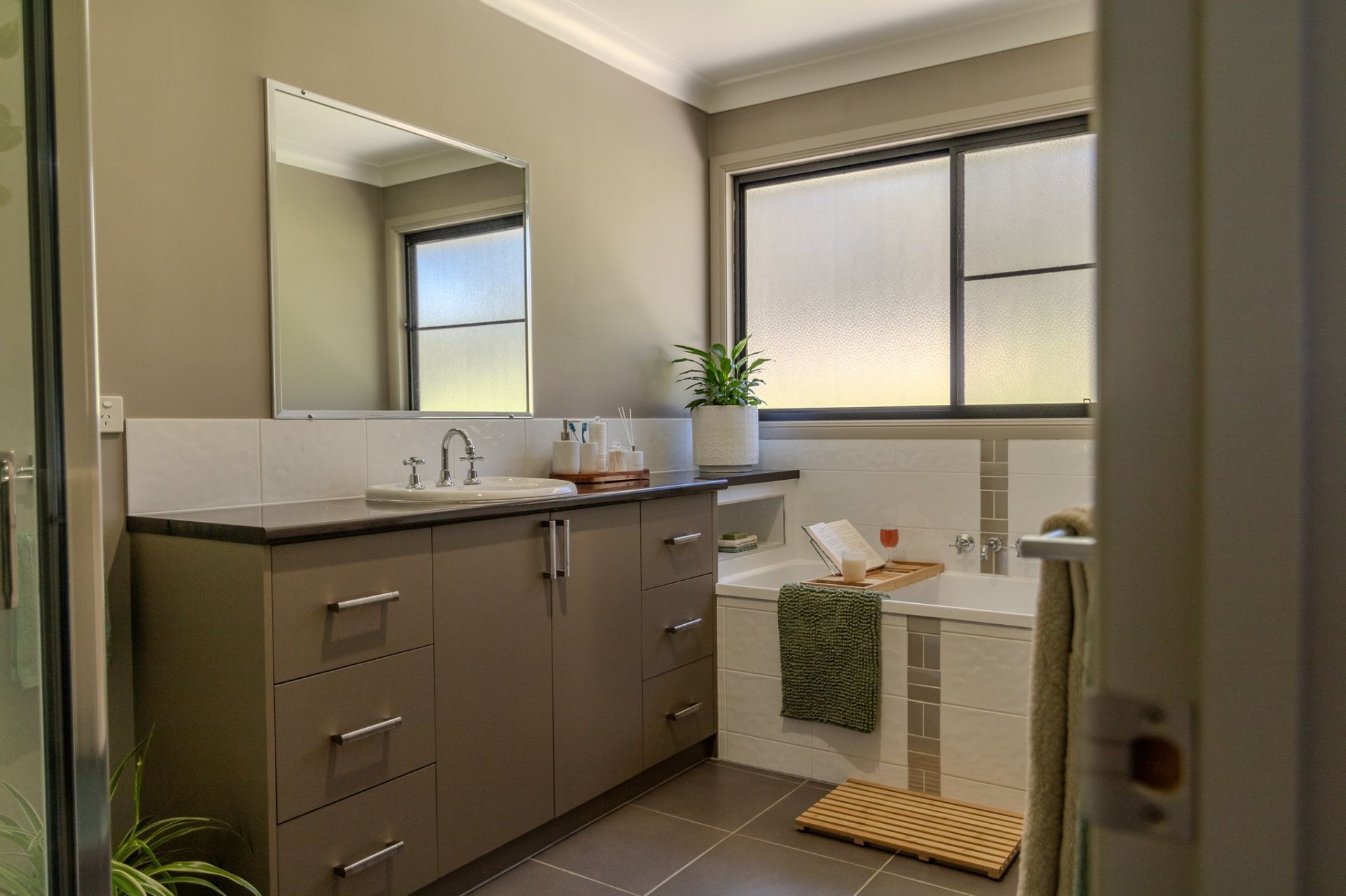 -Premium flooring throughout, combining durable vinyl, tiled wet areas, and plush carpet in the bedrooms.