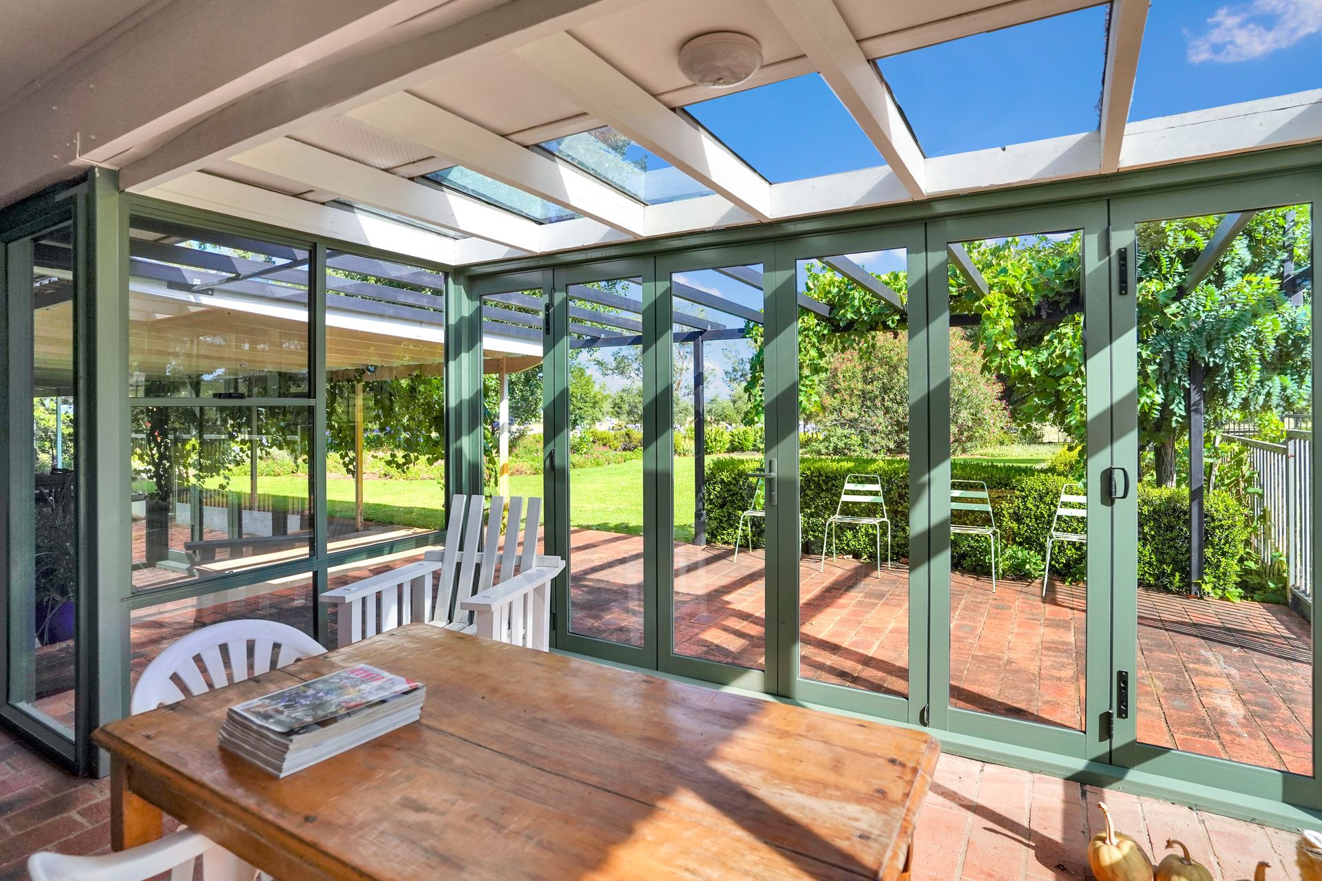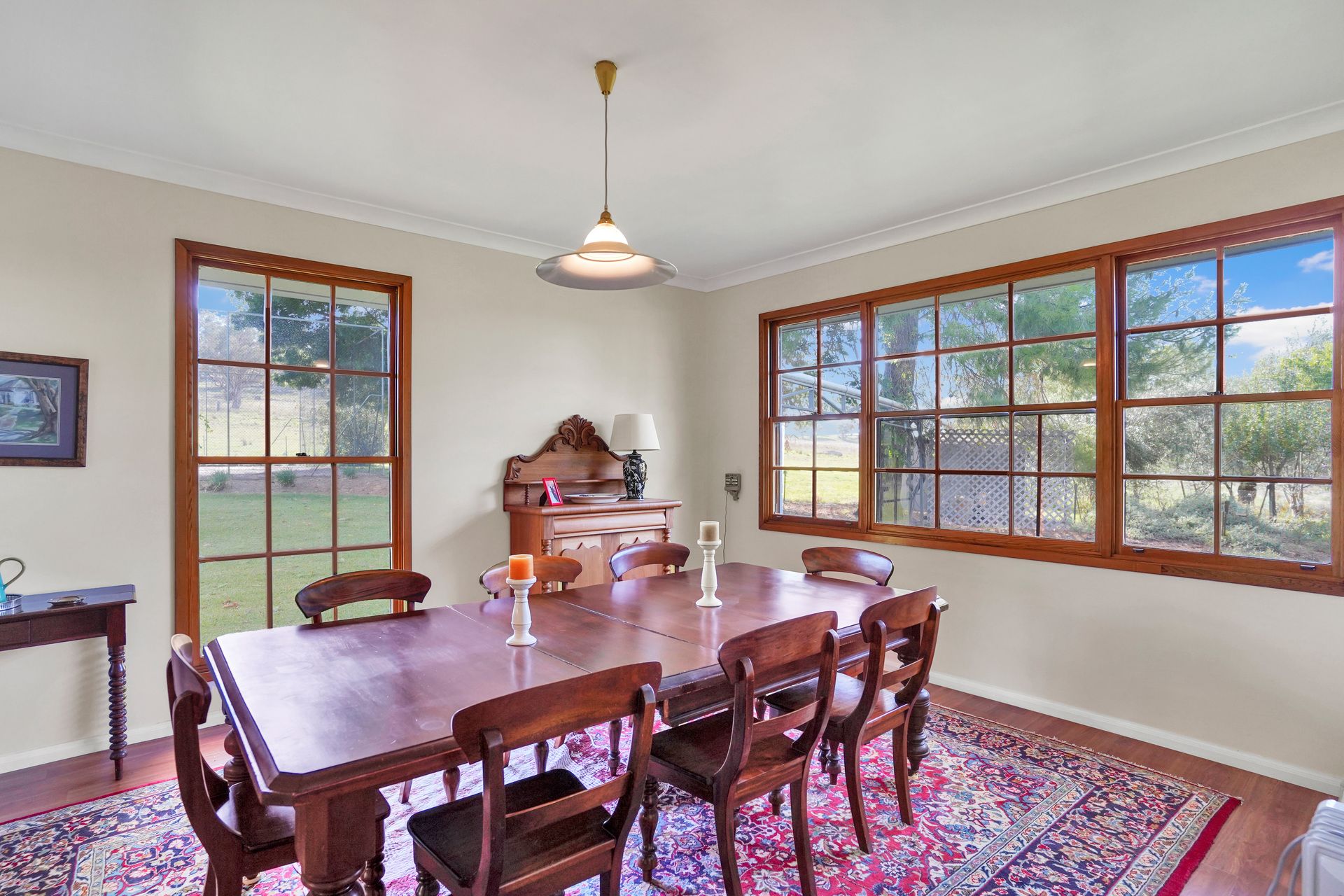 + Large formal dining with glass French doors to a lovely lounge room with open wood burning fire place, flowing through to a sunroom which overlooks the pool.