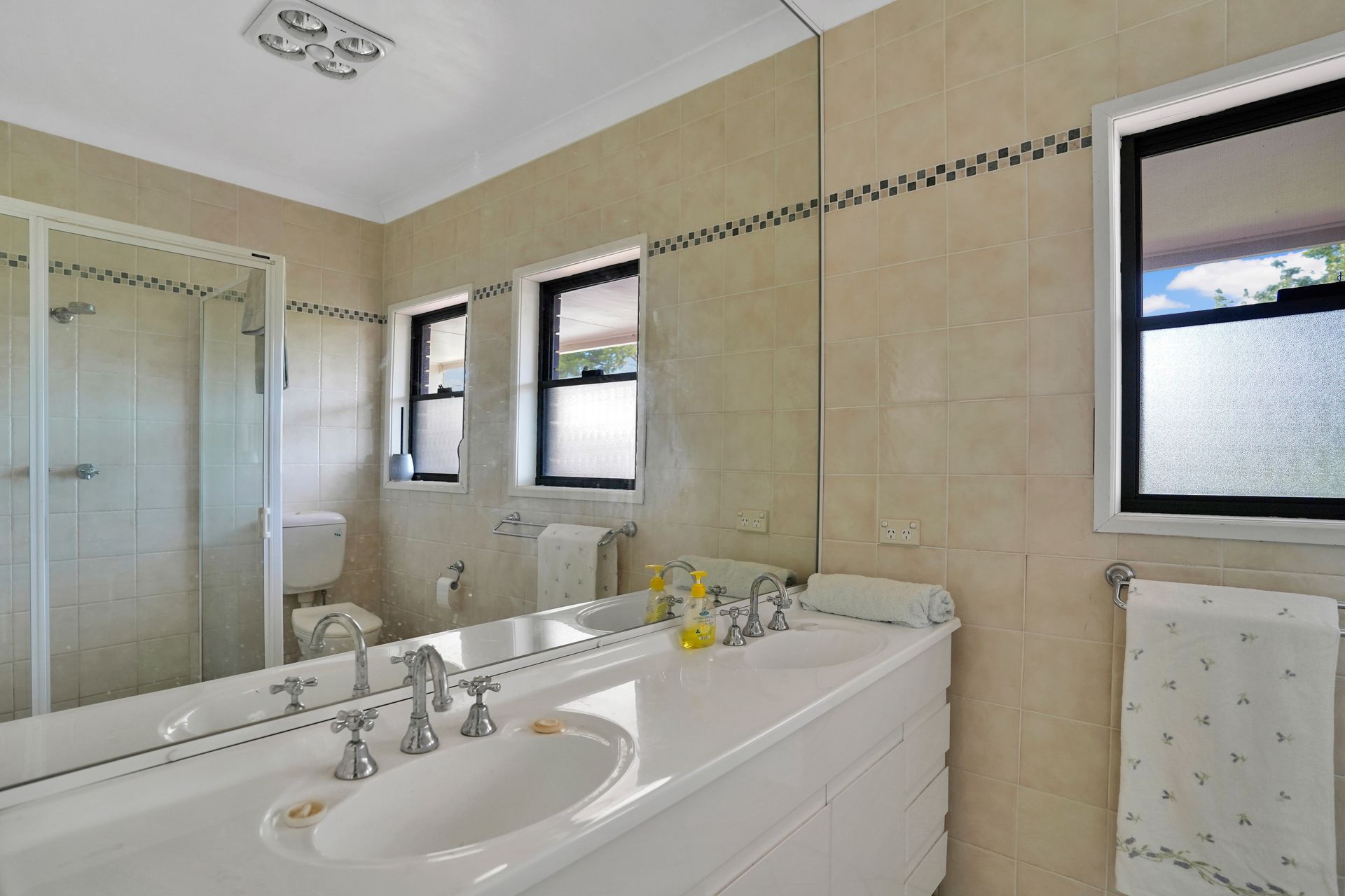 + Master bedroom with dressing room/or infants room with dual built in wardrobes. Off the master is a large primary bathroom with separate bath and shower also with him and hers vanities.
