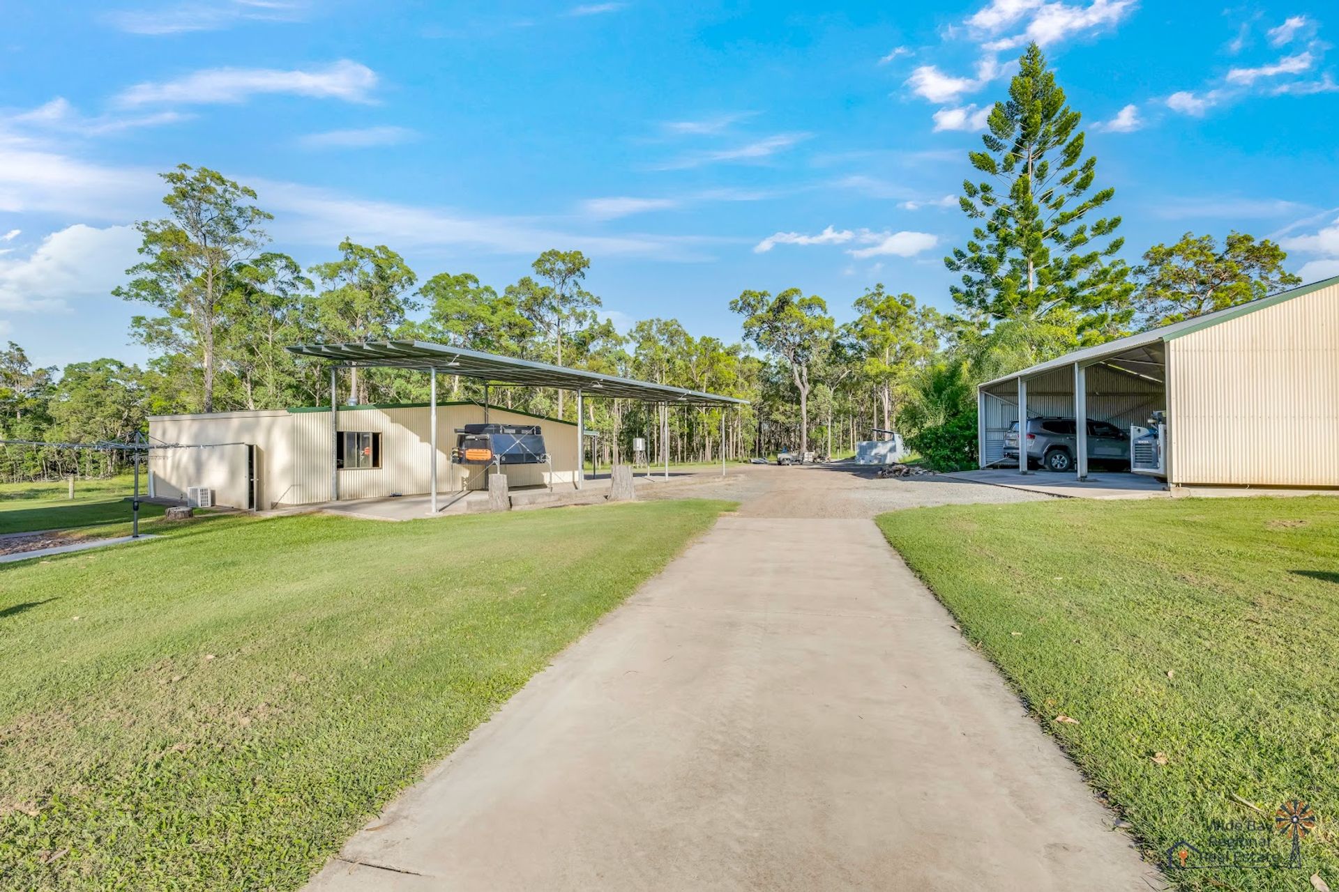For those who need space to tinker, there are three high-quality sheds, each featuring concrete floors, two of which have power, along with ample adjoining covered areas. Whether you're a hobbyist, tradesperson, or just need storage, these sheds have you covered. The main shed even has a mezzanine level adding another 65 square meters of practical space!