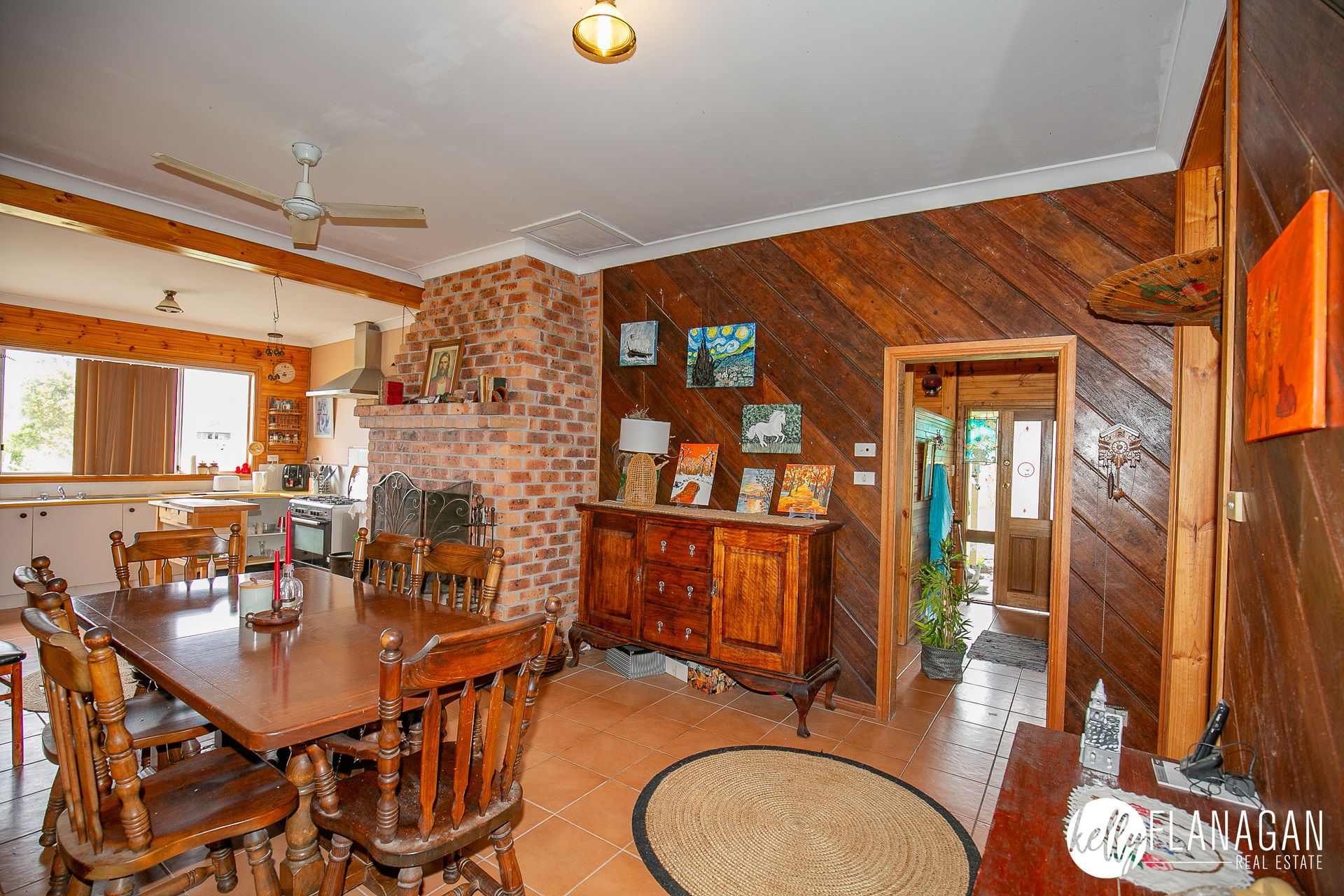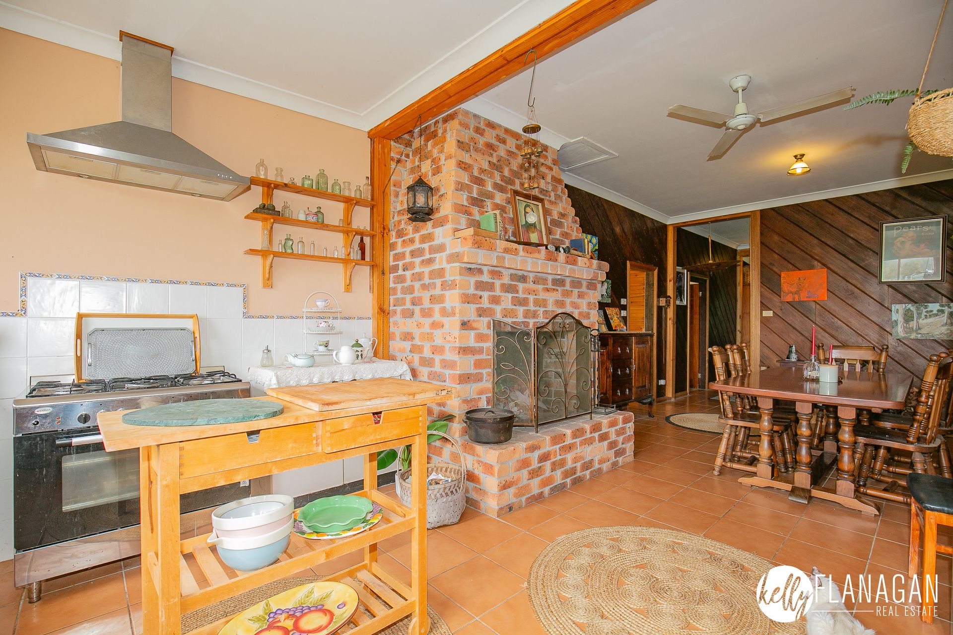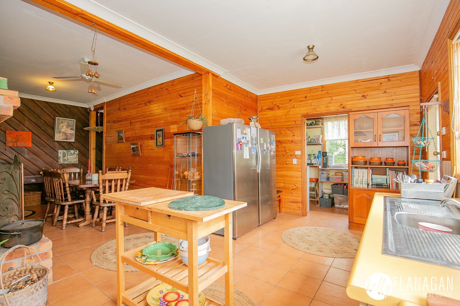 - Kitchen/dining room with large walk-in pantry, open fire place and access to rear deck