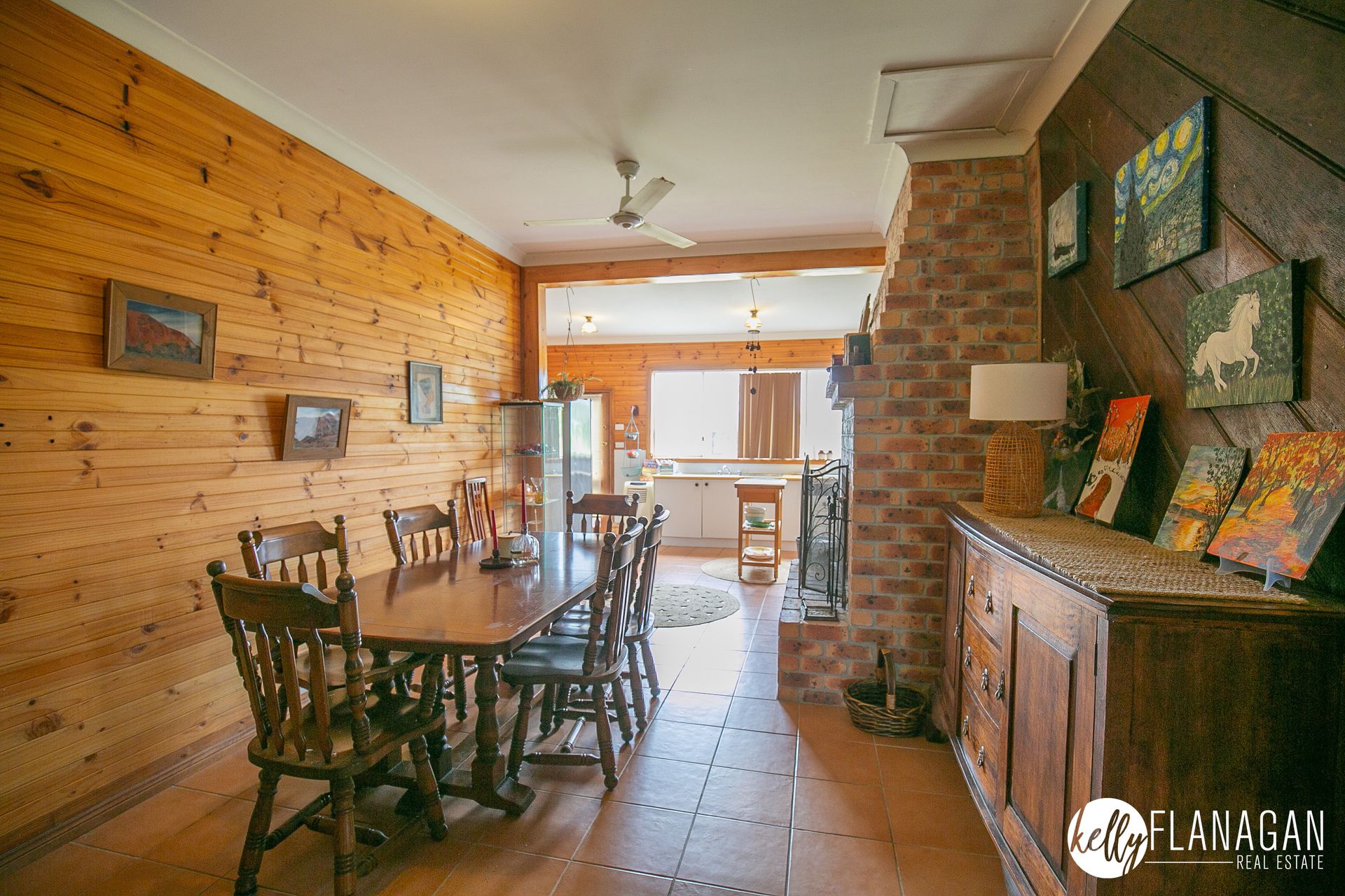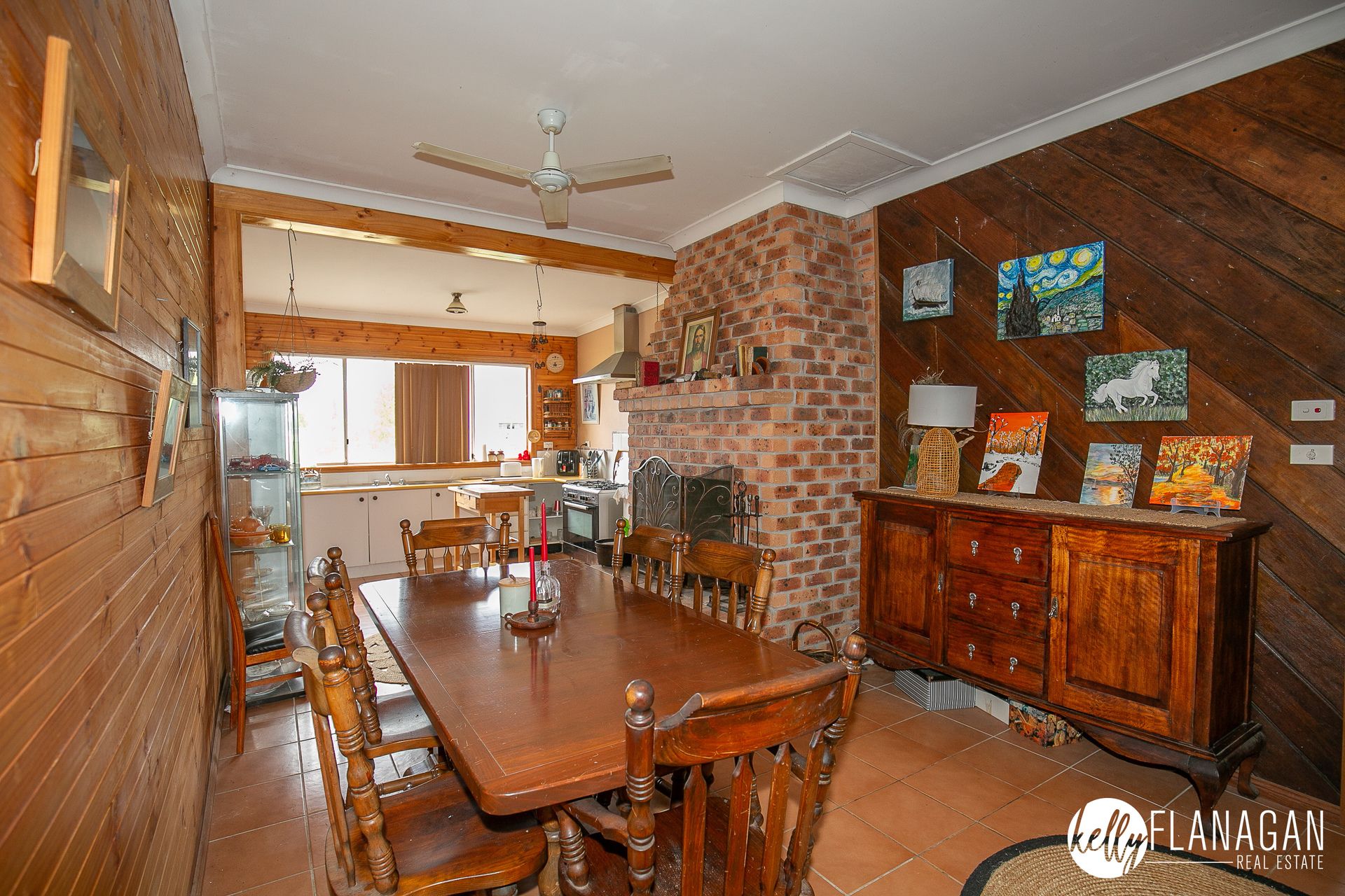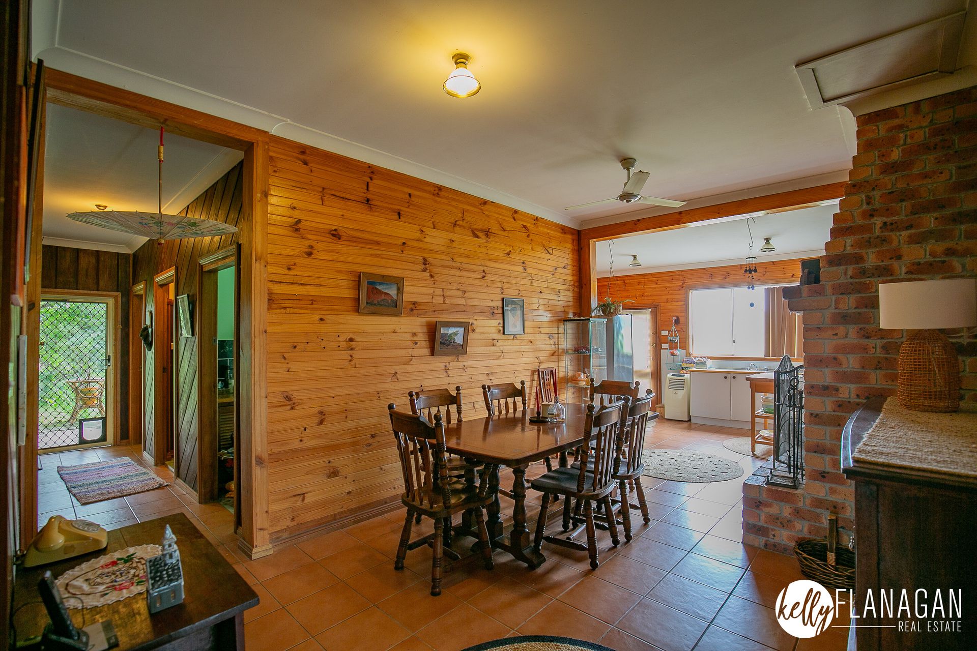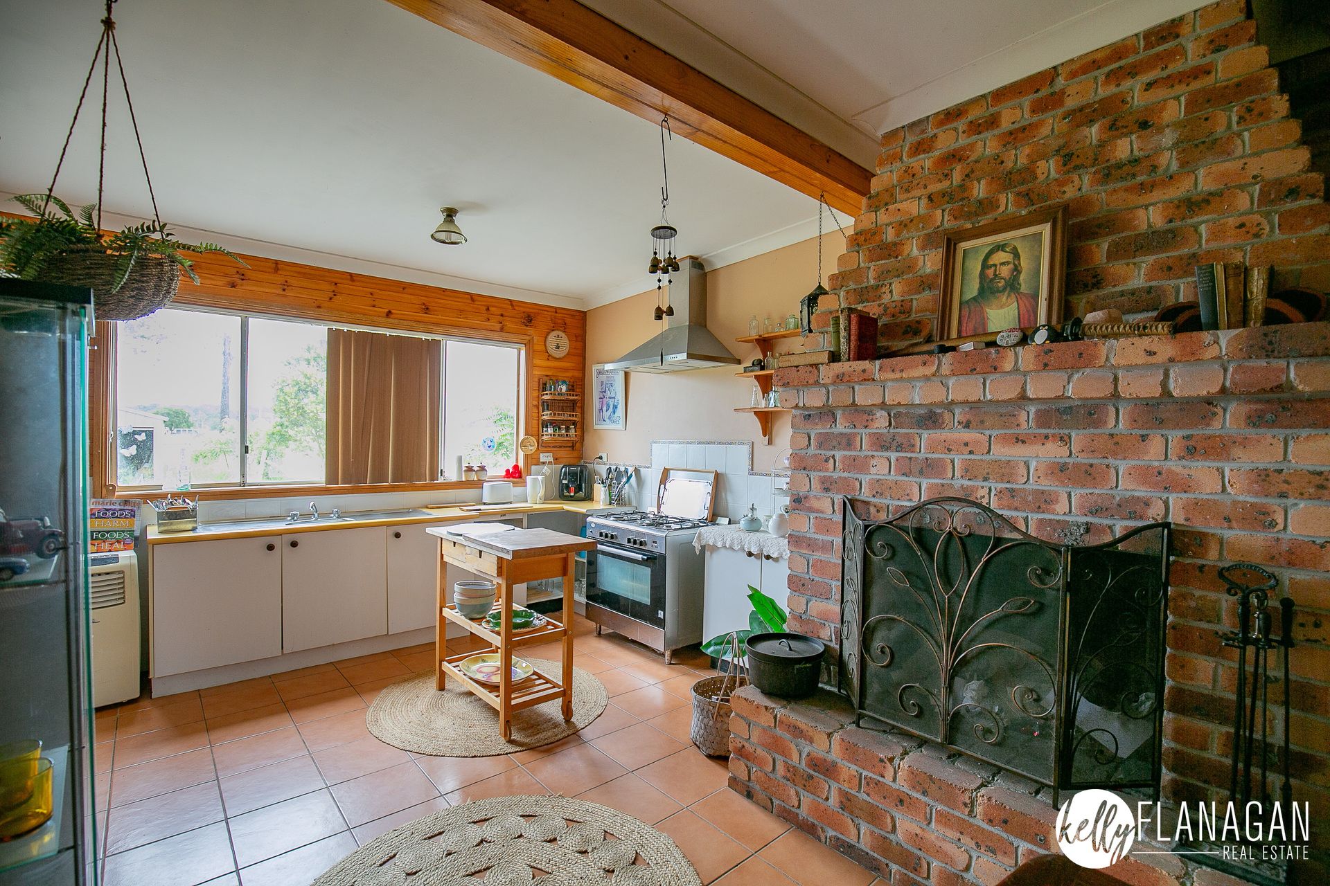 - Kitchen/dining room with large walk-in pantry, open fire place and access to rear deck