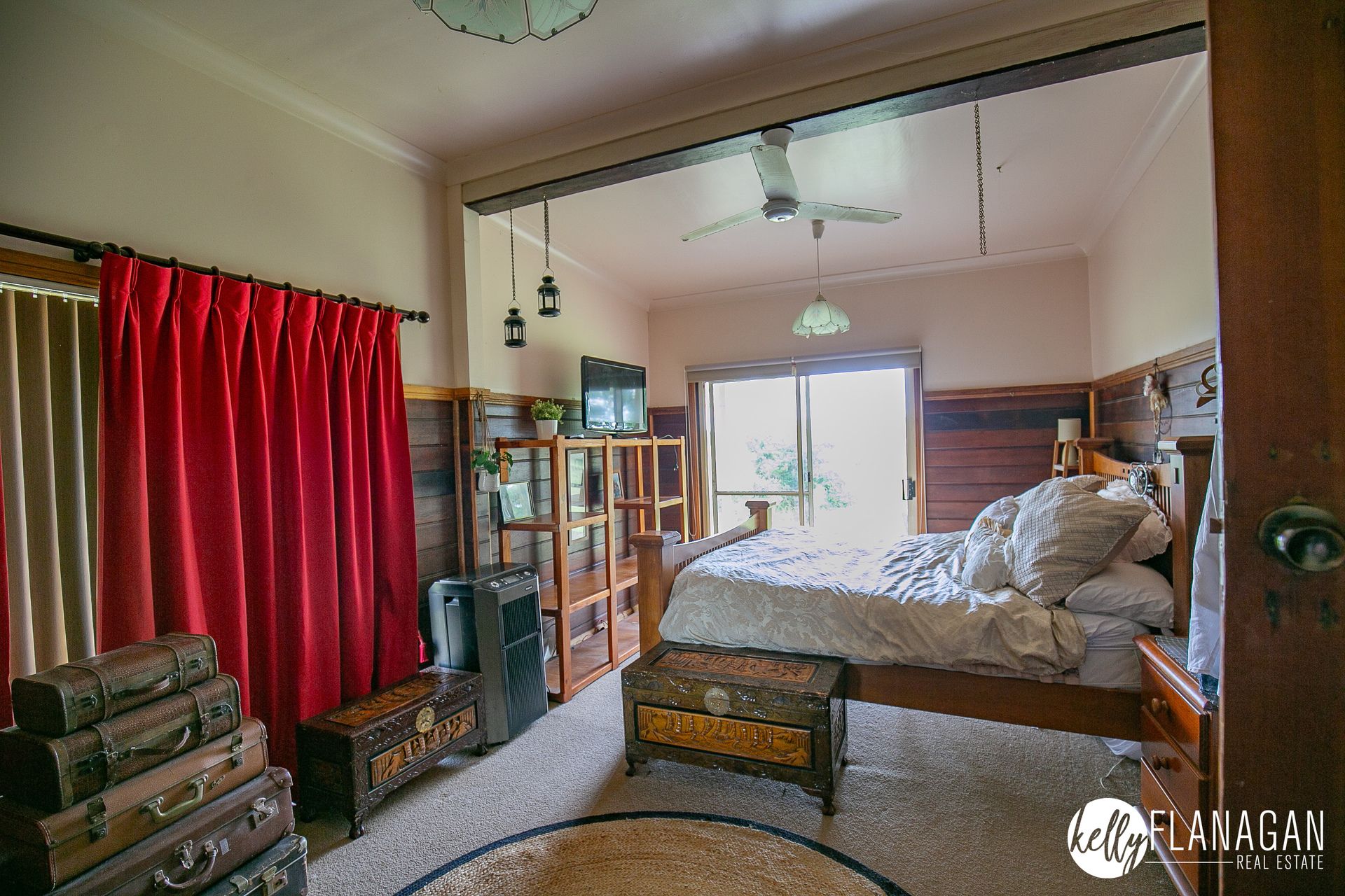 - Huge main bedroom with ceiling fan