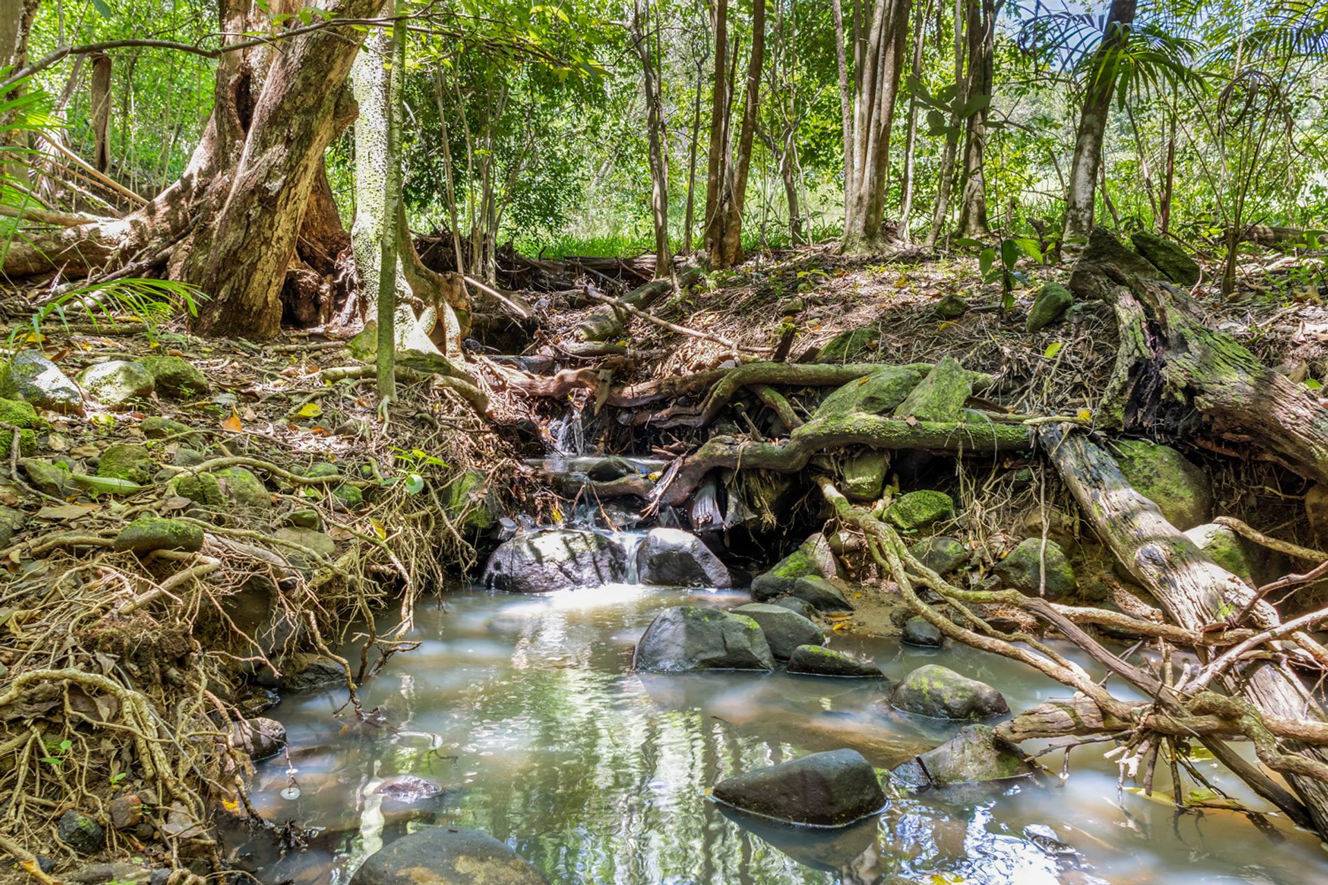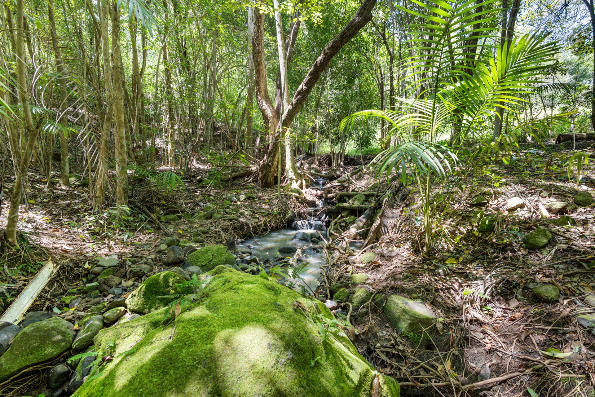 Adding to its charm, the property features its very own tropical forest, a lush sanctuary filled with native flora and fauna. Meandering through this picturesque setting is a seasonal creek, complete with moss-covered rocks. The gentle flow of the creek creates a tranquil soundtrack, inviting you to relax, explore, or simply connect with nature.