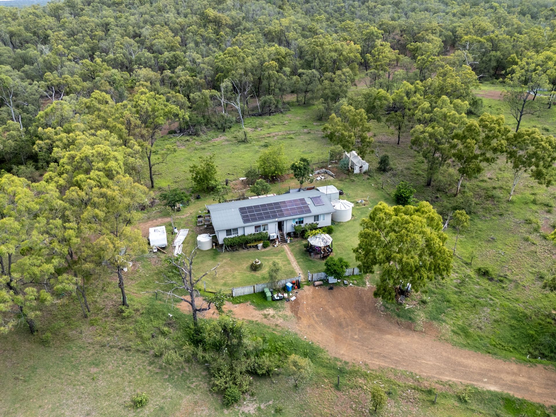 The main home is a three-bedroom, one-bathroom family home with elevated country views. It is situated only 30 minutes from the Rockhampton CBD, QLD, and it includes a second modern house.