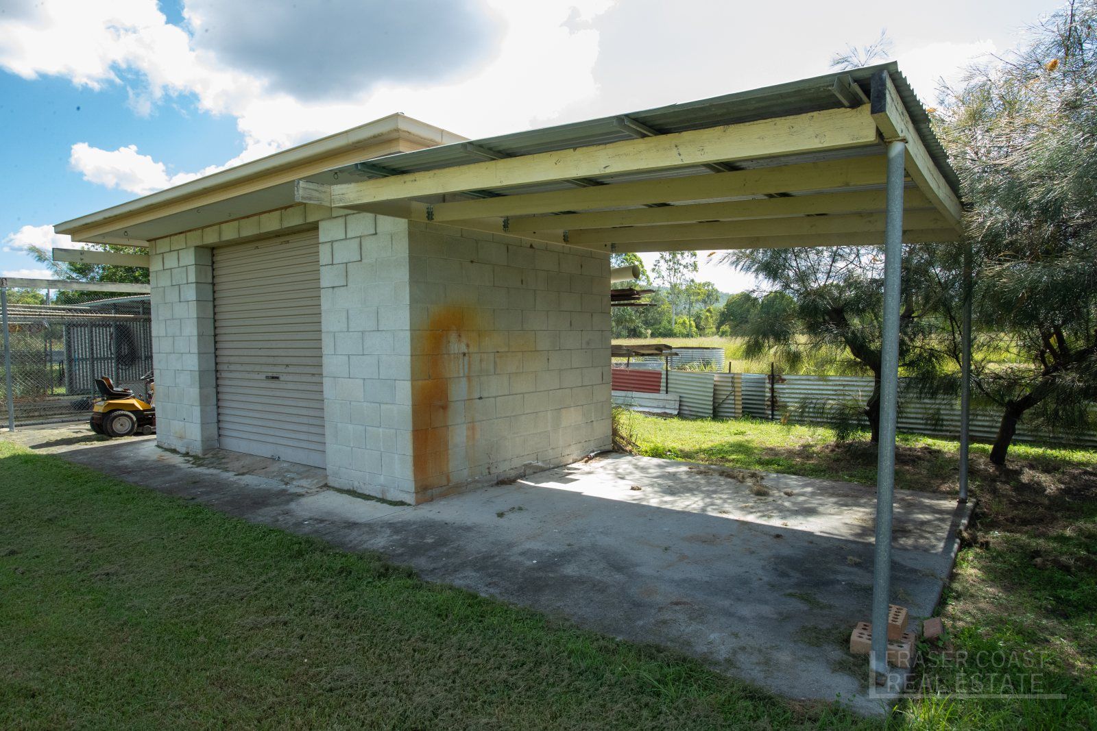 A small doggy dam sits nearer, a 4 bay, block & chain-wire mesh - dog kennel; with concrete floor. It's a great spot to treat your working dogs or family pets!